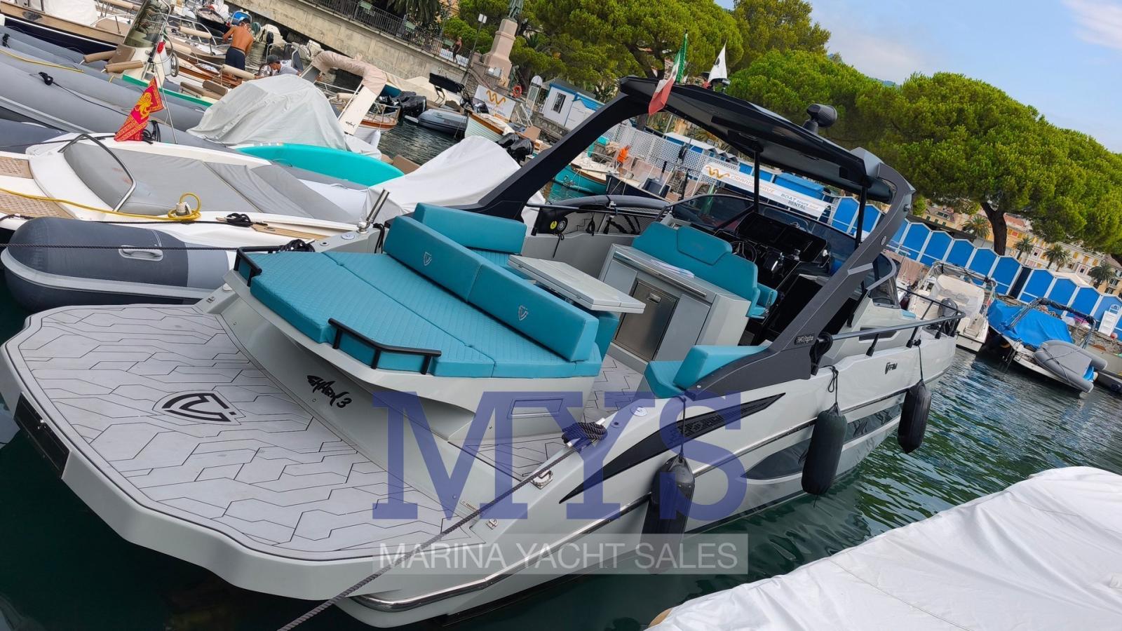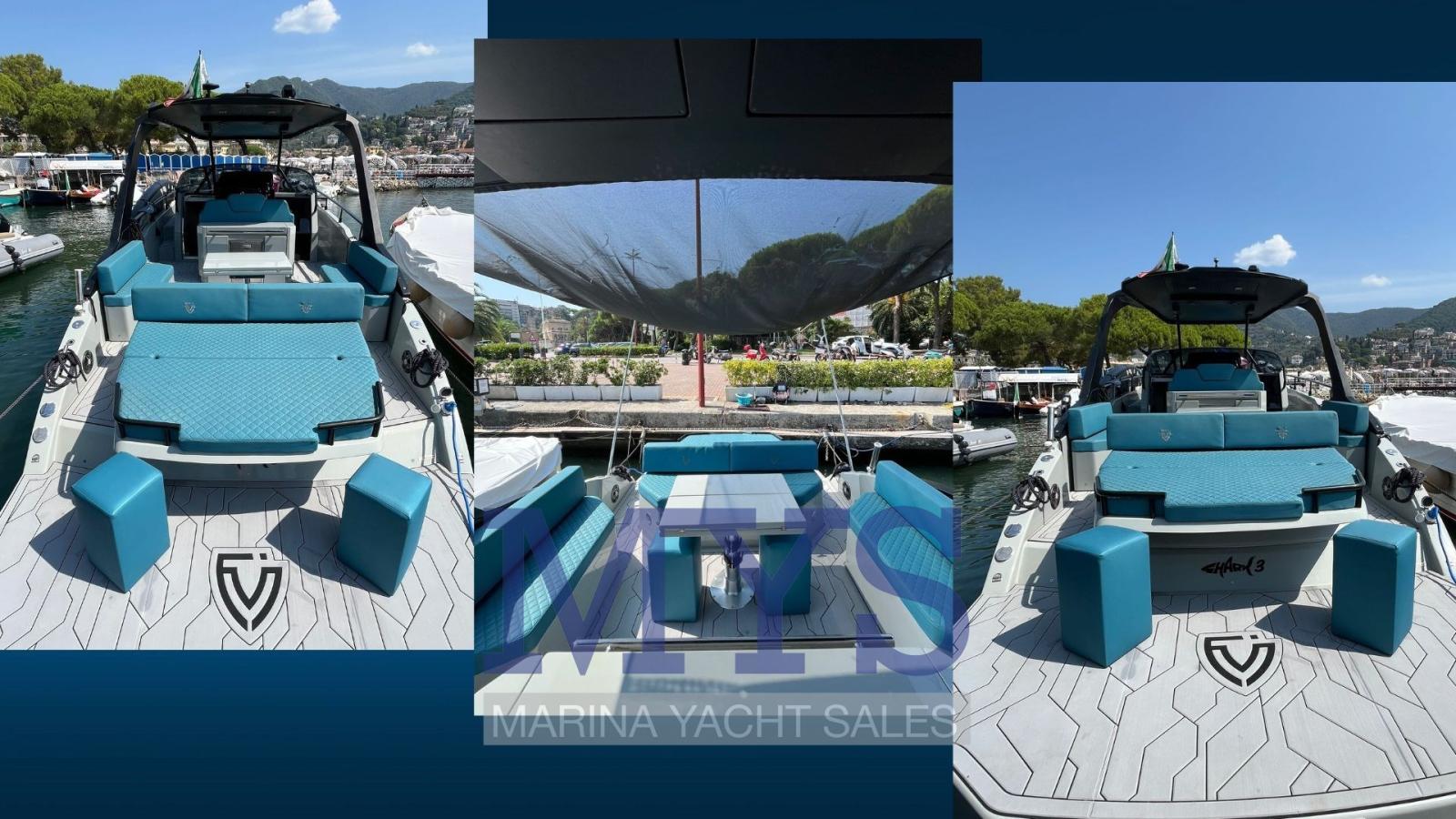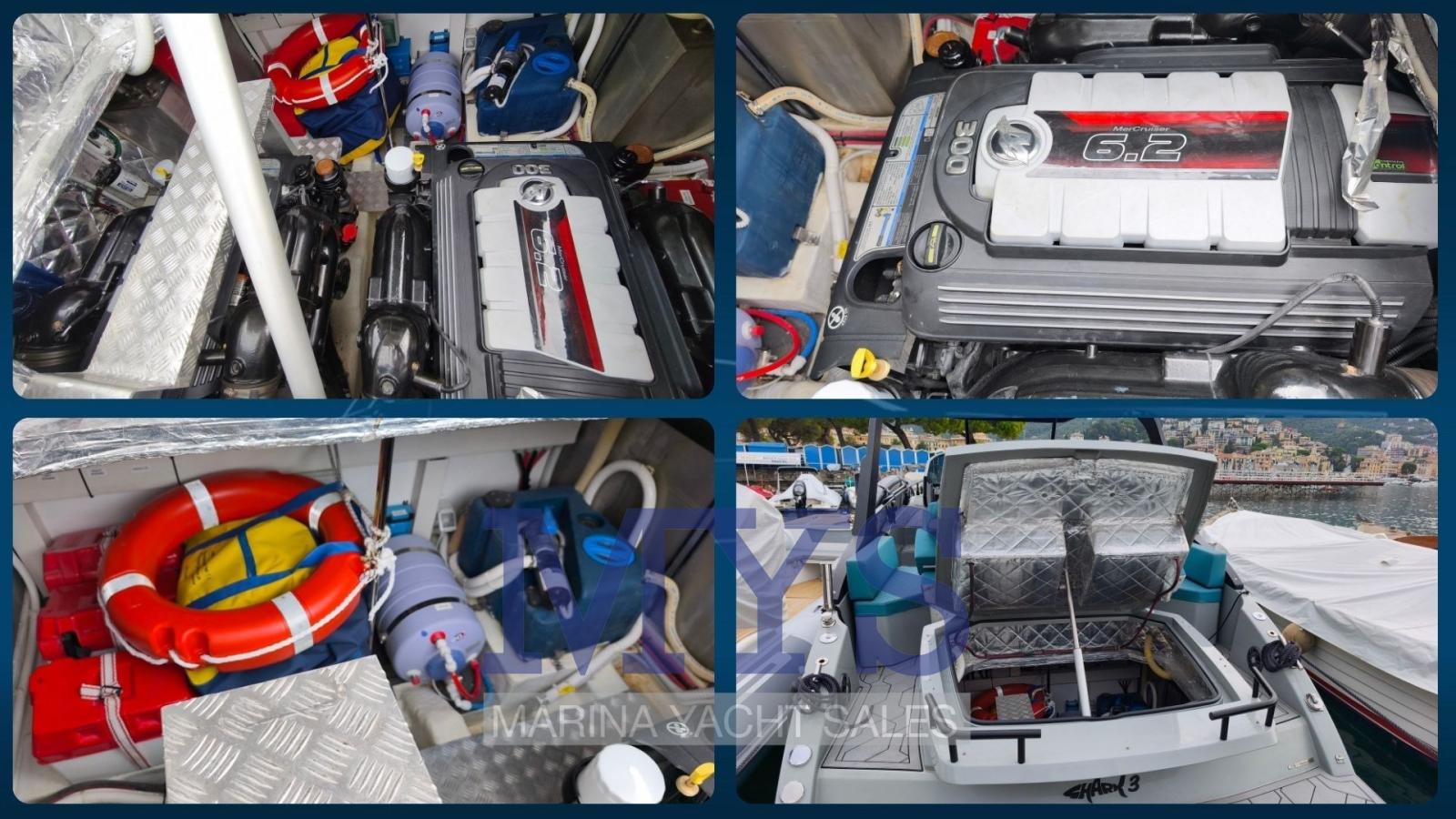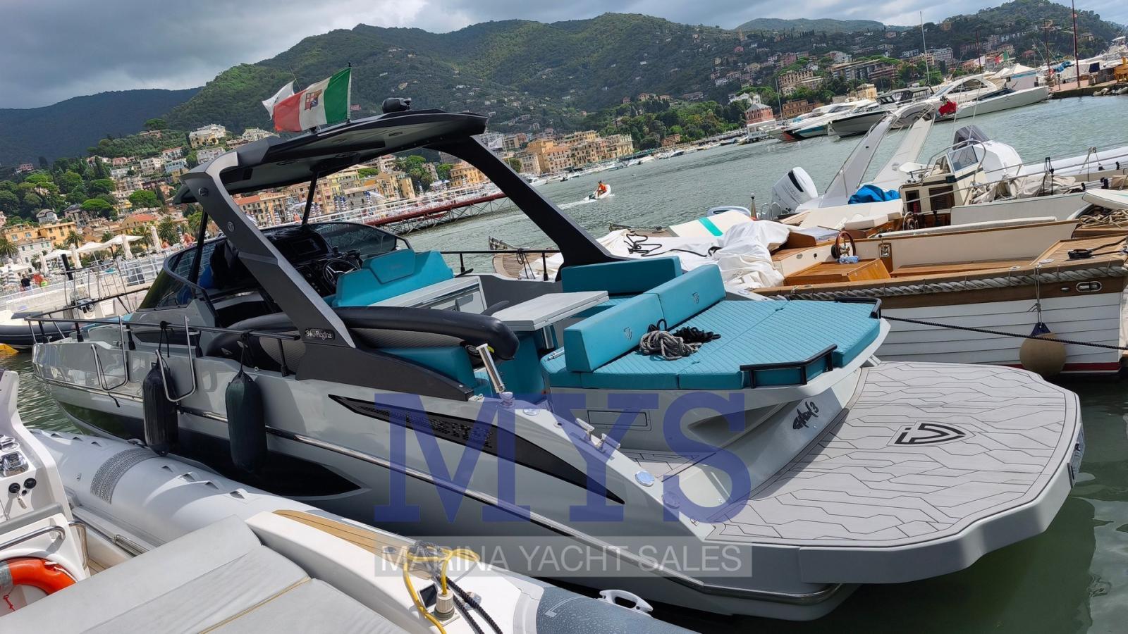 Alarme moteur, Alarme de pompe de cale, Ancre (kg 1 + 50 mt di catena), Ouverture du compartiment moteur électrique, Eau sous pression, 5 Batteries (x 105 Ah), Passavant en teck (in SeaDek), Câble d’alimentation à quai, Couleur spéciale (Gelcoat GRIGIO 7042), Filères, Douche de cockpit, Phare de poursuite, Lavabo dans le cockpit, Éclairage de courtoisie (a Led), 4 Spots sous-marins, Défenses, Plateforme arrière (in SeaDek), Pompe de cale automatique, Pompe de cale manuelle, Pont en teck (in SeaDek), Porte latérale, Cockpit en teck (in SeaDek), Prise de quai, Connexion eau sous pression à quai, Rollbar, Guindeau électrique (700 W), Echelle de bain, table de cockpit, Corne, T-Top (nero), Pont en teck (in SeaDek).