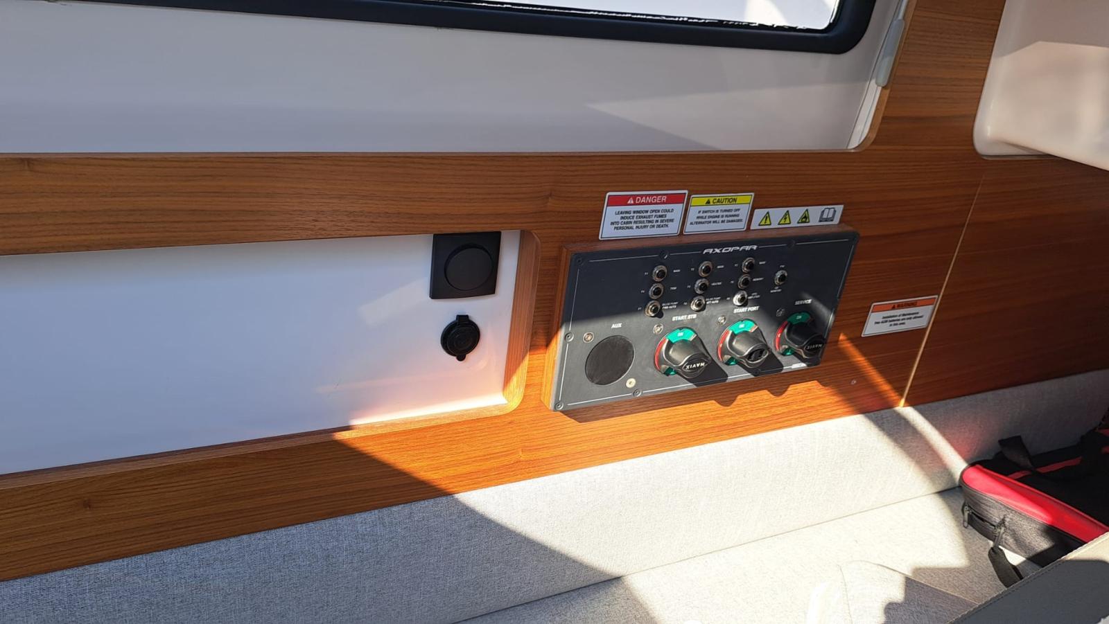 Eau sous pression, Trim hydraulique, Douche de cockpit, Flaps électriques, Lavabo dans le cockpit, Éclairage de courtoisie, Défenses, Pompe de cale automatique, Pompe de cale manuelle, Prise de quai, Guindeau électrique, Echelle de bain, Corne, T-Top.