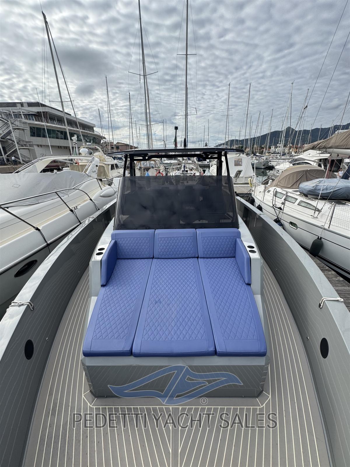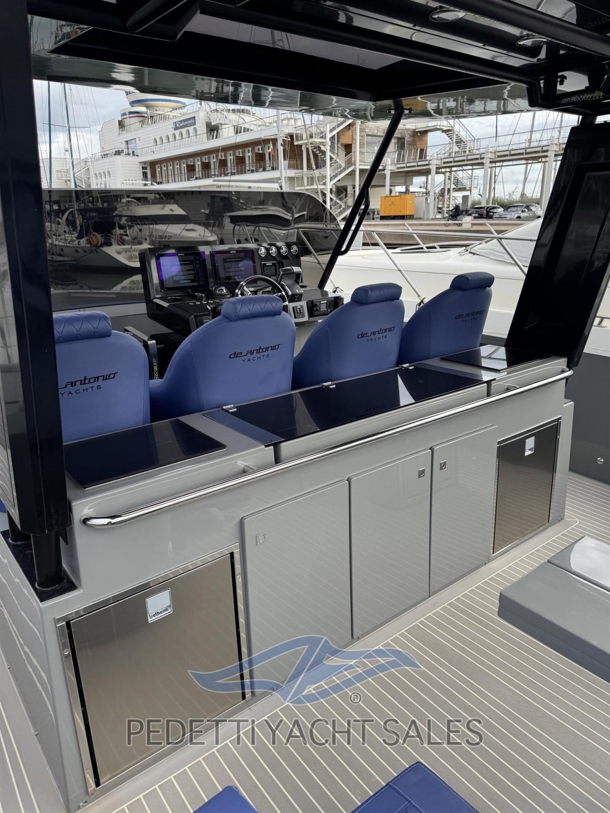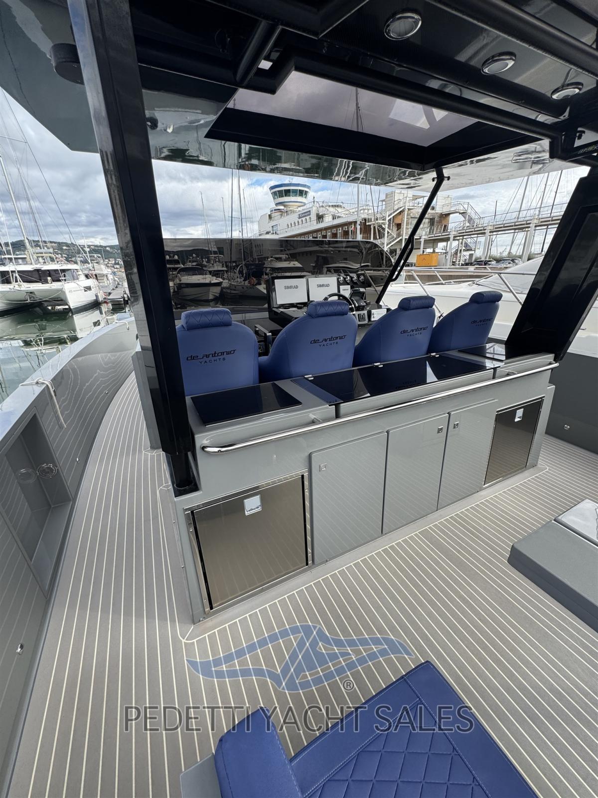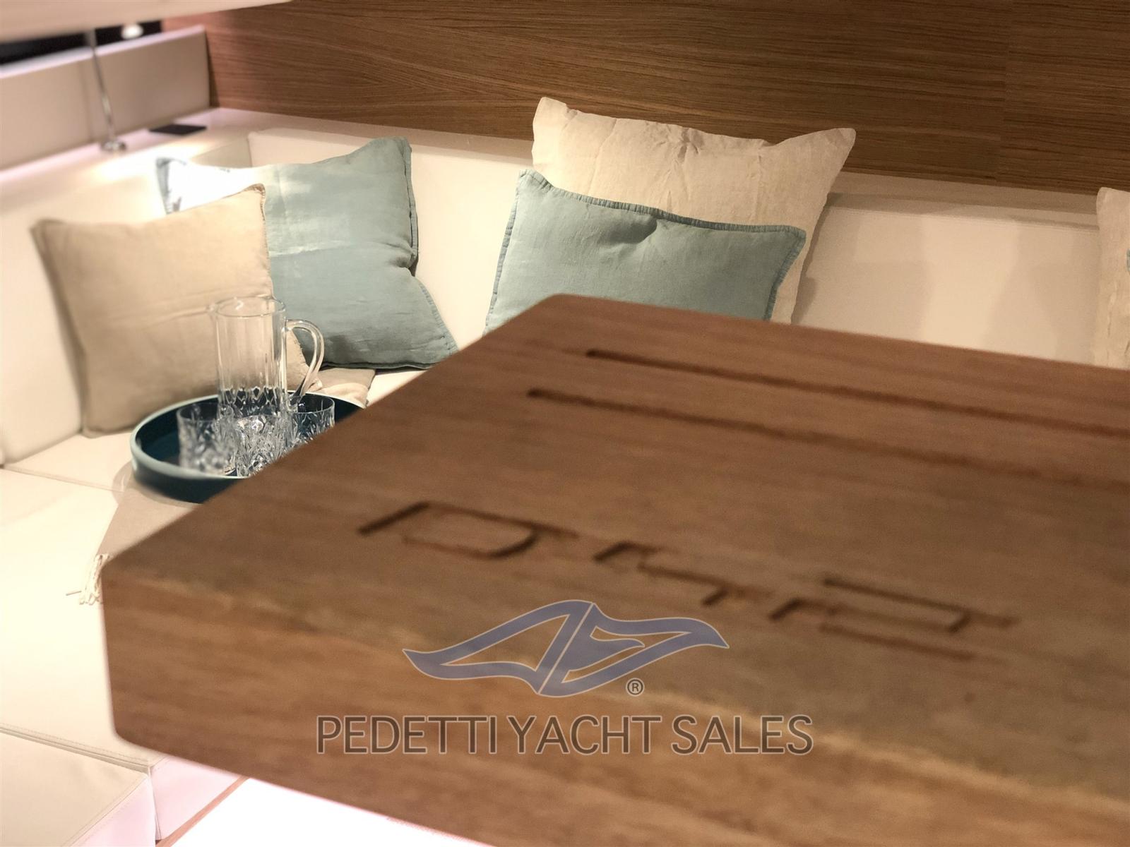 Alarme moteur, Alarme de pompe de cale, Ouverture du compartiment moteur électrique, Flaps hydrauliques, Garage à annexe, Hard top, Indicateurs de flaps, Éclairage de courtoisie, Pompe de cale automatique, Cockpit en teck, Prise de quai, Guindeau électrique, Echelle de bain.