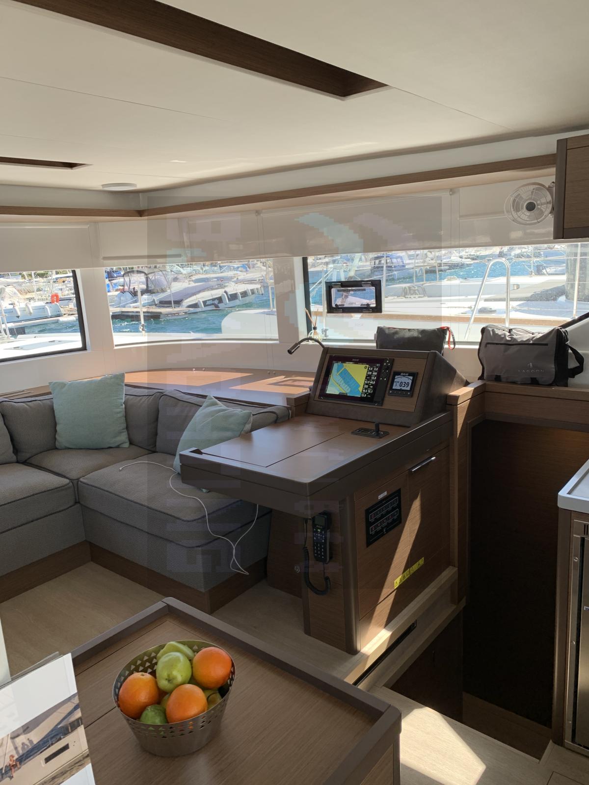 Avec ses lignes modernes signées VPLP et son design intérieur raffiné par Nauta Design, ce Lagoon 50 séduit par ses volumes généreux, sa luminosité et son aménagement intelligent. Le cockpit XXL communique directement avec le carré, offrant une circulation fluide et une convivialité inégalée à bord.