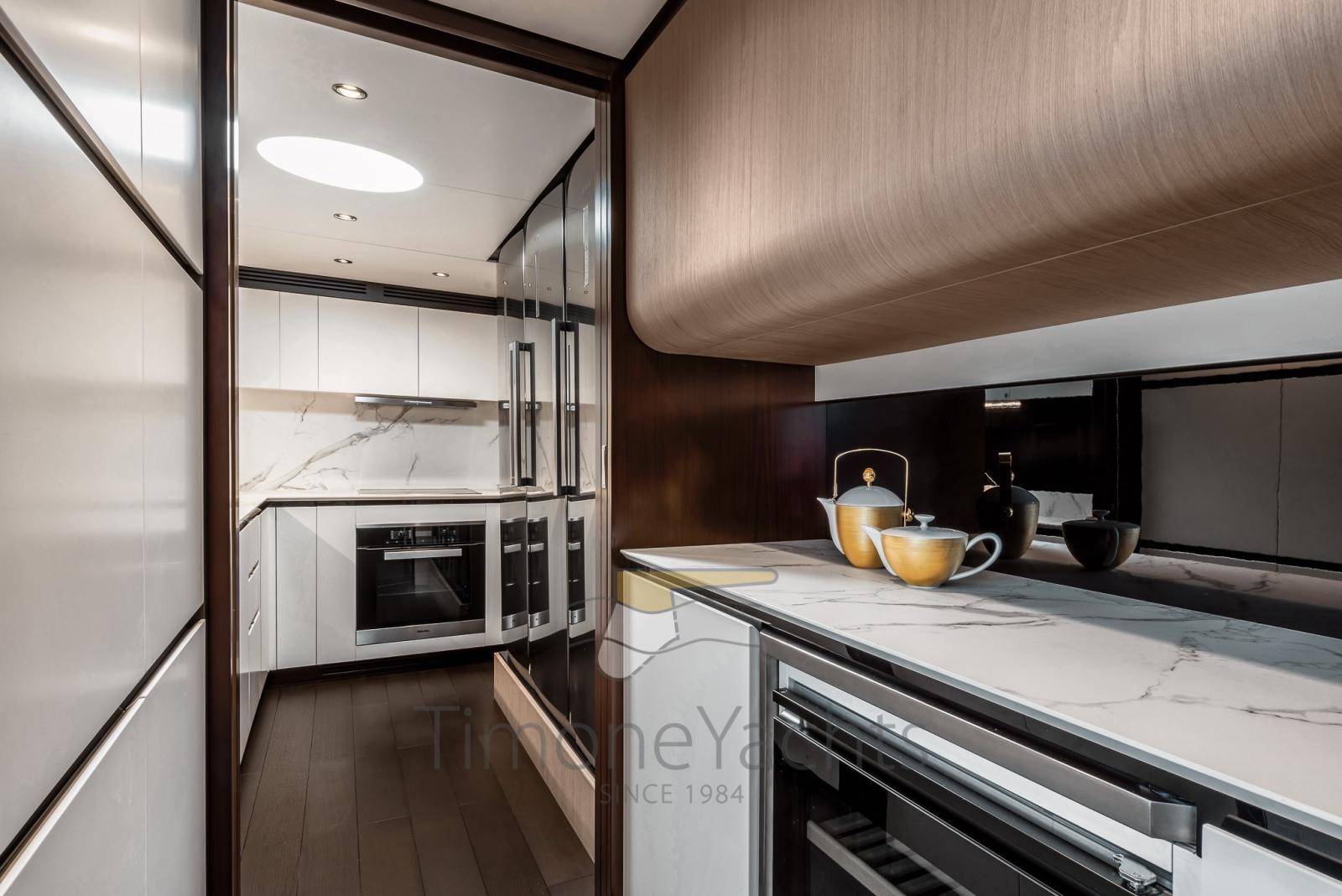 Le système innovant appelé Pivoting Platform Expander permet à la poppe de pivoter sur la mer, créant une plateforme très agréable à la surface de l’eau. Cette solution unique pourra tourner davantage, facilitant ainsi les opérations de lancement du tender embarqué.