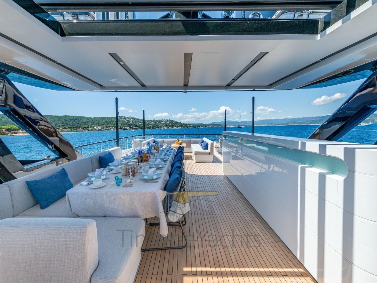 Le pont arrière abrite de généreux espaces de restauration et de bronzage. La plate-forme de bain hydraulique permet un accès facile à la mer.