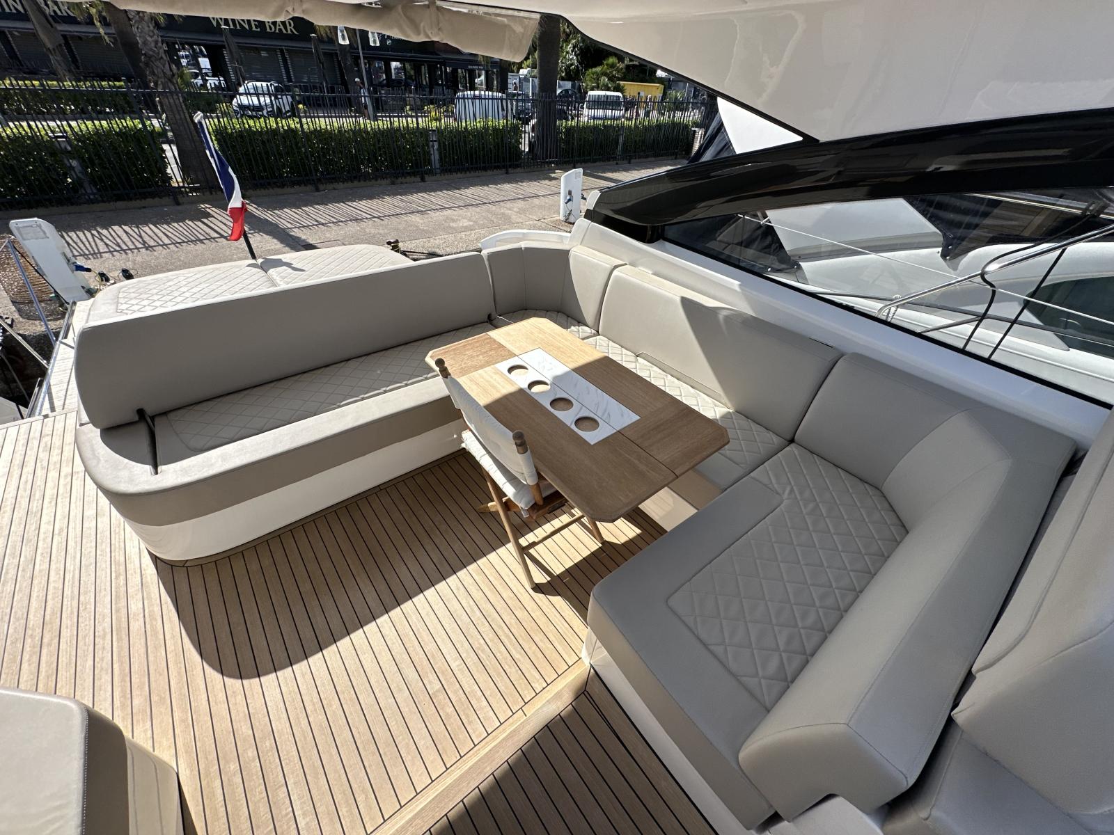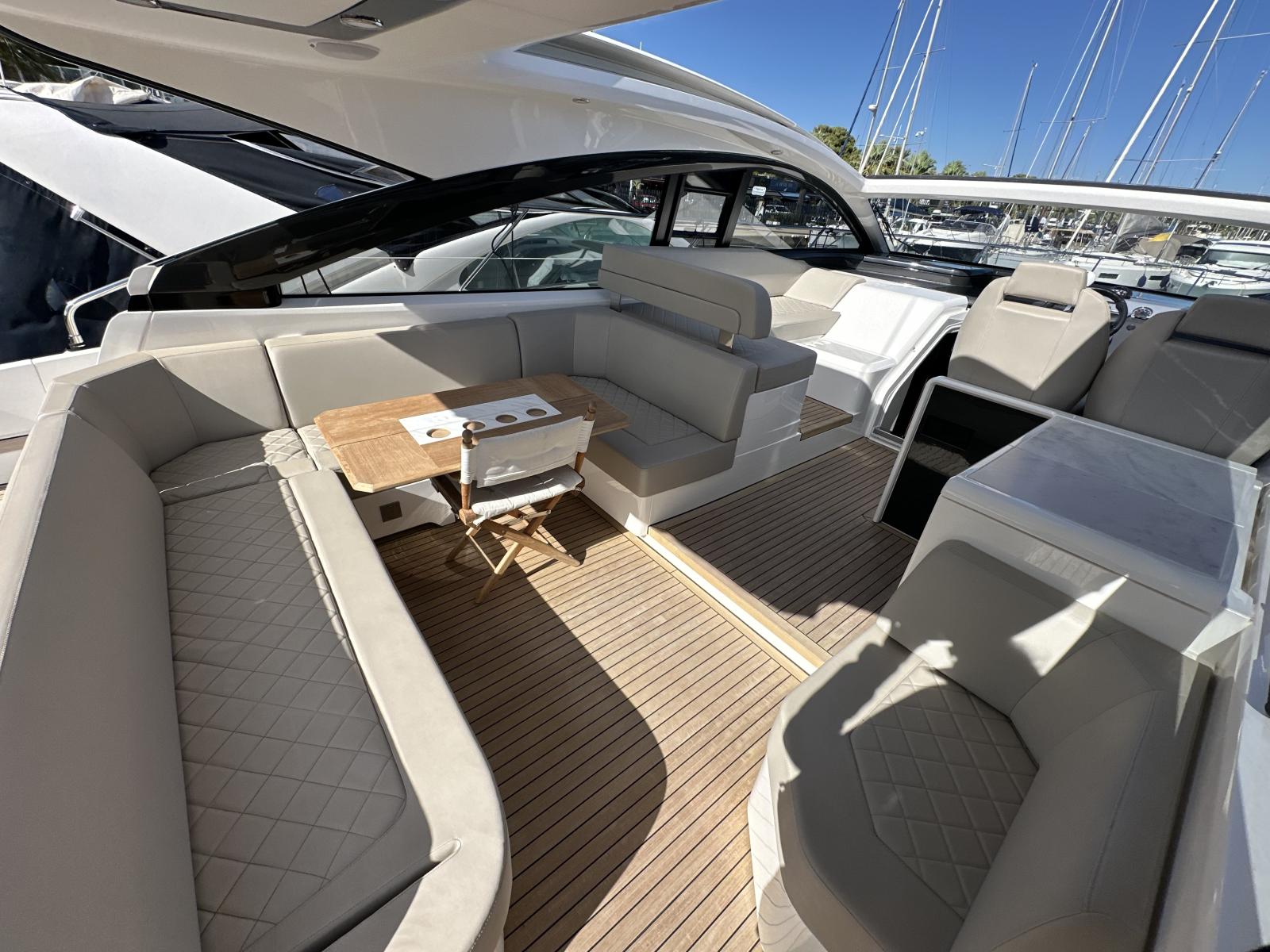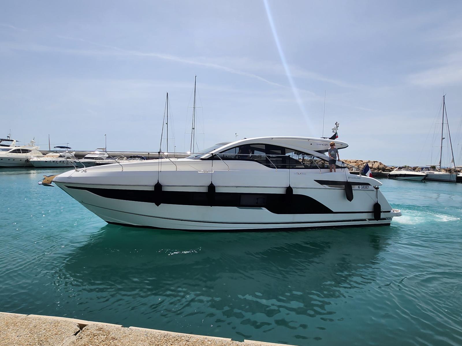 Le Fairline Targa 45 Open est l’un des modèles iconiques de la marque anglaise. Dessiné par Alberto Mancini, il combine sportivité, élégance et confort pour offrir une expérience de croisière haut de gamme.