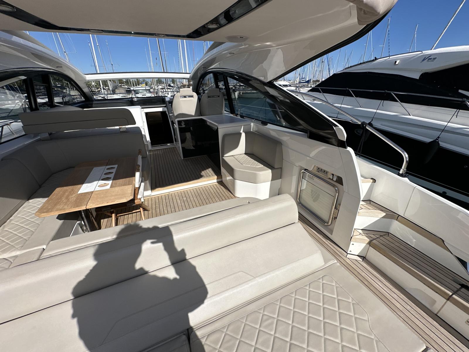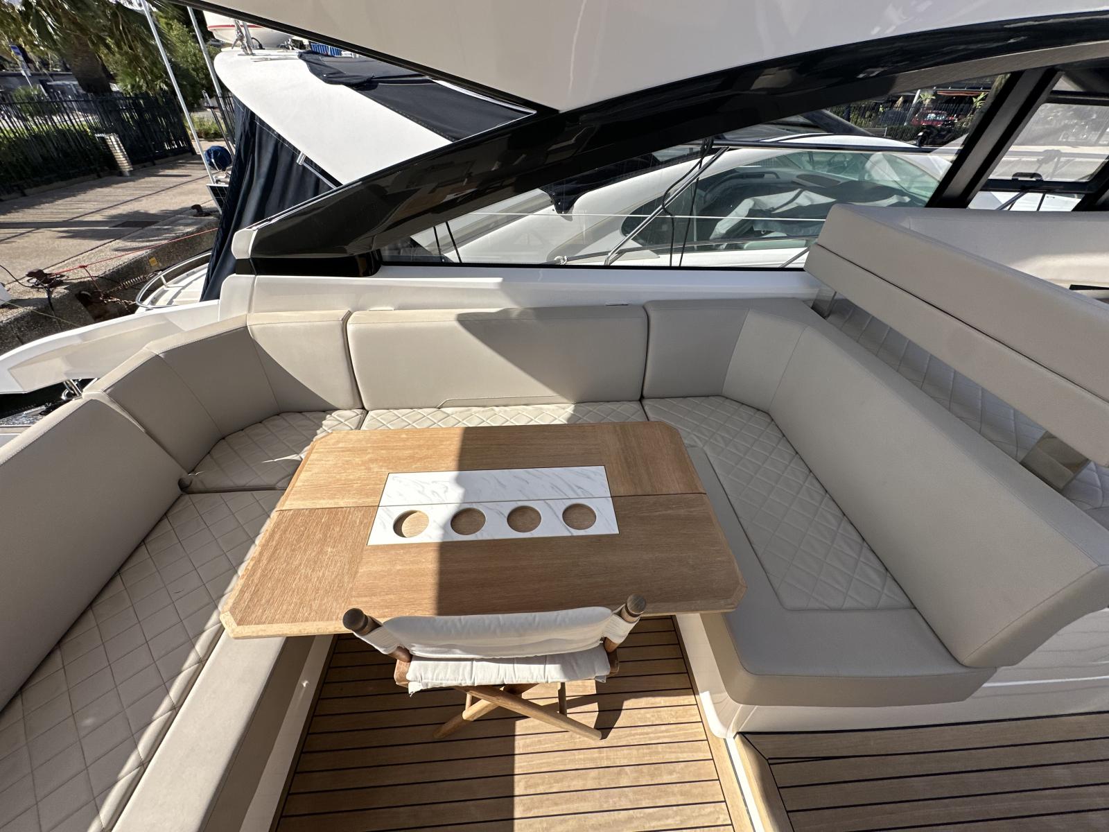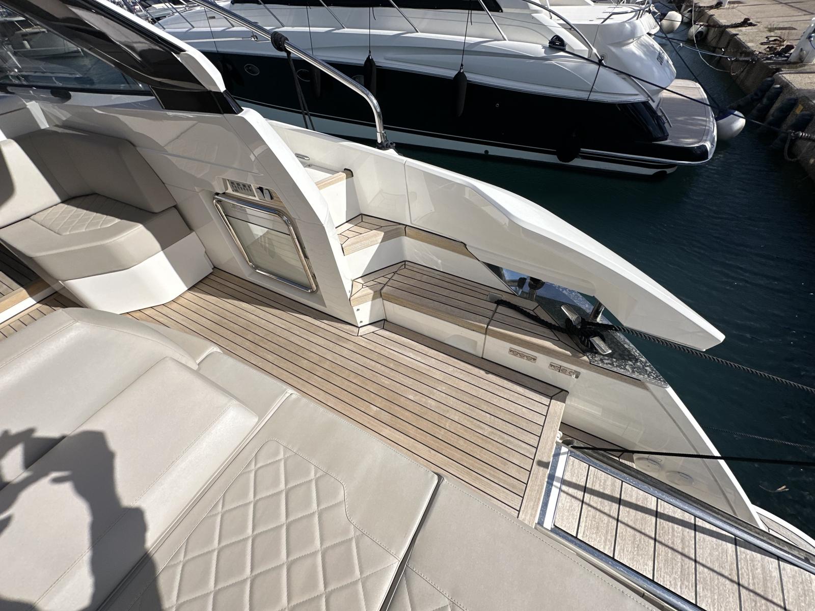 Le Fairline Targa 45 Open est l’un des modèles iconiques de la marque anglaise. Dessiné par Alberto Mancini, il combine sportivité, élégance et confort pour offrir une expérience de croisière haut de gamme.