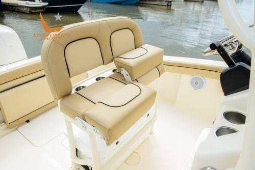 Le 215 XSF est construit sur la conception révolutionnaire de la coque NuV3 économe en carburant de Scout, composée à 100 % de fibre de verre posée à la main.