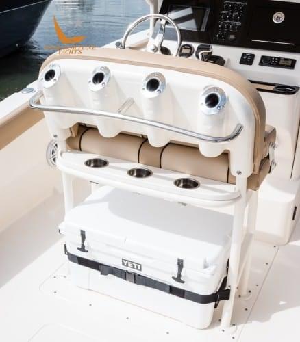 Le siège arrière rabattable, le cockpit à appâts aéré sur le tableau arrière, les sièges de salon avec conteneur à poissons/de stockage, les porte-cannes et les porte-gobelets ne sont que quelques-unes des nombreuses caractéristiques standard disponibles sur ce modèle.
