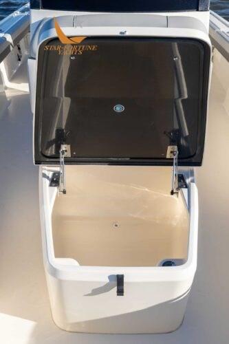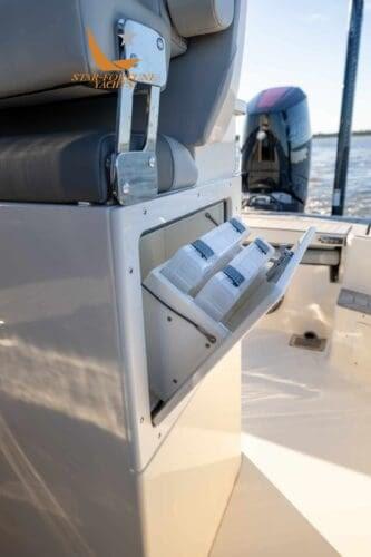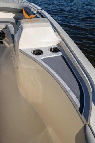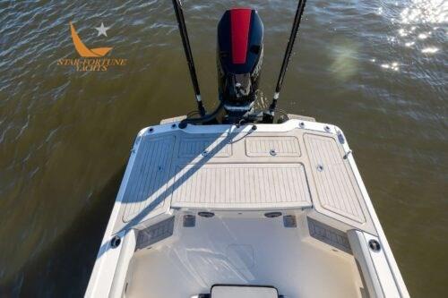 De plus, ce modèle est livré de série avec un tableau arrière personnalisé avec la signature du PDG/fondateur de Scout, Steve Potts, et un deuxième poste qui offre toutes les commandes en haut, permettant au capitaine de se tenir à l’arrière des deux sièges de barre et assurant ainsi une vue dégagée.