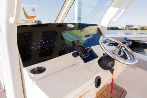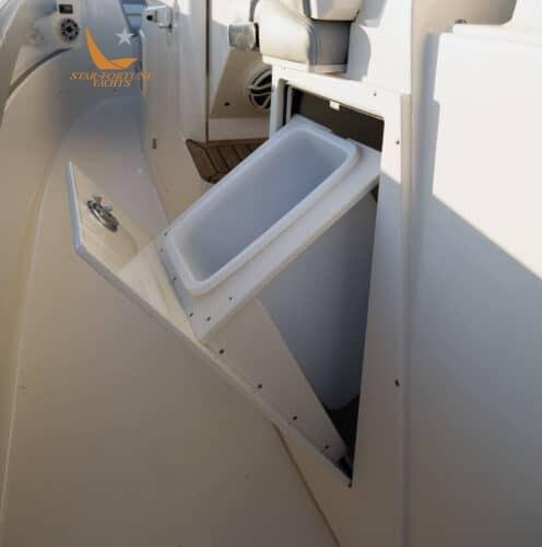• Plate-forme de bain entièrement praticable • Direction assistée incluse de série avec l’ensemble moteur • Échelle de plate-forme de bain Armstrong • Porte arrière avec coussin de soutien • Station de systèmes de poupe sous le pont avec espace de rangement • Cuve d’appât arrière aérée • Aquarium de poupe de 60 gallons • Taquets de poupe/proue de 10 po • (2) taquets de ligne de ressort de 8 po • (10) Porte-tiges en acier inoxydable • (2) Espace de rangement horizontal pour tiges sous le mât avant • Alimentation à quai 30A avec câble de 50' • Chargeur 50A • Espace de rangement sur le tableau arrière bâbord • Bassins à poissons sur le plancher arrière gauche et droit • Lavage à l’eau douce/brute avec réservoir de 25 gallons • Intercepteurs Zipwake • Commutation numérique Maretron • Siège arrière • Stéréo Bluetooth Fusion avec (8) haut-parleurs JL Audio de 7,7" et amplificateur à 8 canaux • Toit rigide T-Top revêtement en poudre breveté avec revêtement en verre, (6) lance-fusées, panneau de commande éclairé • Compartiment de rangement de la console avec (2) prises USB • Poste de pilotage central avec volant Edison • Boussole • Feux de navigation de courtoisie • Feux de diffusion moulés à l’avant et à l’arrière • Lumières télécommandées avec porte-clés • Écran Garmin 8612 • (3) Fauteuils de pilotage capitaine avec sièges chauffants et coussins rabattables individuels • Banquette orientée vers l’arrière pour deux avec Glacière en dessous • La banquette arrière se transforme en table de préparation surélevée • Tiroirs de rangement pour entretoises de support d’étrave • Porte d’embarquement pivotante à bâbord • Caméra d’ancre à l’avant • Chargeur de téléphone avec support actif sans fil • Évier en porcelaine avec miroir en Corian • Toilette marine à drain électrique en mer avec réservoir de collecte de 11 gallons • Réfrigérateur • Plafonniers • Hublots sur les côtés gauche et droit • Couchette double • Téléviseur 19" avec haut-parleur JL • Table en teck amovible • Armoire de rangement bâbord avec plan de travail en Corian • Coussins de soutien à 360 degrés • Coque à double marche • Console d’étrave double avec coussins, accoudoirs et rangement inférieur • Sièges d’étrave avec rangement inférieur • Treuil, ancre, chaîne et ligne Lewmar avec commandes au pied d’étrave et commandes de barre • Lavage de l’ancre en eau douce • Prise GFCI dans la cabine • Table Chaise longue à commande électrique avec Esthec • Échelle d’embarquement latérale • Batteries de rechange et de démarrage