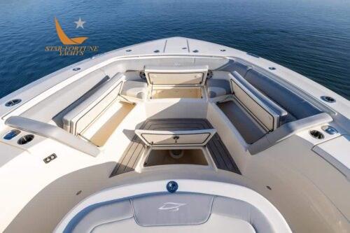 Le 400 LXF Li-Ion est méticuleusement fabriqué avec la technologie de construction en carbone et en résine époxy la plus avancée et la technologie haute performance de double coque Scout Stepped Hull. La Classe S (modèles de luxe à partir de 33') représente le haut de gamme.