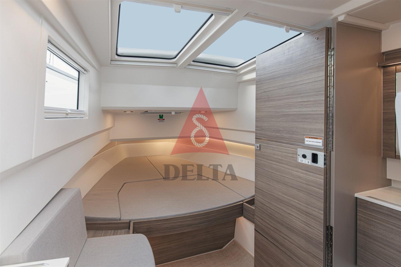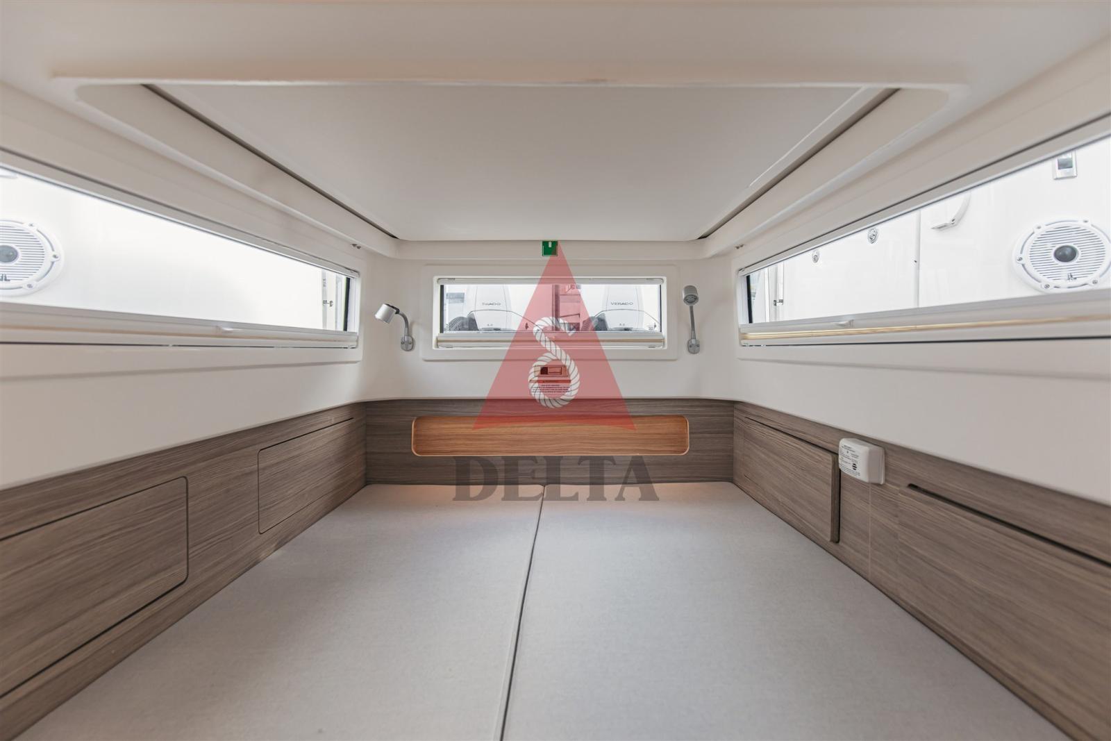 Lumières de lecture et de courtoisie - Matelas confort dans la cabine avant - Moquette dans la cabine avant - Lumières intérieures à led - Prises d’air sur le plafond avant.