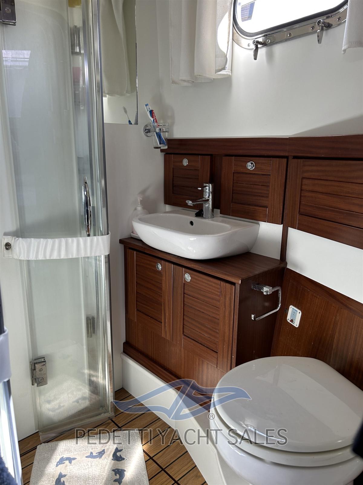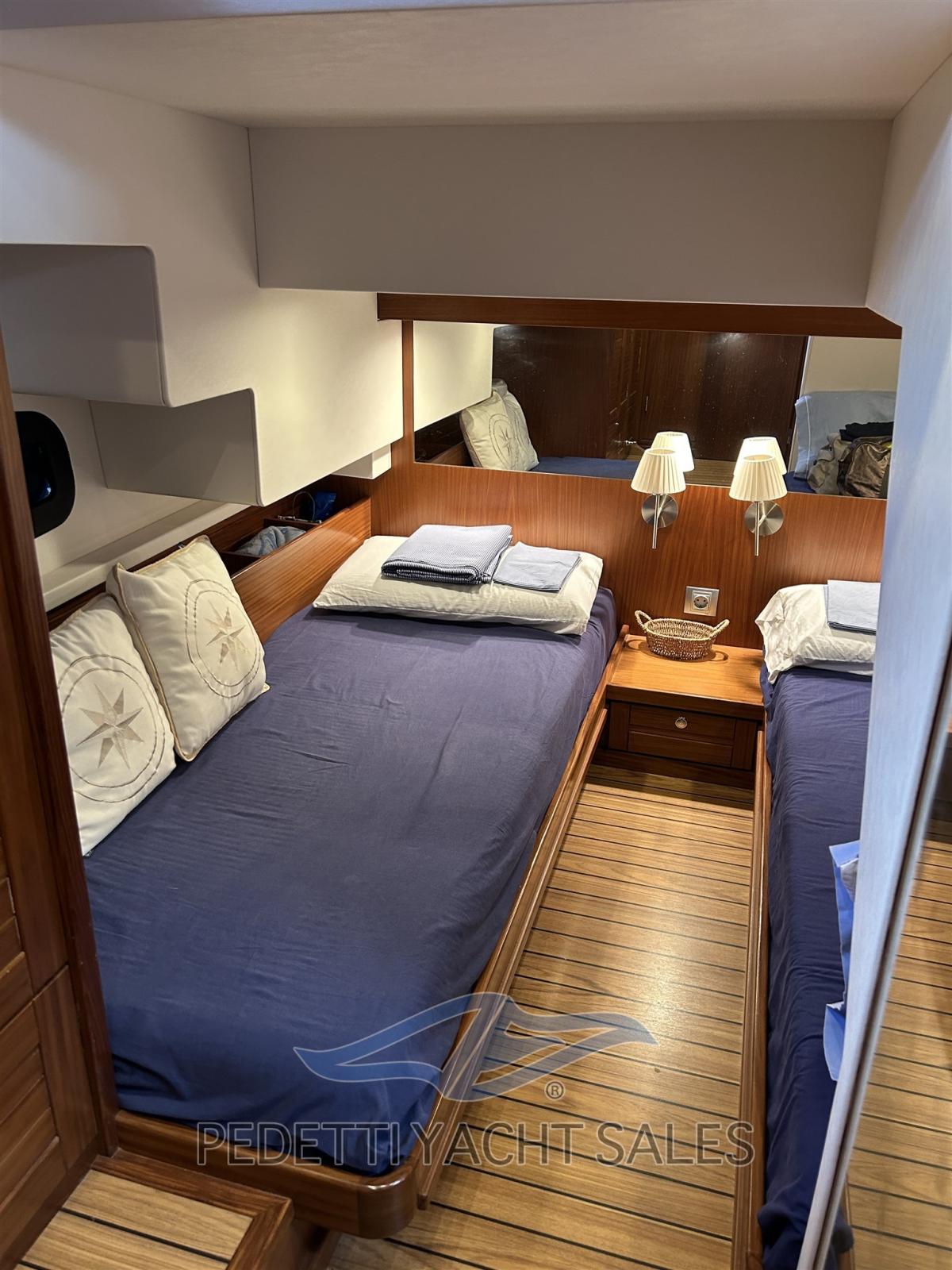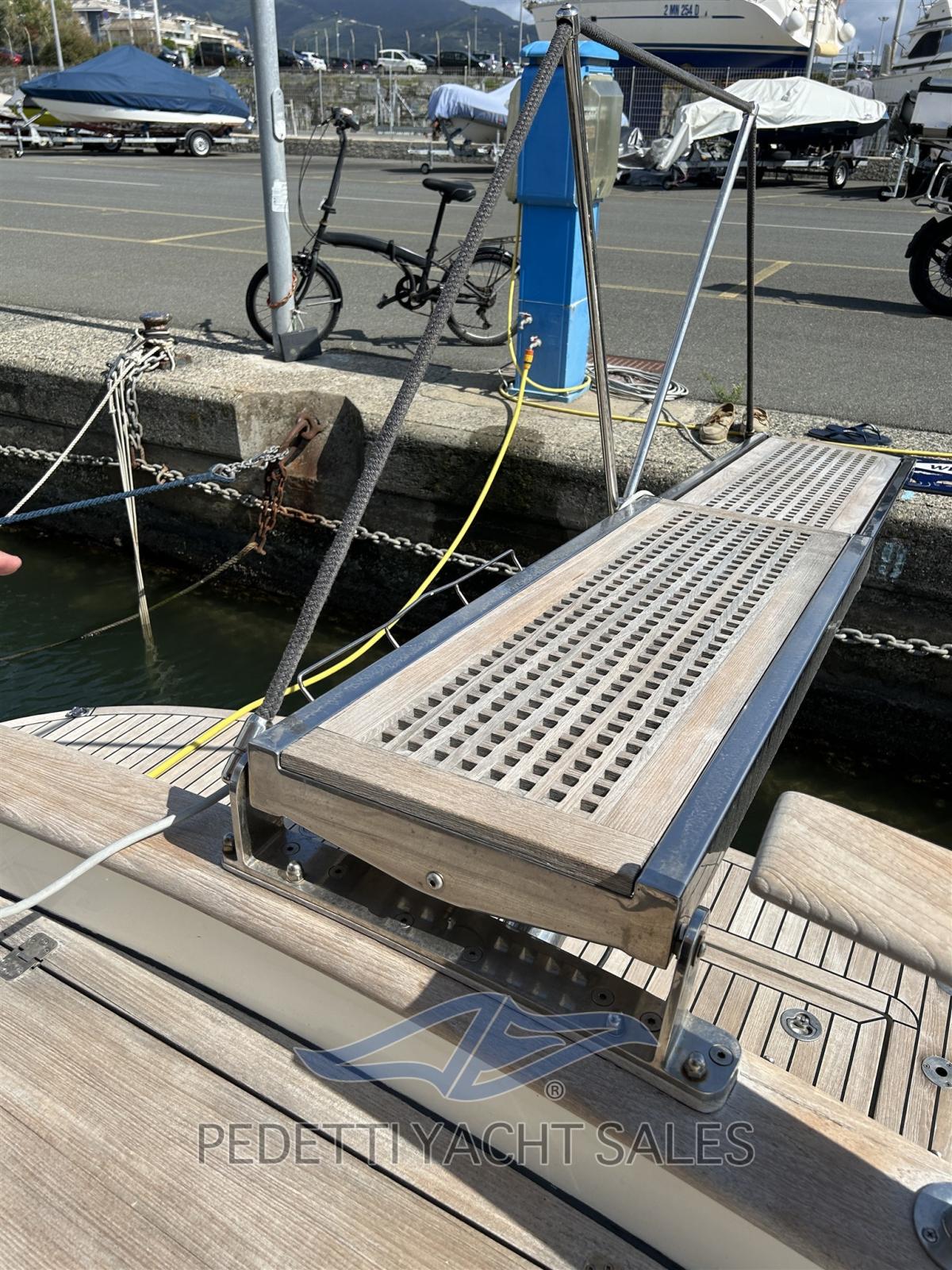 Alarme gaz, Alarme moteur, Alarme de pompe de cale, Ancre (Bruce 20 Kg), Auto Dynamic Trim Interceptor (Intruder Volvo Penta), Eau sous pression, Radeau de sauvetage (Scad. 2027), 5 Batteries (Nuove 2025), Passavant en teck, Câble d’alimentation à quai, Douche de cockpit (Apoppa calda e fredda), Double barre à roue (Interna e Fly), Propulseur d'étrave (Vetus), Extincteur(s) fixe(s) (Sala macchine a polvere), Indicateurs de flaps, Éclairage de courtoisie, 8 Défenses, Plateforme arrière, 3 Pompe de cale automatique, Cockpit en teck, Prise de quai, Guindeau électrique, Echelle de bain, Table pliante de salon, Filières avec sortie latèrale, Corne.