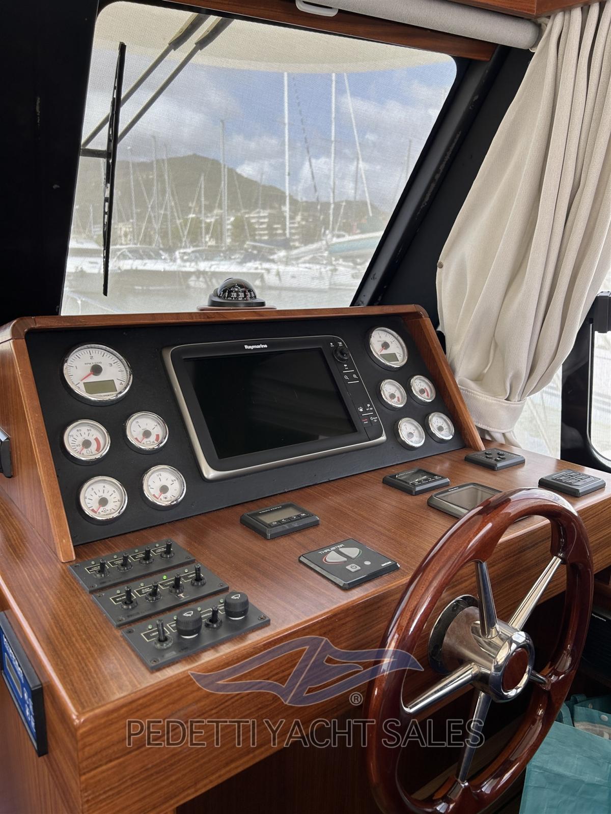 Indicateur d'angle de barre, Commande électrique, DSC VHF (Raymarine), Sondeur pêche (Raymarine), Pilote automatique (Raymarine), Plotter GPS (Raymarine Axiom), Instruments de mesure pour moteurs.