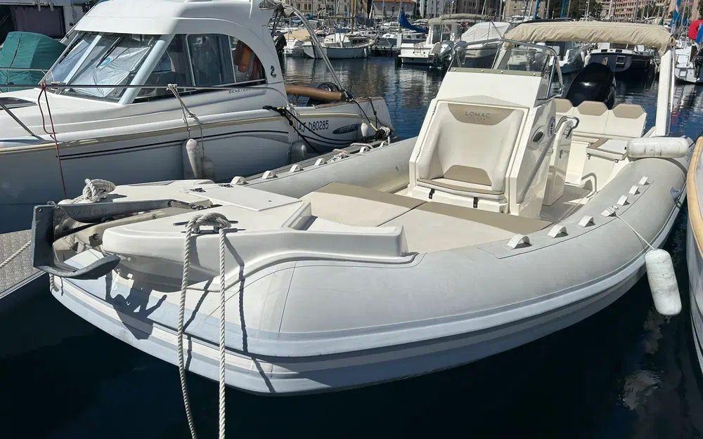 Millésime 2022 - Le Lomac 850 Turismo est proposé avec un équipement complet qui assure confort et sécurité dès la mise à l’eau. Il dispose d’une console de pilotage complète avec pare-brise et main courante inox, d’une direction hydraulique pour monomoteur avec volant gainé cousu main, ainsi que d’un tableau électrique à 8 interrupteurs protégés par fusibles.Côté confort, on retrouve la sellerie bain de soleil avant ainsi qu’une sellerie arrière spacieuse, un bolster pilote, une table arrière en bois marin, et des plateformes arrières pour monomoteur.L’autonomie est assurée par un réservoir carburant inox de 230 litres, équipé de son kit de remplissage, jauge, filtre décanteur et extracteur de gaz monté.Le bateau est également doté d’une échelle inox télescopique sous plateforme, ainsi que d’une paire de pagaies, d’un gonfleur et d’un kit de réparation.