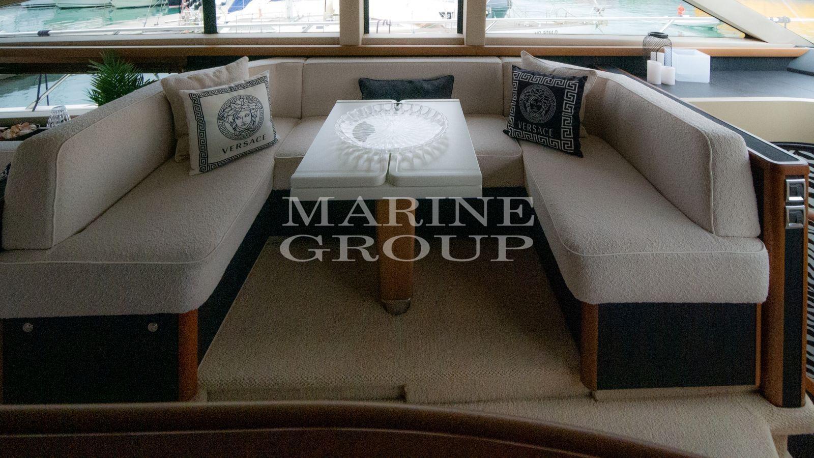 Passavant en teck, Douche de cockpit, Double barre à roue, Propulseur de poupe (a velocità variabile), Phare de poursuite, Flaps hydrauliques, Bossoirs pour annexe, Éclairage de courtoisie, Spots sous-marins, Passerelle, Plateforme arrière, Pont en teck, Porte latérale, Porte latérale, Cockpit en teck, Prise de quai, Connexion eau sous pression à quai, Répétiteur électronique, Guindeau électrique, Echelle de bain, Selles pour Annexe, table de cockpit, Annexe, Corne, Pont en teck.