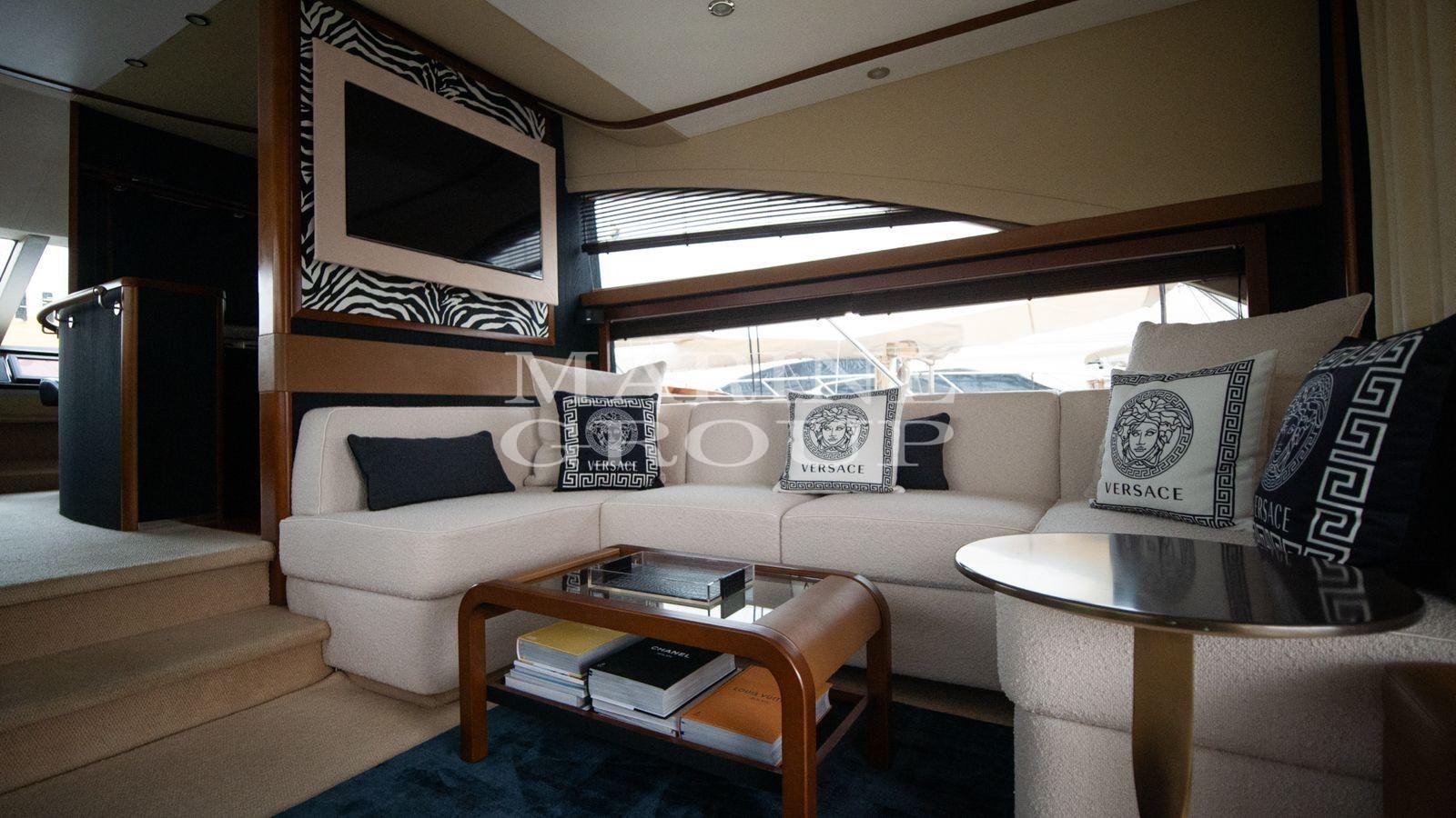 Refit complet par Abitami en 2024. Grand salon avec canapés en cuir - Cuisine sur le pont principal avec grand réfrigérateur/congélateur, four et lave-vaisselle - Dinette avec table à manger interne - Cabine principale au milieu du navire avec lit double et salle de bain attenante - Cabine VIP à l’avant avec lit double et salle de bain attenante - Cabine d’invités avec lits simples au sol et accès direct à la salle de bain - Cabine d’invités avec lits superposés - Salle de bain complète de la cabine d’invités - Cabine de l’équipage à l’arrière avec deux couchettes et salle de bain complète séparée.