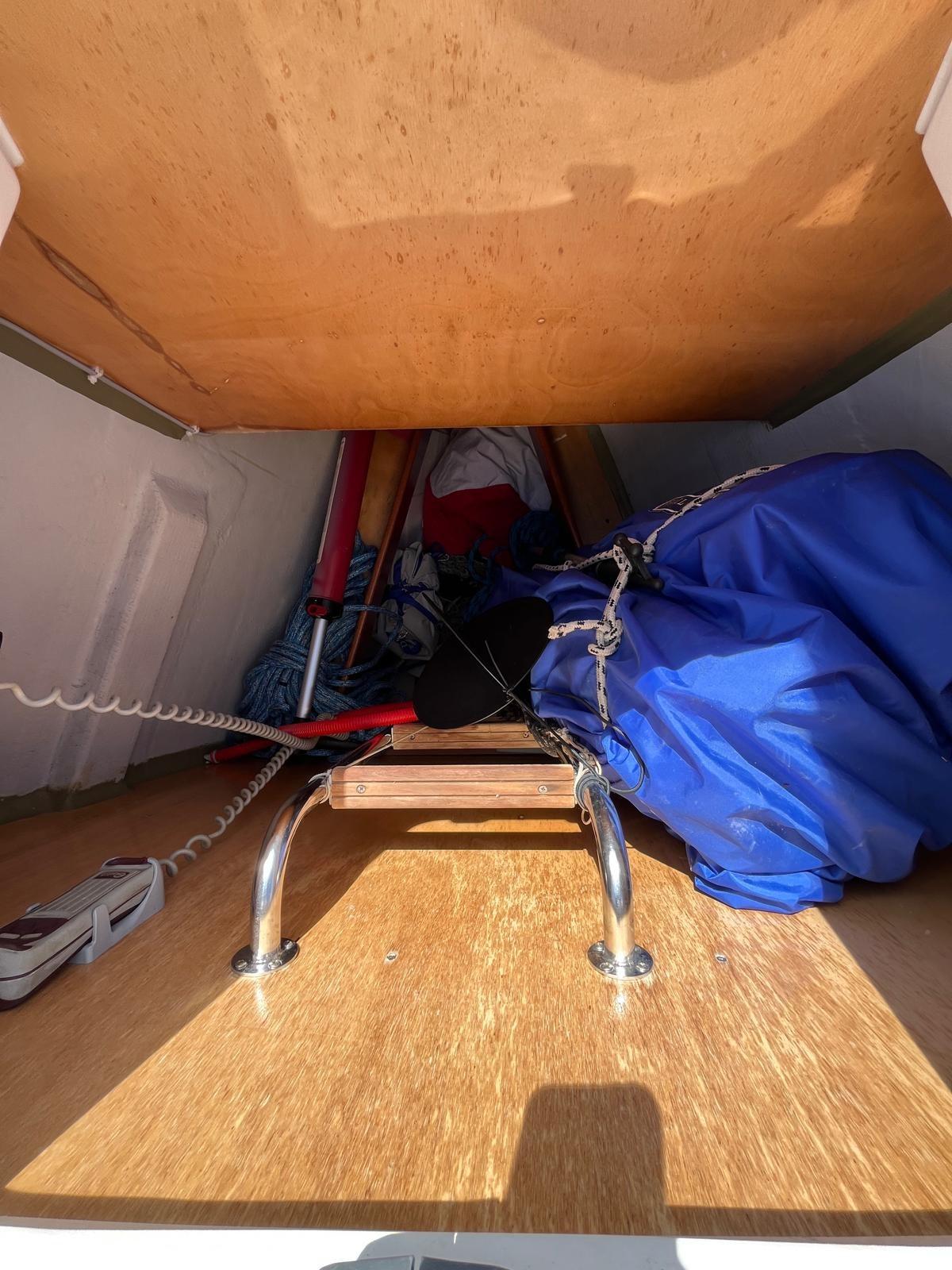 Alarme moteur, Ancre (20kg Delta catena mm12 75 mt catena), Eau sous pression, Radeau de sauvetage (Arimar 8 p), 6 Batteries (4 serv., 1 motore , 1 elica prua), Passavant en teck, Chargeur de batterie (40 a), Douche de cockpit (calda e fredda), Double barre à roue, 2 Panneau solaire, Passerelle (carbonio), Plateforme arrière, Pompe de cale automatique, Pompe de cale manuelle, Cockpit en teck, Prise de quai, Onduleur, Guindeau électrique, Echelle de bain, Chaise support HB, Annexe (e FB Honda 2,3 HP), 4 Winch (3 elettrici), Windex.