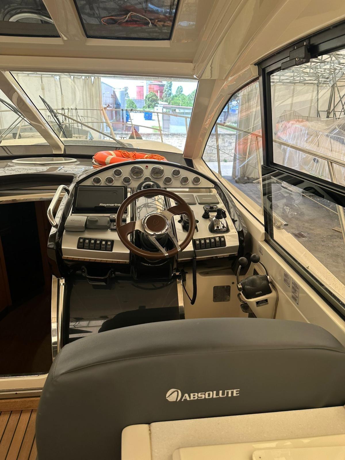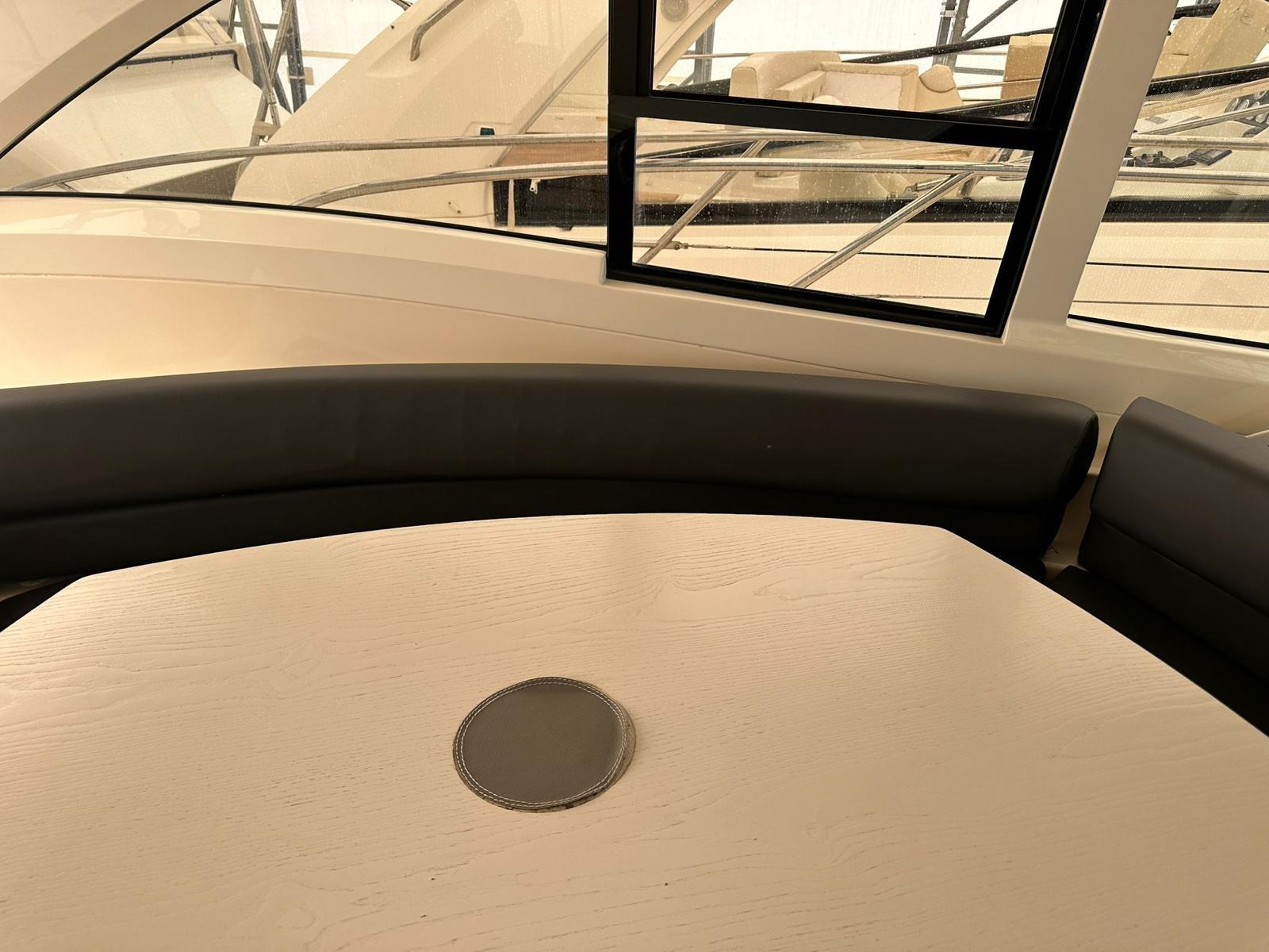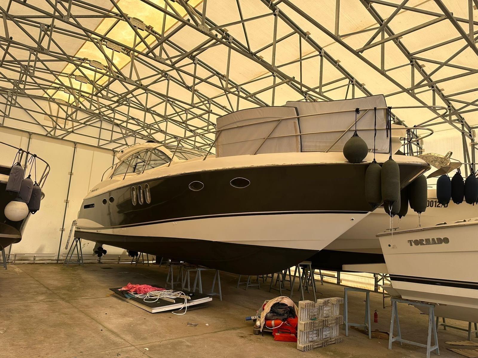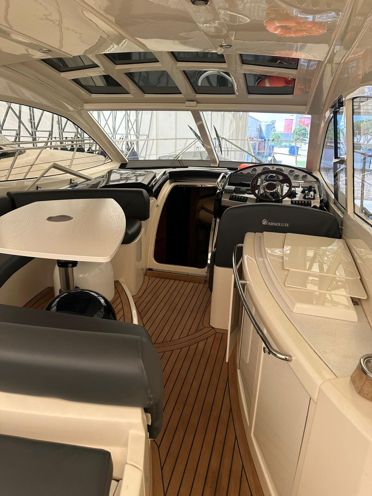 Alarme moteur, Alternateur, Ouverture du compartiment moteur électrique, Eau sous pression, Couleur spéciale (Grigio scuro), Douche de cockpit, Phare de poursuite, Flaps électriques, Garage à annexe, Hard top, Lavabo dans le cockpit, Éclairage de courtoisie, Passerelle, Plateforme arrière, Pompe de cale automatique, Pompe de cale manuelle, Cockpit en teck, Prise de quai, Onduleur, Guindeau électrique, Echelle de bain, table de cockpit, Table pliante de salon, Filières avec sortie latèrale, Corne.