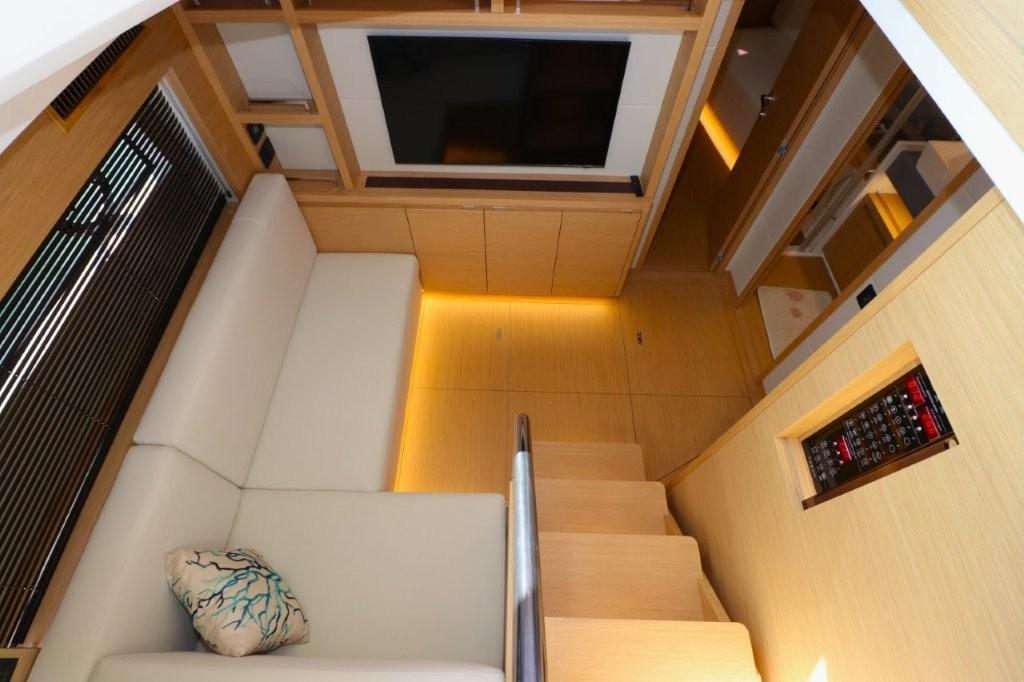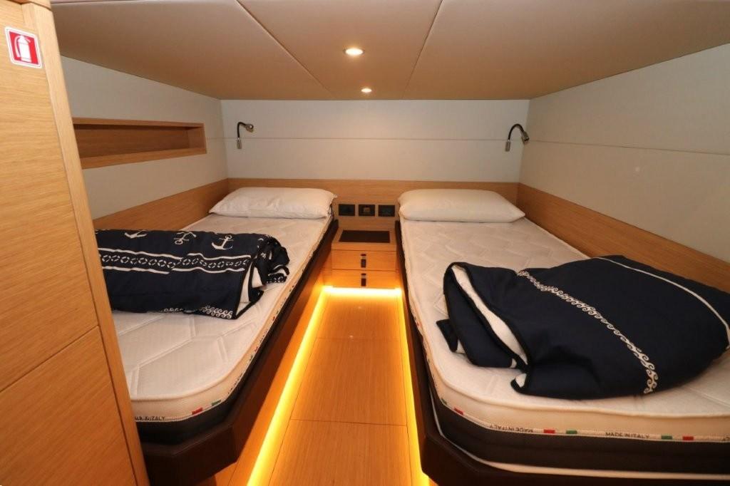 Eau Chaude, Ballon d'eau chaude, Air Conditionné, Connexion Internet par satellite (Antenna SAT TV KVH TV5,completa di decoder), Contrôleur domotique, Dessalinisateur (OSMOSEA 100 L/H), Jauge de Réservoir d’Eau, Convertisseur (2500 W), Plancher intérieur en bois (TEAK TRATTATO), Prises interieures 12v, Prises interieures 220v, 2 Réservoir d'eau noire, 2 Toilettes électriques.