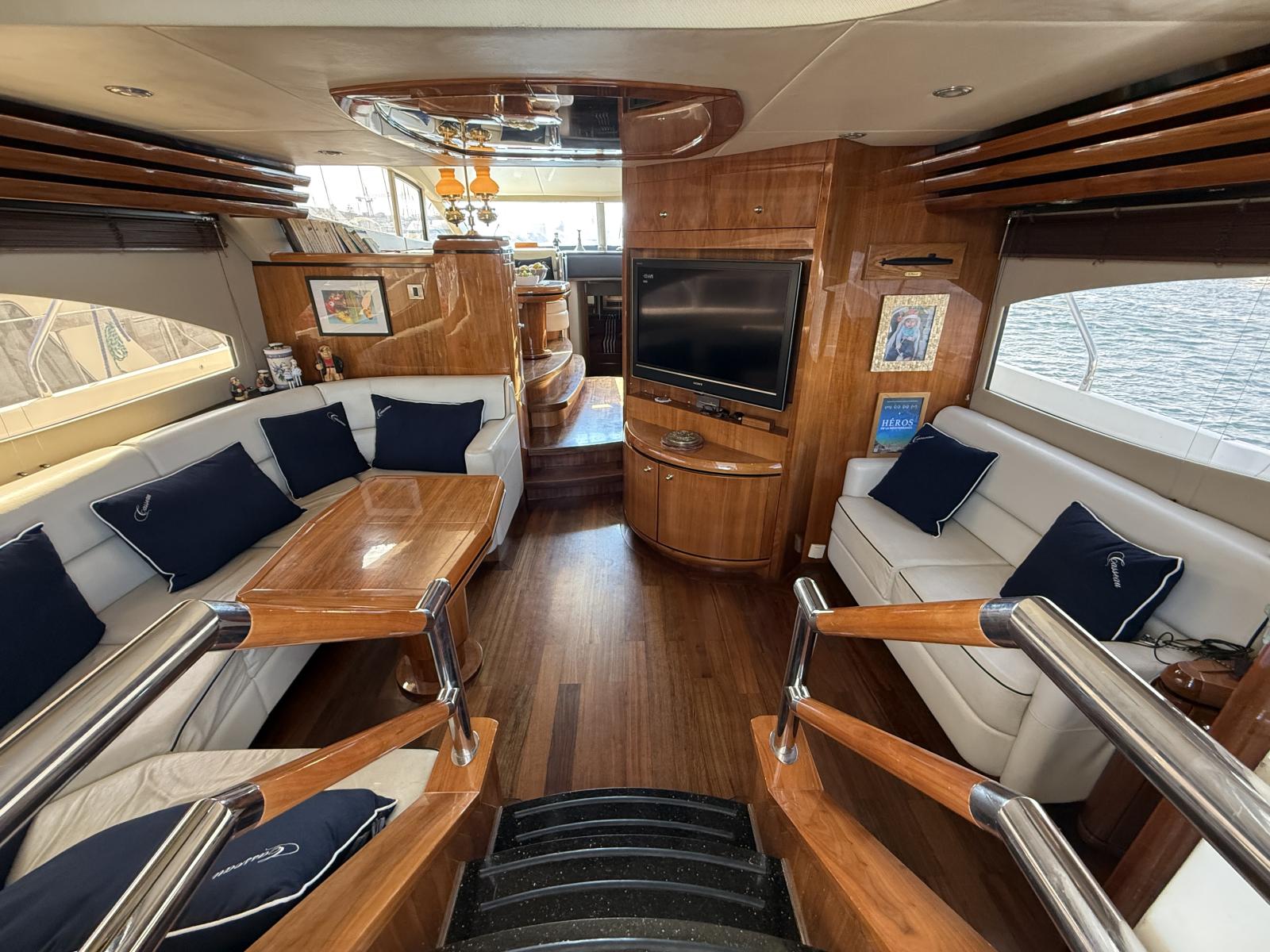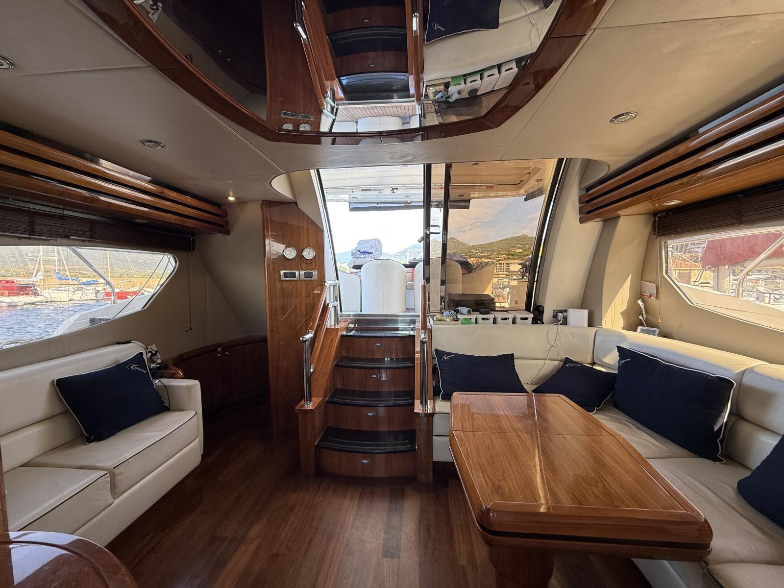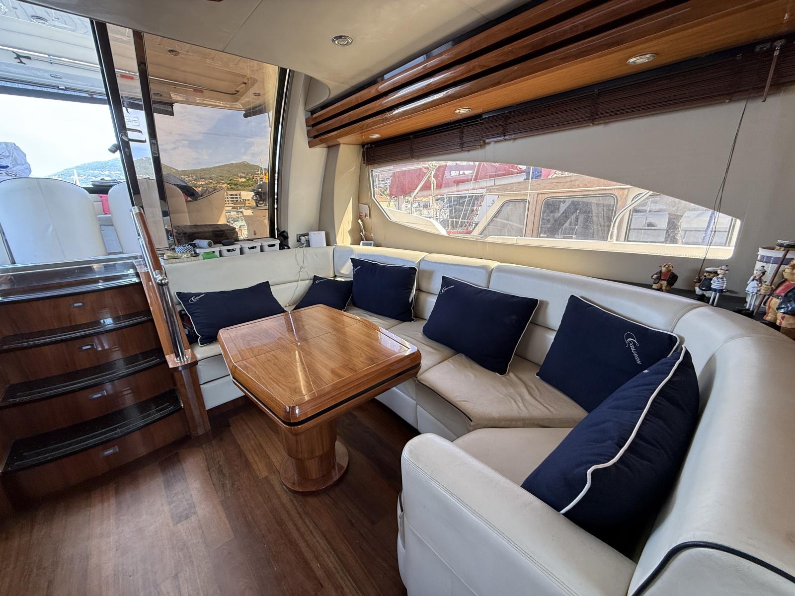 À bord, les volumes impressionnent : un salon lumineux, une cuisine entièrement équipée, et surtout une grande master cabine arrière full beam, véritable suite privée offrant luxe et intimité. Trois autres cabines à l'avant accueillent famille et invités dans un confort absolu.