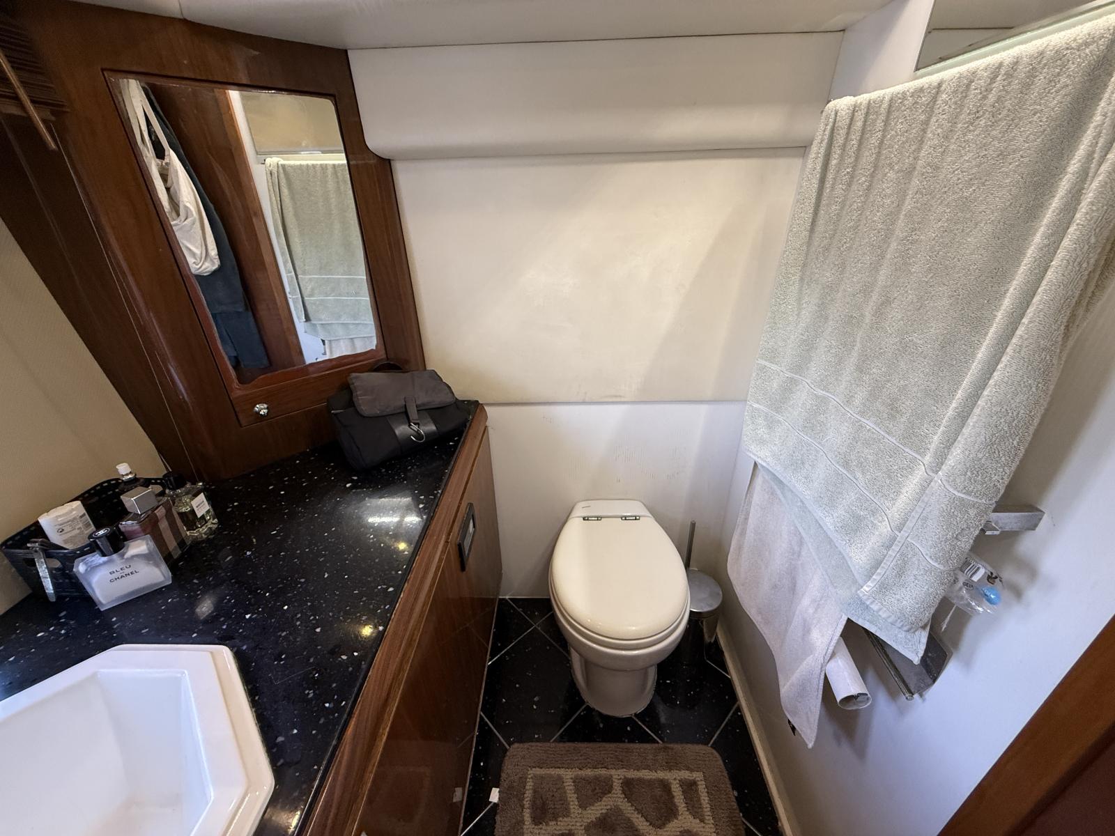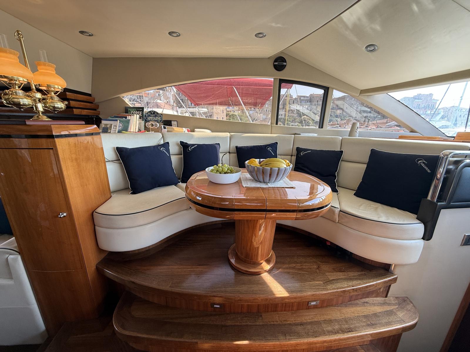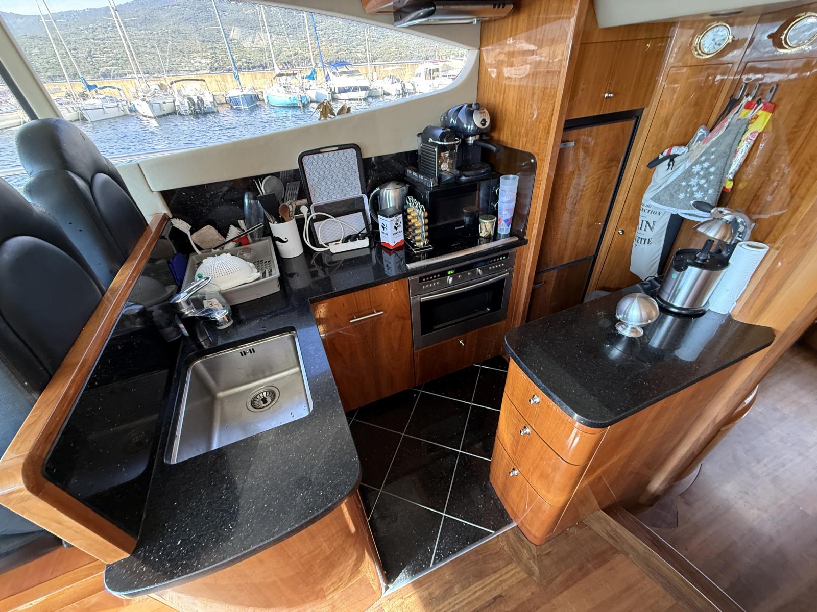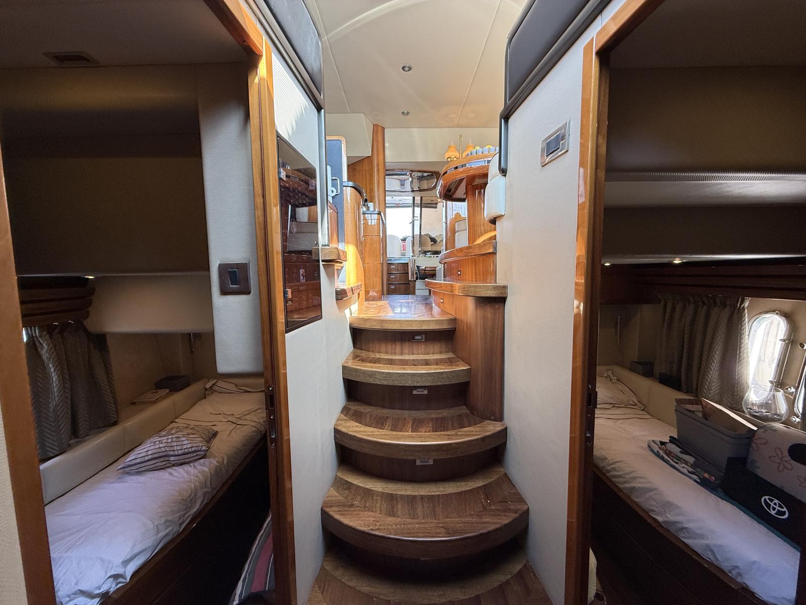 À bord, les volumes impressionnent : un salon lumineux, une cuisine entièrement équipée, et surtout une grande master cabine arrière full beam, véritable suite privée offrant luxe et intimité. Trois autres cabines à l'avant accueillent famille et invités dans un confort absolu.