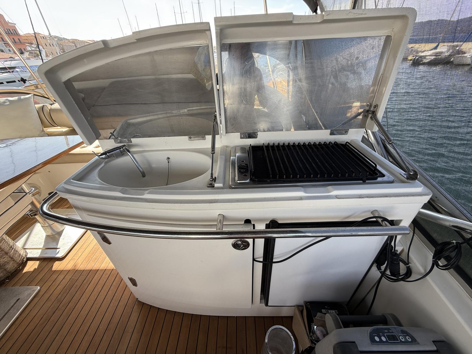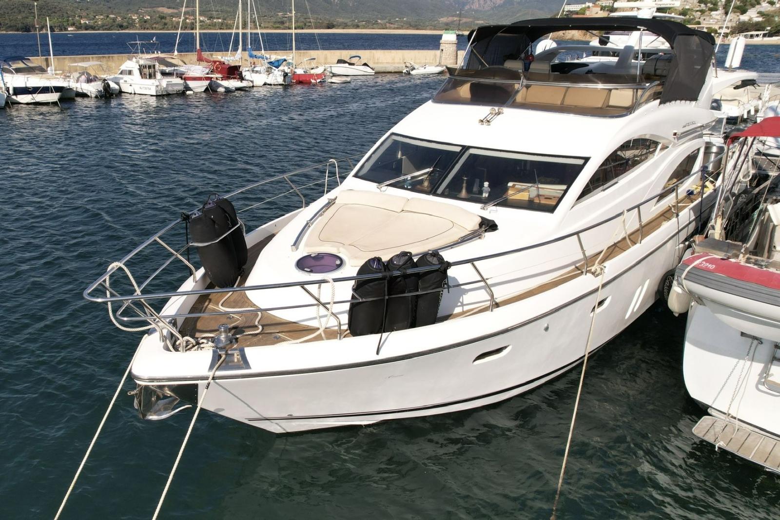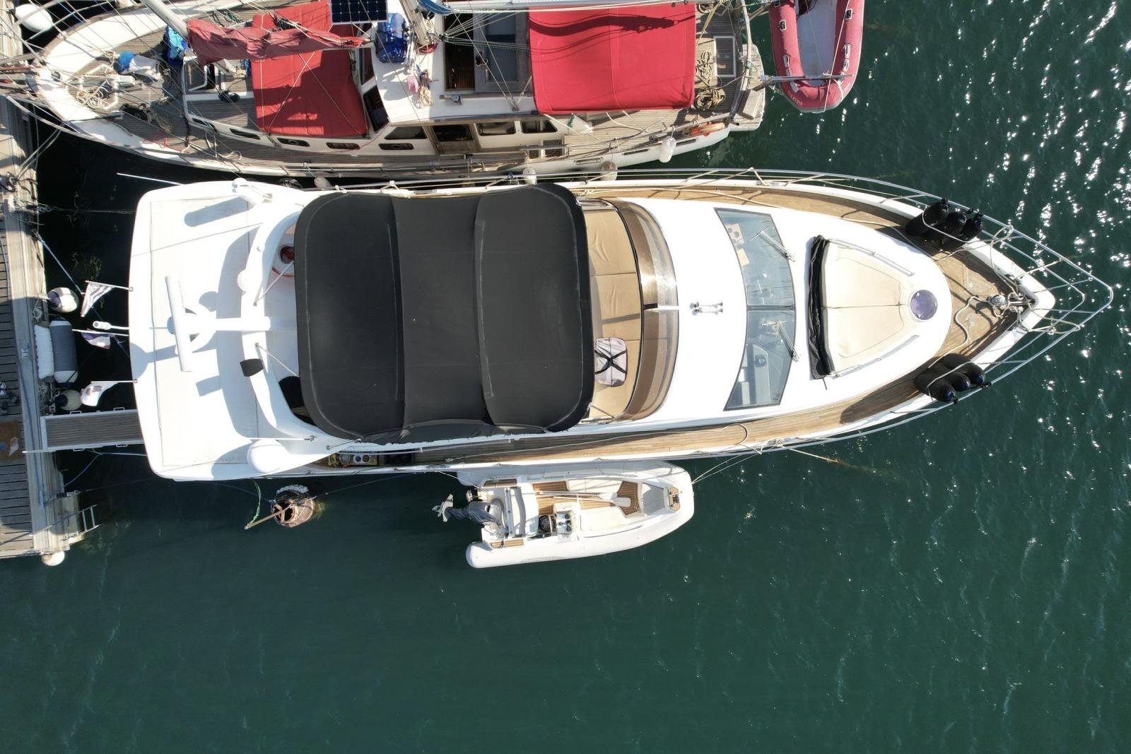 Côté extérieur, le yacht propose un flybridge spacieux avec coin repas et bains de soleil, un pont arrière convivial protégé d'un grand hard top électrique et une plateforme de bain hydraulique idéale pour les loisirs nautiques.