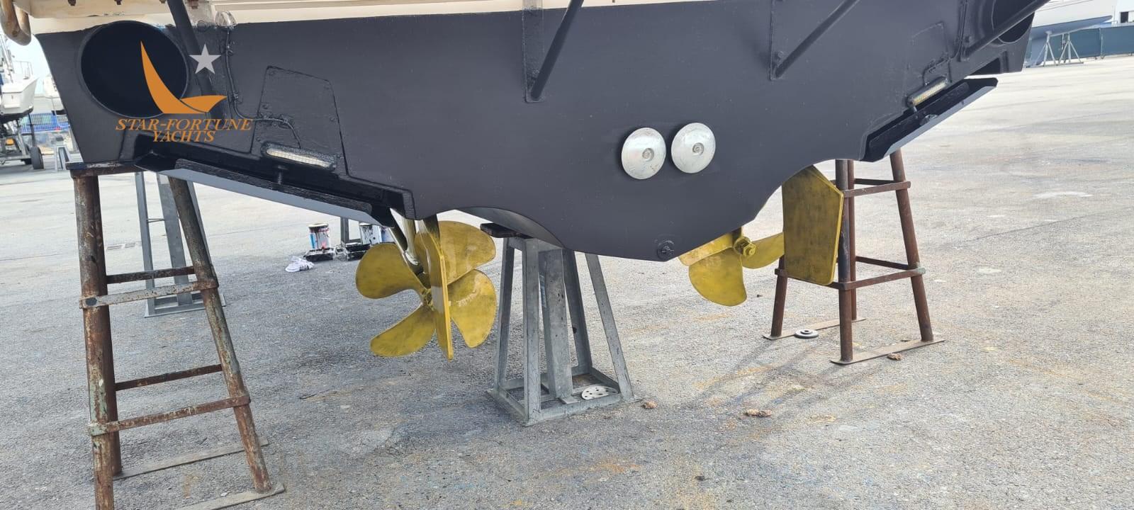Alarme moteur, 4 Batteries, Douche de cockpit, Flaps hydrauliques, Lavabo dans le cockpit, Porte latérale, Prise de quai, Rollbar, Guindeau électrique, Echelle de bain, Corne.