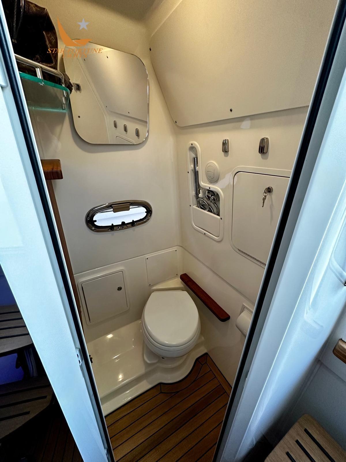 Adapté à la croisière, ce bateau offre un espace de couchage pour trois personnes, ainsi qu’une salle de bain fonctionnelle.