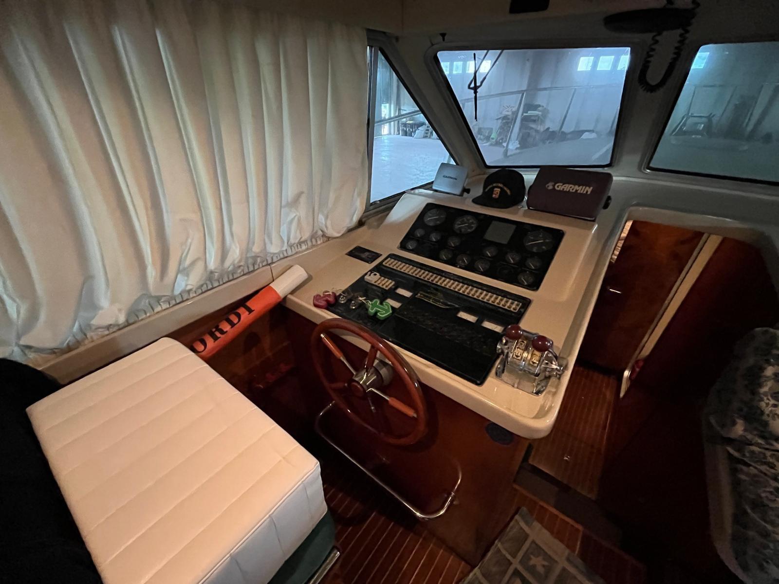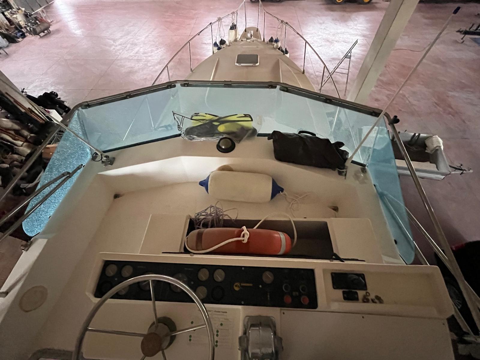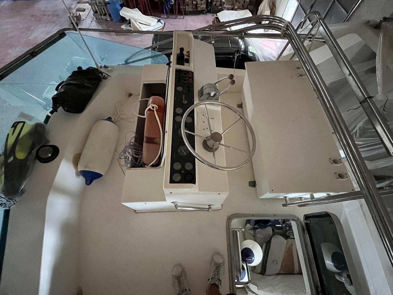 Eau sous pression, Douche de cockpit, Double barre à roue, Flaps hydrauliques (N°2), Passerelle (idraulica), Plateforme arrière, Pompe de cale automatique, Onduleur, Guindeau électrique, Echelle de bain, Annexe (con motore nuovo Honda).