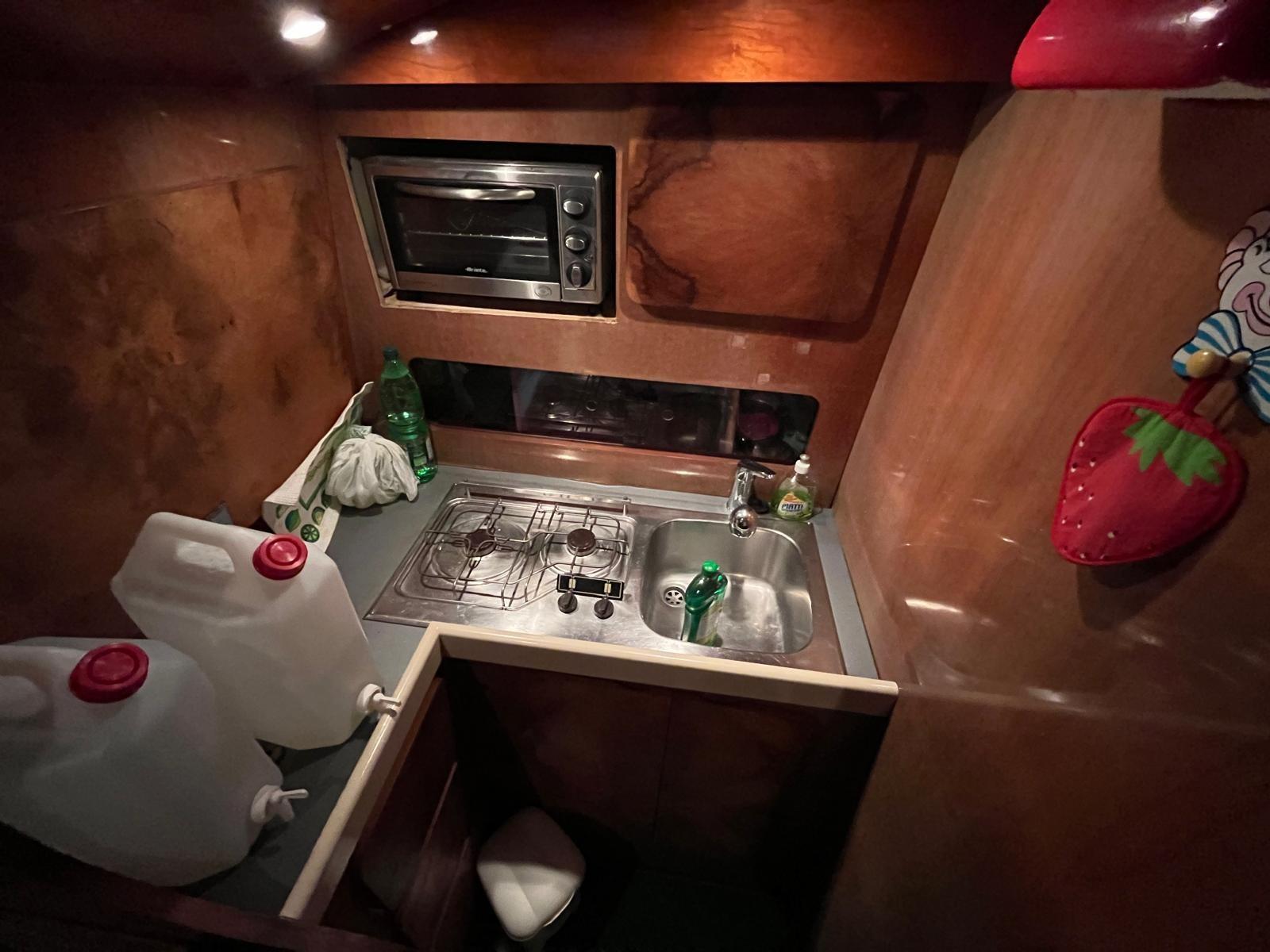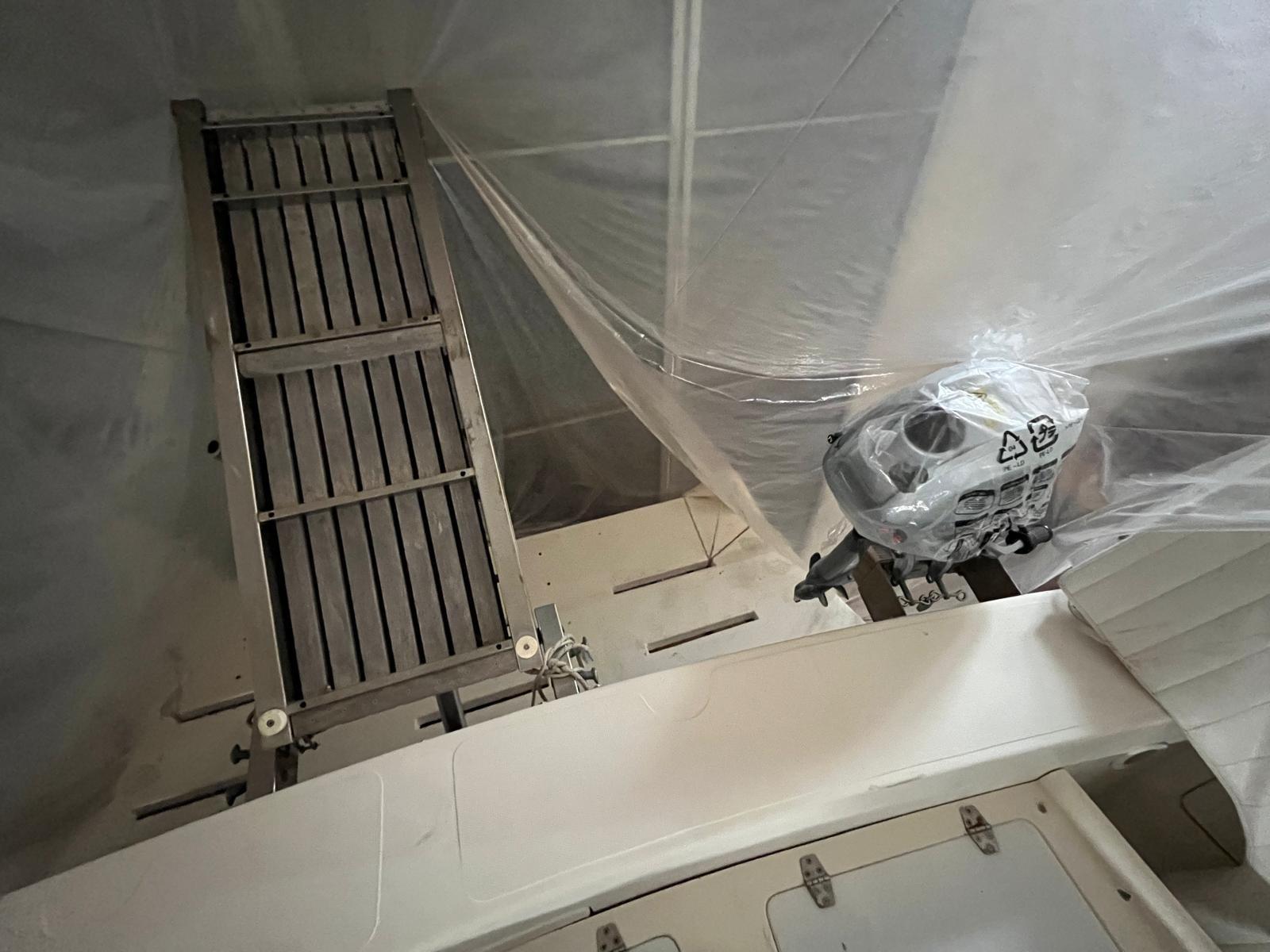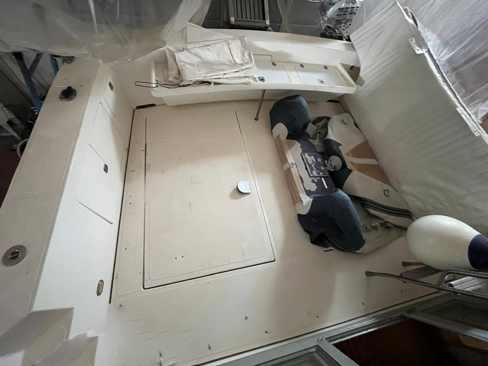 Eau sous pression, Douche de cockpit, Double barre à roue, Flaps hydrauliques (N°2), Passerelle (idraulica), Plateforme arrière, Pompe de cale automatique, Onduleur, Guindeau électrique, Echelle de bain, Annexe (con motore nuovo Honda).