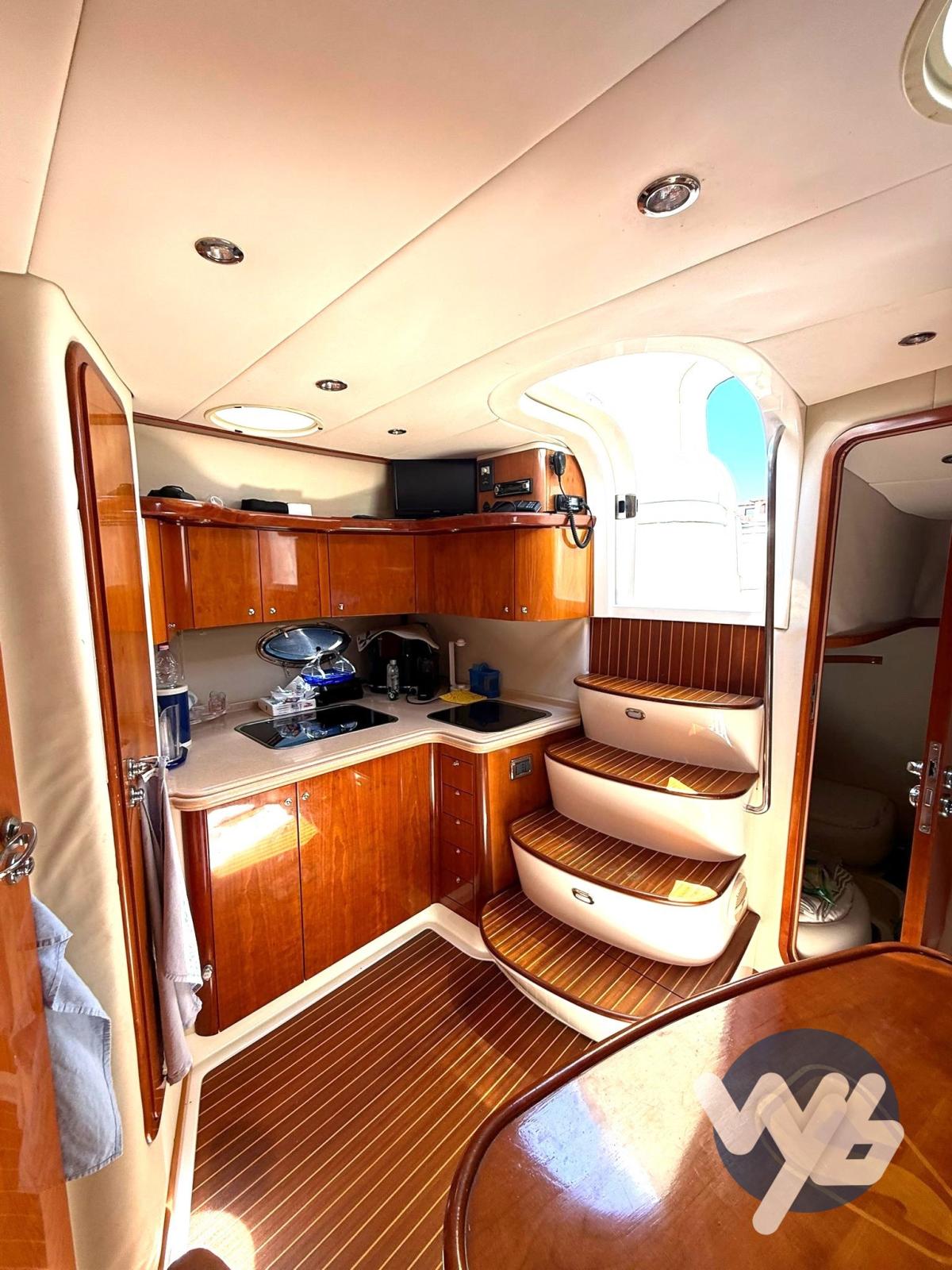 Alarme moteur, Alarme de pompe de cale, Eau sous pression, Douche de cockpit, Flaps hydrauliques, Passerelle, Pompe de cale manuelle, Porte latérale, Prise de quai, Rollbar, Guindeau électrique, Echelle de bain, table de cockpit.