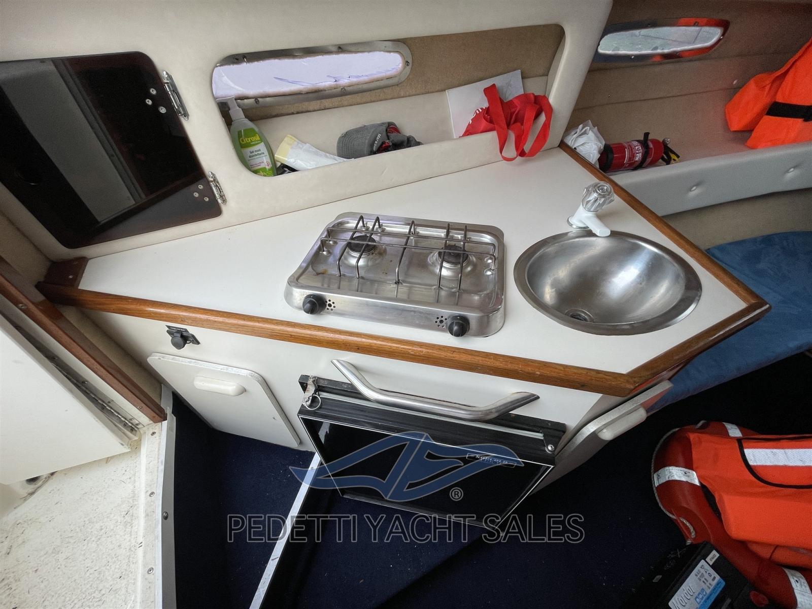 Sea Ray 230 en parfait état d’entretien, coussins intérieurs, matelas et housses neufs, sur demande nous envoyons les travaux récemment effectués, le bateau est visible à sec sur un réservoir