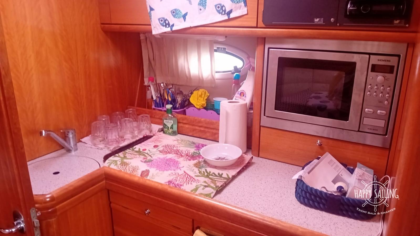 Eau sous pression, Douche de cockpit, Flaps électriques, Passerelle (idraulica), Plateforme arrière (teak), Pompe de cale automatique, Onduleur, Guindeau électrique, Echelle de bain, table de cockpit.