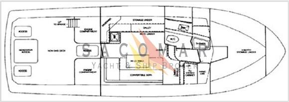 Volets, plate-forme arrière, intérieur en bois, cabine de douche, treuil électrique, prises de pêche à fond profond, filtres Racor