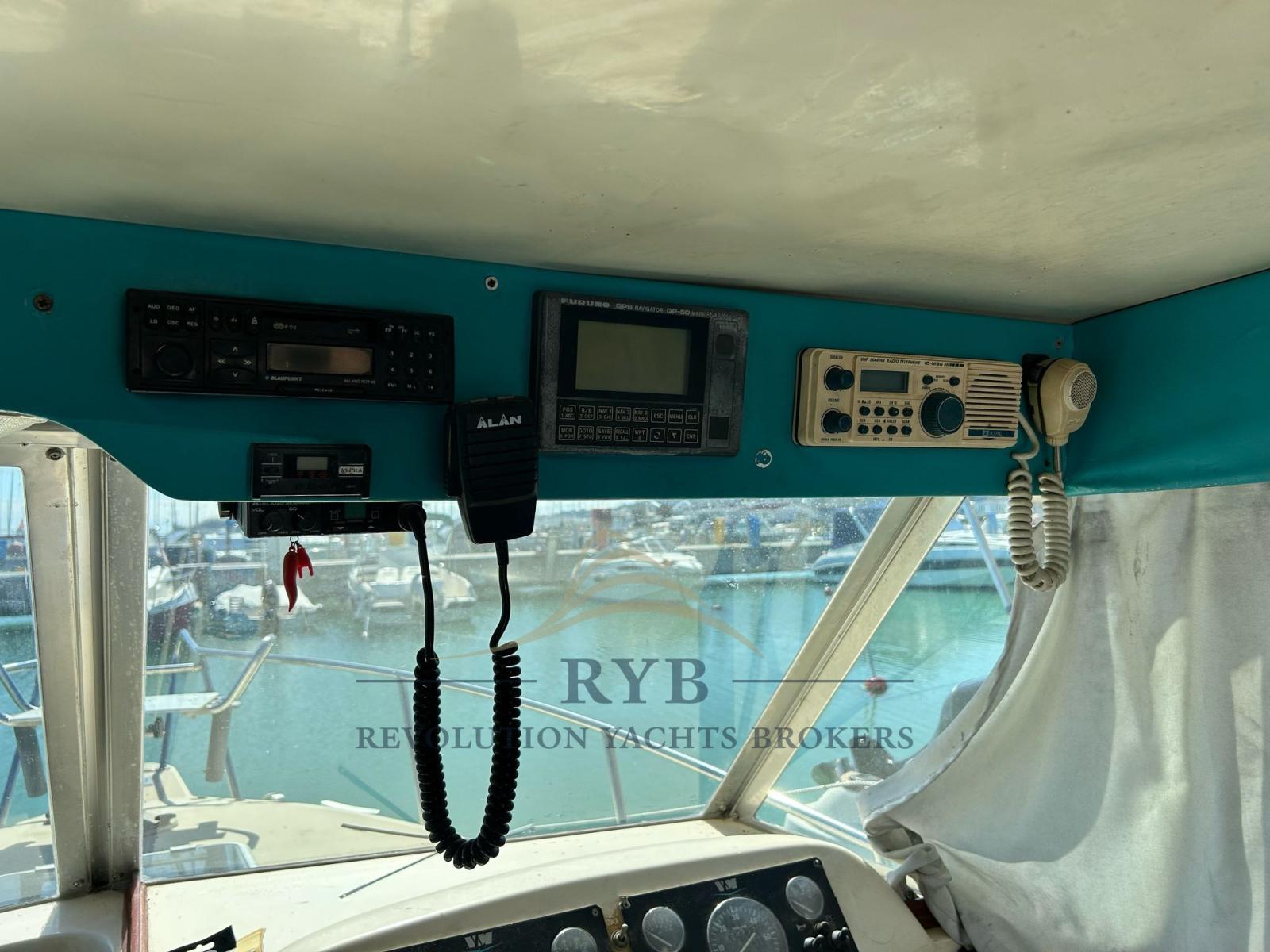 Eau sous pression, Douche de cockpit, Phare de poursuite, Flaps hydrauliques, Plateforme arrière, Porte latérale, Prise de quai, Guindeau électrique, Echelle de bain.
