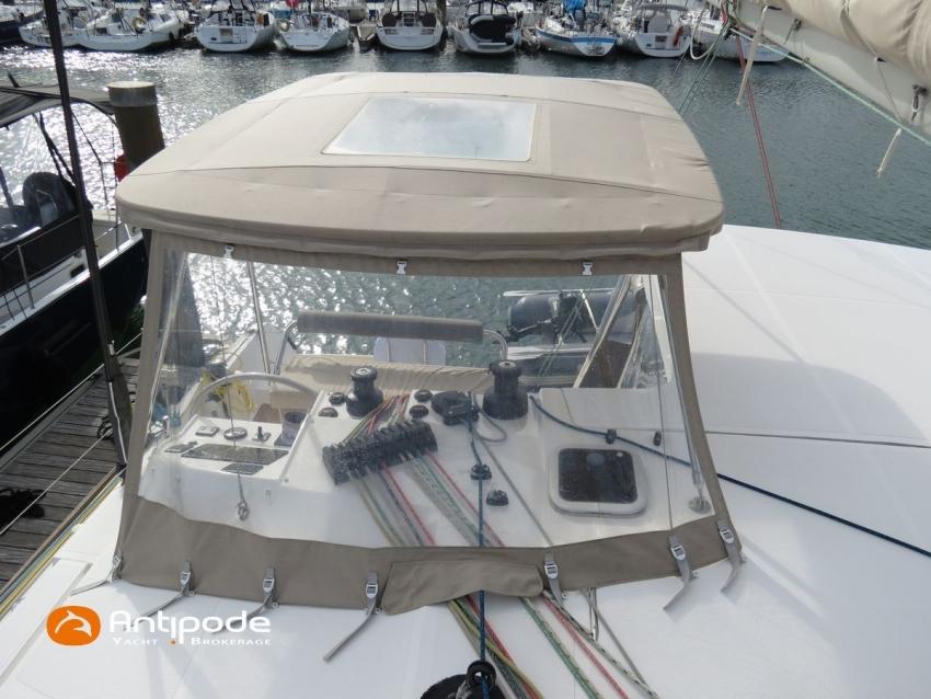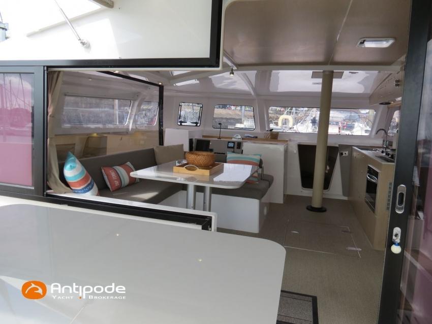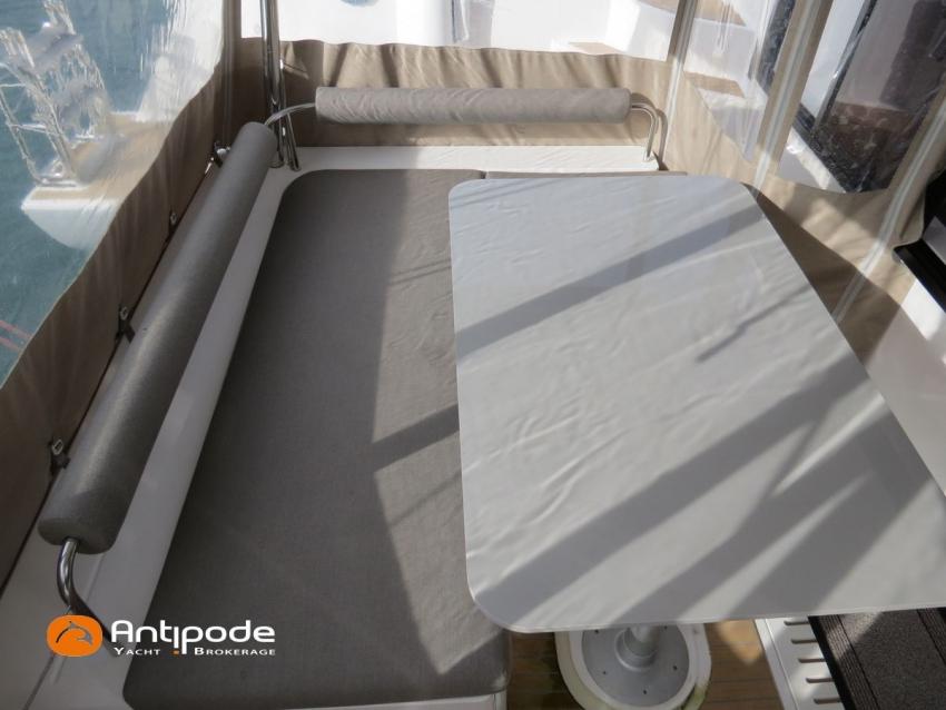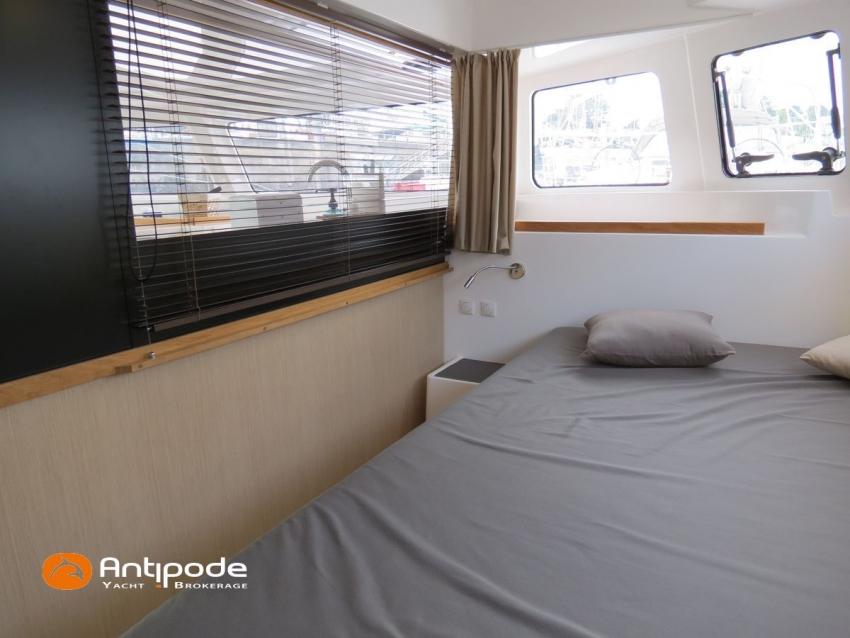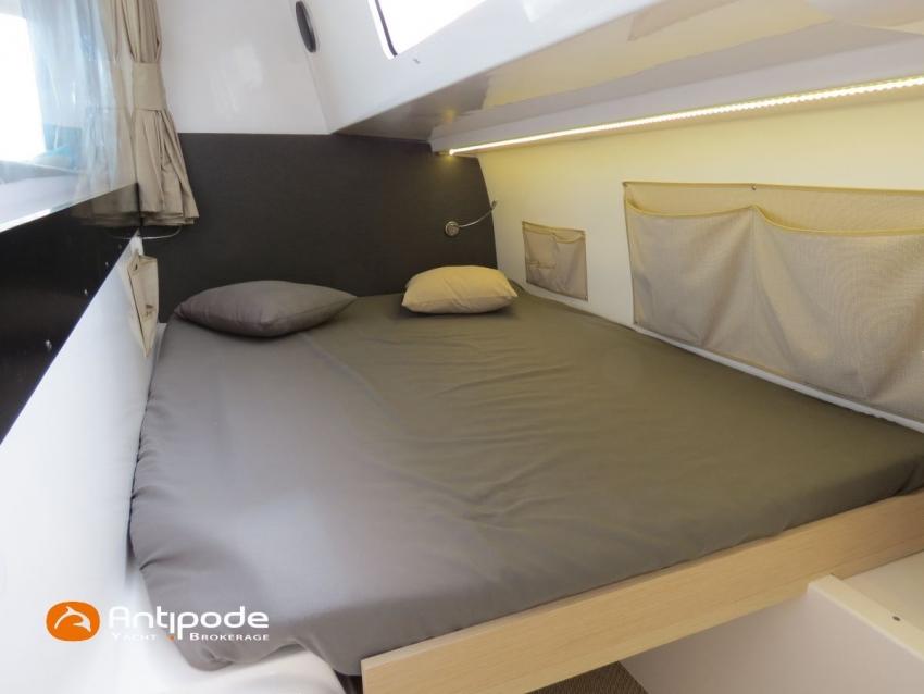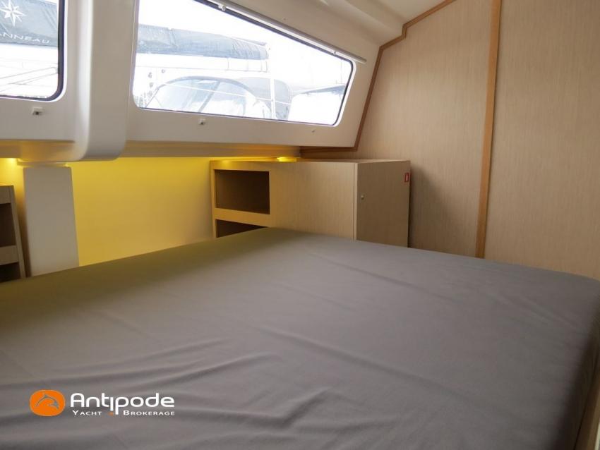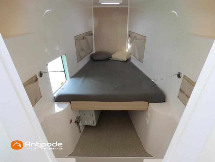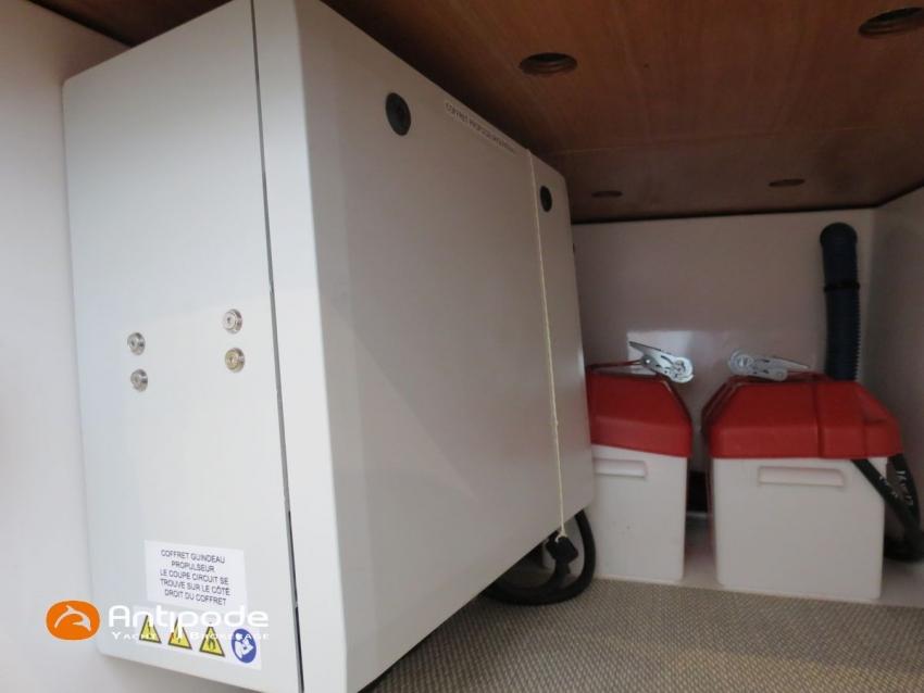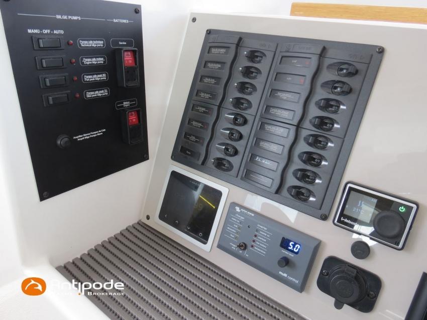 NEEL 43, 2022, 1ère main, VOLVO D2-50F, 50 cv (500.1 h), Propulseur d'étrave, Version Pack Premium, Version d'aménagement intérieur 1 cabine avant, 2 cabines latérales avec cloisons de séparations, 2 Cabines simples aménagées dans les flotteurs, Menuiseries intérieures Alpi, Tapis de sol Bolson dans carré, cabines et accès soute technique, Sous matelas dans les cabines doubles, Rideaux dans les cabines, Meuble haut de rangement au dessus de la cuisine, Table de carré cocktail, Moustiquaires de hublots et panneaux de pont, 2 winchs d'écoutes de spinnakers sur les coques - Antal XT44, 1 winch sur roof pour écoutes de génois ou trinquette - Antal XT48, Winch électrique 2 vitesses sur roof pour drisses et écoutes de GV - Antal XT40, Delphinière composite avec davier intégré, Fond de cockpit Flexyteek, Jupe arrière avec flexyteek et bers d'annexe, Table de cockpit Diner, Housse de barre à roue, Bimini poste de barre avec fermetures parebrise et latérales, Hard top de cockpit, Selleries cockpit et poste de barre - Sunbrella, Taud d'assise du poste de barre et taud de console, Compteur de chaine au poste de barre, Palan de levage d'annexe électrique - Antal line driver + télécommande, Tauds de fermeture arrière complète du cockpit, Mât aluminium classique posé sur le pont, Grand-voile à corne full batten - Incidences, Rail de guindant de grand voile + chariots de lattes, Prises de ris automatiques (x 2), Lazy-bag de grand voile, Lazy-jacks de grand voile, Enrouleur de génois avec tambour sur le pont - Facnor LS180, Génois sur enrouleur - Incidences, Trinquette sur drisse moufflée et emmagasineur - Incidences, Gréement de spi asymétrique, Spinnaker asymétrique 115 m², Chaussette à spi, Gennaker sur emmagasineur - Technique Voile, Code 0 sur emmagasineur - Intuitive Sails, Pilote automatique in board - B&G NAC3, Pupitres de commande du pilote à la table à carte et au poste de barre, Répétiteur poste de barre - B&G Triton 2, Répétiteur à la table à carte - B&G Triton 2, GPS / lecteur de carte au poste de barre - B&G 12 pouces, Radar avec radôme sur support de mât - B&G broadband 4G, Transpondeur AIS (émetteur récepteur) avec switch pour couper l'émission, VHF ASN à la table à carte - B&G V60, VHF portable - Icom, Système audio Fusion MS AV 750 + 4 HP, Balise de détresse, Unité réfrigérante 12 V porte frontale, Conservateur froid négatif (freezer), Chauffe-eau 60 litres - 220 V + échangeur, Gazinière 2 feux + four avec grill, Plancha gaz dans le cockpit, 2 x batteries propulseur et chargeur dédié, Batteries service parc Lithium - 2 x 200Ah, Combiné chargeur convertisseur 12 V / 220 V - 2000W avec commande déportée à la table à carte - Victron Energy, Prises intérieures 220 V / 12 V / USB, Contrôleur / gestionnaire de batteries, Chauffage WEBASTO, Réservoir rigide eaux noires, WC électrique, Panneaux solaires - Solbian 2 x 155W , Douchette de cockpit eau chaude / eau froide, Feux de navigations à Leds, Eclairages intérieurs à Leds, liseuses avec prises USB, éclairage Led dans le cockpit, Radeau de survie + Equipement de sécurité 8 personnes , Mouillage principal ancre Kobra, Amarres et défenses, Annexe + Moteur hors-bord Suzuki 4tps 2.5cv, Visible Bretagne. Pour plus d'informations ou pour fixer un rendez-vous de visite, contact : Jean-Baptiste Lemaire 06 10 25 00 03 - jb@antipode-yachts.com