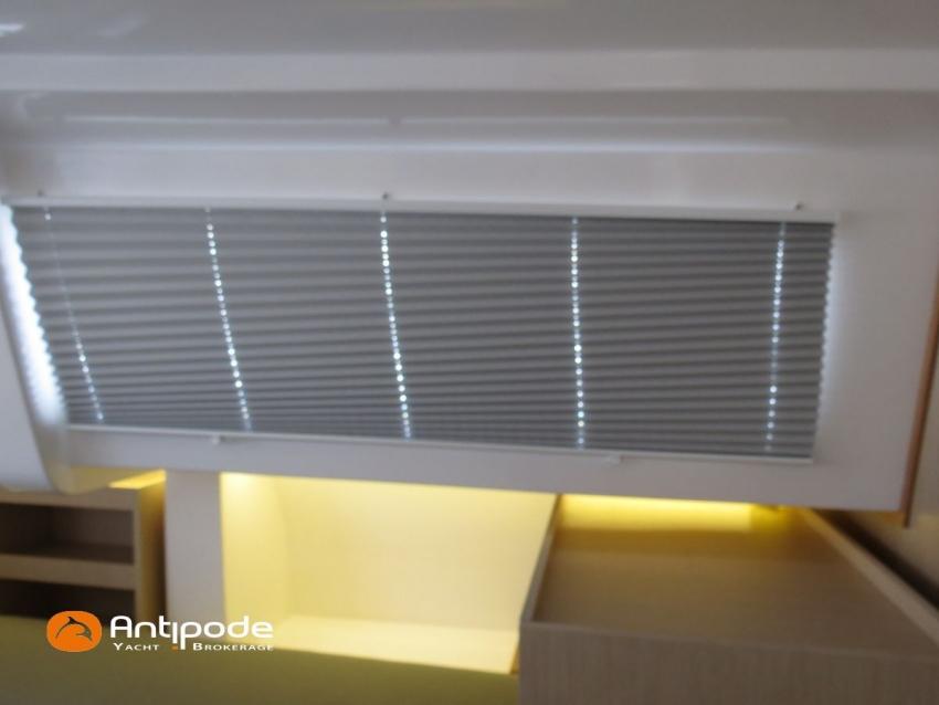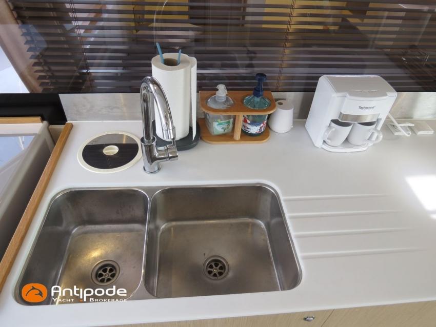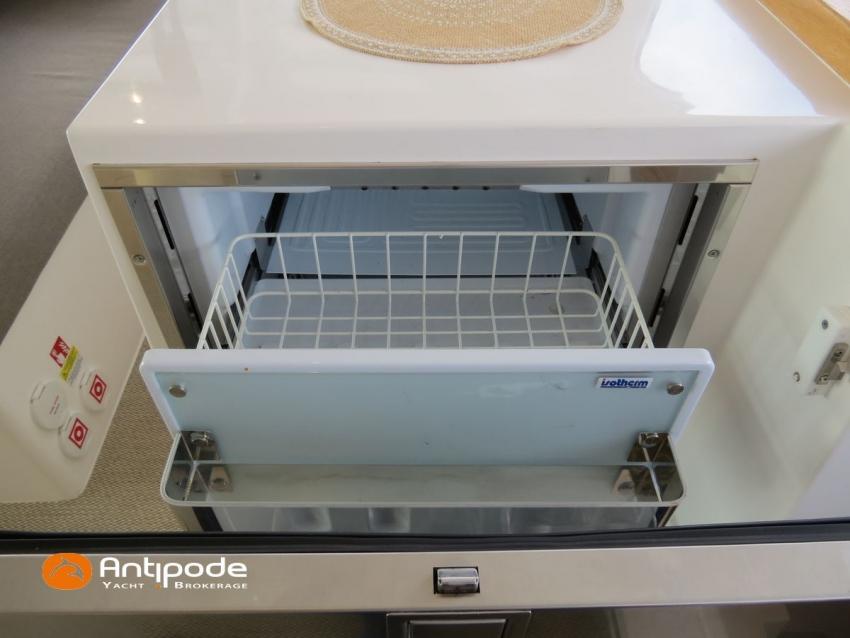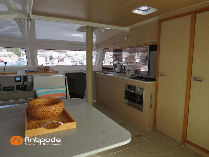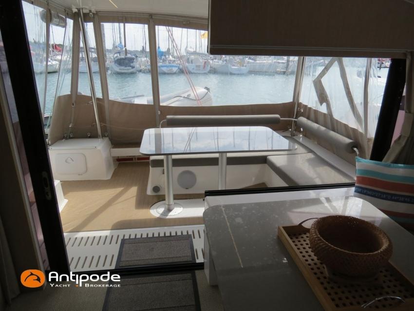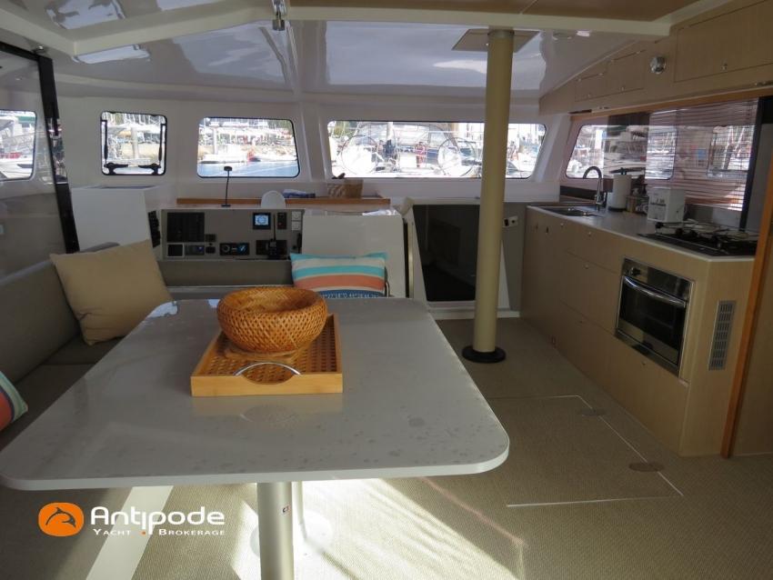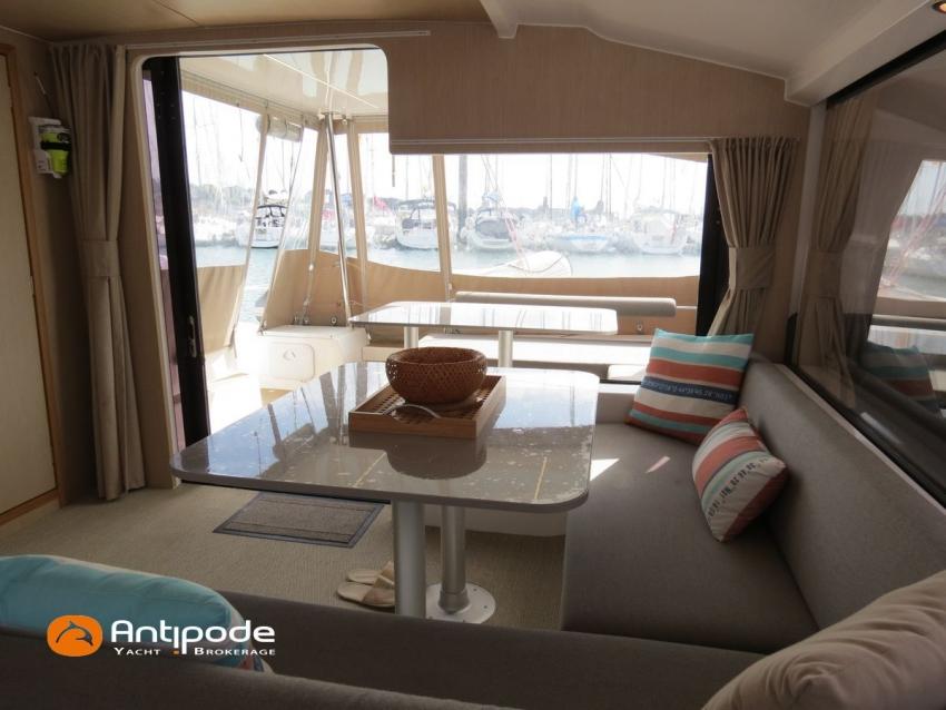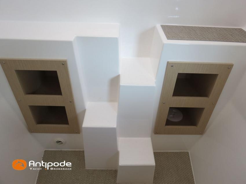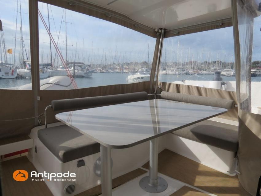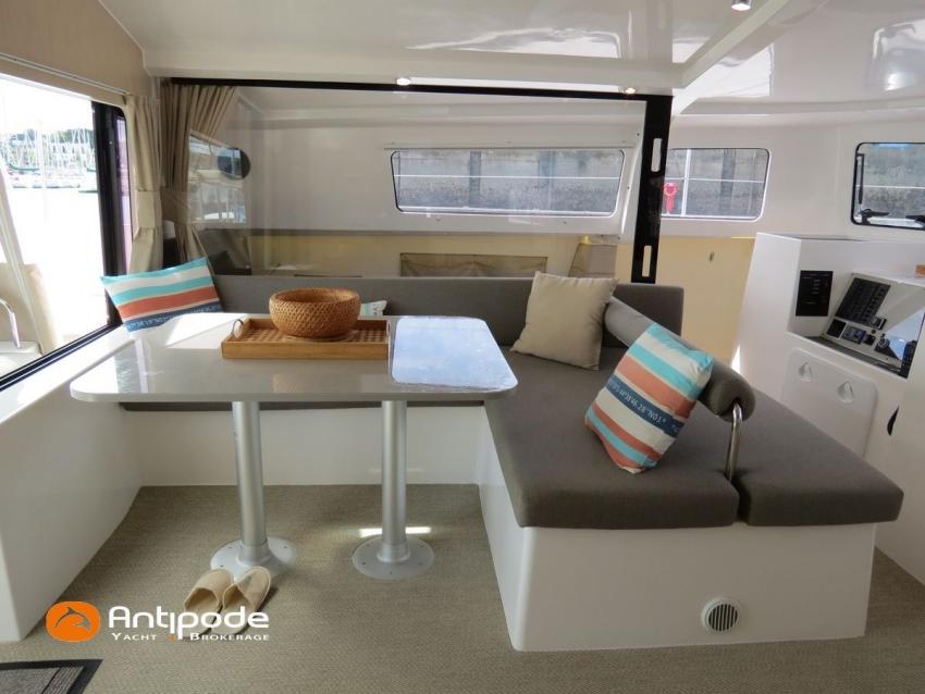 NEEL 43, 2022, 1ère main, VOLVO D2-50F, 50 cv (500.1 h), Propulseur d'étrave, Version Pack Premium, Version d'aménagement intérieur 1 cabine avant, 2 cabines latérales avec cloisons de séparations, 2 Cabines simples aménagées dans les flotteurs, Menuiseries intérieures Alpi, Tapis de sol Bolson dans carré, cabines et accès soute technique, Sous matelas dans les cabines doubles, Rideaux dans les cabines, Meuble haut de rangement au dessus de la cuisine, Table de carré cocktail, Moustiquaires de hublots et panneaux de pont, 2 winchs d'écoutes de spinnakers sur les coques - Antal XT44, 1 winch sur roof pour écoutes de génois ou trinquette - Antal XT48, Winch électrique 2 vitesses sur roof pour drisses et écoutes de GV - Antal XT40, Delphinière composite avec davier intégré, Fond de cockpit Flexyteek, Jupe arrière avec flexyteek et bers d'annexe, Table de cockpit Diner, Housse de barre à roue, Bimini poste de barre avec fermetures parebrise et latérales, Hard top de cockpit, Selleries cockpit et poste de barre - Sunbrella, Taud d'assise du poste de barre et taud de console, Compteur de chaine au poste de barre, Palan de levage d'annexe électrique - Antal line driver + télécommande, Tauds de fermeture arrière complète du cockpit, Mât aluminium classique posé sur le pont, Grand-voile à corne full batten - Incidences, Rail de guindant de grand voile + chariots de lattes, Prises de ris automatiques (x 2), Lazy-bag de grand voile, Lazy-jacks de grand voile, Enrouleur de génois avec tambour sur le pont - Facnor LS180, Génois sur enrouleur - Incidences, Trinquette sur drisse moufflée et emmagasineur - Incidences, Gréement de spi asymétrique, Spinnaker asymétrique 115 m², Chaussette à spi, Gennaker sur emmagasineur - Technique Voile, Code 0 sur emmagasineur - Intuitive Sails, Pilote automatique in board - B&G NAC3, Pupitres de commande du pilote à la table à carte et au poste de barre, Répétiteur poste de barre - B&G Triton 2, Répétiteur à la table à carte - B&G Triton 2, GPS / lecteur de carte au poste de barre - B&G 12 pouces, Radar avec radôme sur support de mât - B&G broadband 4G, Transpondeur AIS (émetteur récepteur) avec switch pour couper l'émission, VHF ASN à la table à carte - B&G V60, VHF portable - Icom, Système audio Fusion MS AV 750 + 4 HP, Balise de détresse, Unité réfrigérante 12 V porte frontale, Conservateur froid négatif (freezer), Chauffe-eau 60 litres - 220 V + échangeur, Gazinière 2 feux + four avec grill, Plancha gaz dans le cockpit, 2 x batteries propulseur et chargeur dédié, Batteries service parc Lithium - 2 x 200Ah, Combiné chargeur convertisseur 12 V / 220 V - 2000W avec commande déportée à la table à carte - Victron Energy, Prises intérieures 220 V / 12 V / USB, Contrôleur / gestionnaire de batteries, Chauffage WEBASTO, Réservoir rigide eaux noires, WC électrique, Panneaux solaires - Solbian 2 x 155W , Douchette de cockpit eau chaude / eau froide, Feux de navigations à Leds, Eclairages intérieurs à Leds, liseuses avec prises USB, éclairage Led dans le cockpit, Radeau de survie + Equipement de sécurité 8 personnes , Mouillage principal ancre Kobra, Amarres et défenses, Annexe + Moteur hors-bord Suzuki 4tps 2.5cv, Visible Bretagne. Pour plus d'informations ou pour fixer un rendez-vous de visite, contact : Jean-Baptiste Lemaire 06 10 25 00 03 - jb@antipode-yachts.com