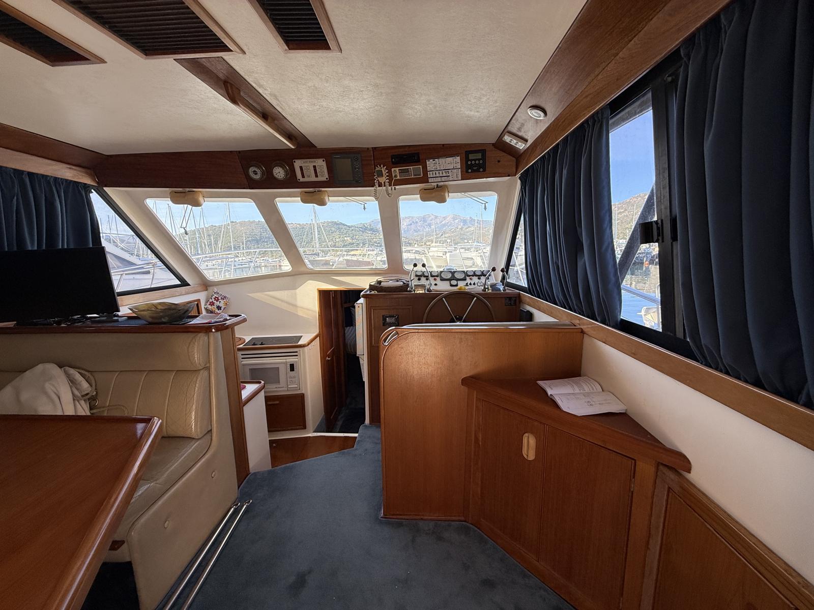 Équipements de navigation : GPS, sondeur, radar, pilote automatique, VHF.