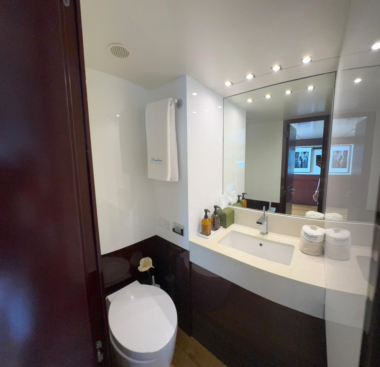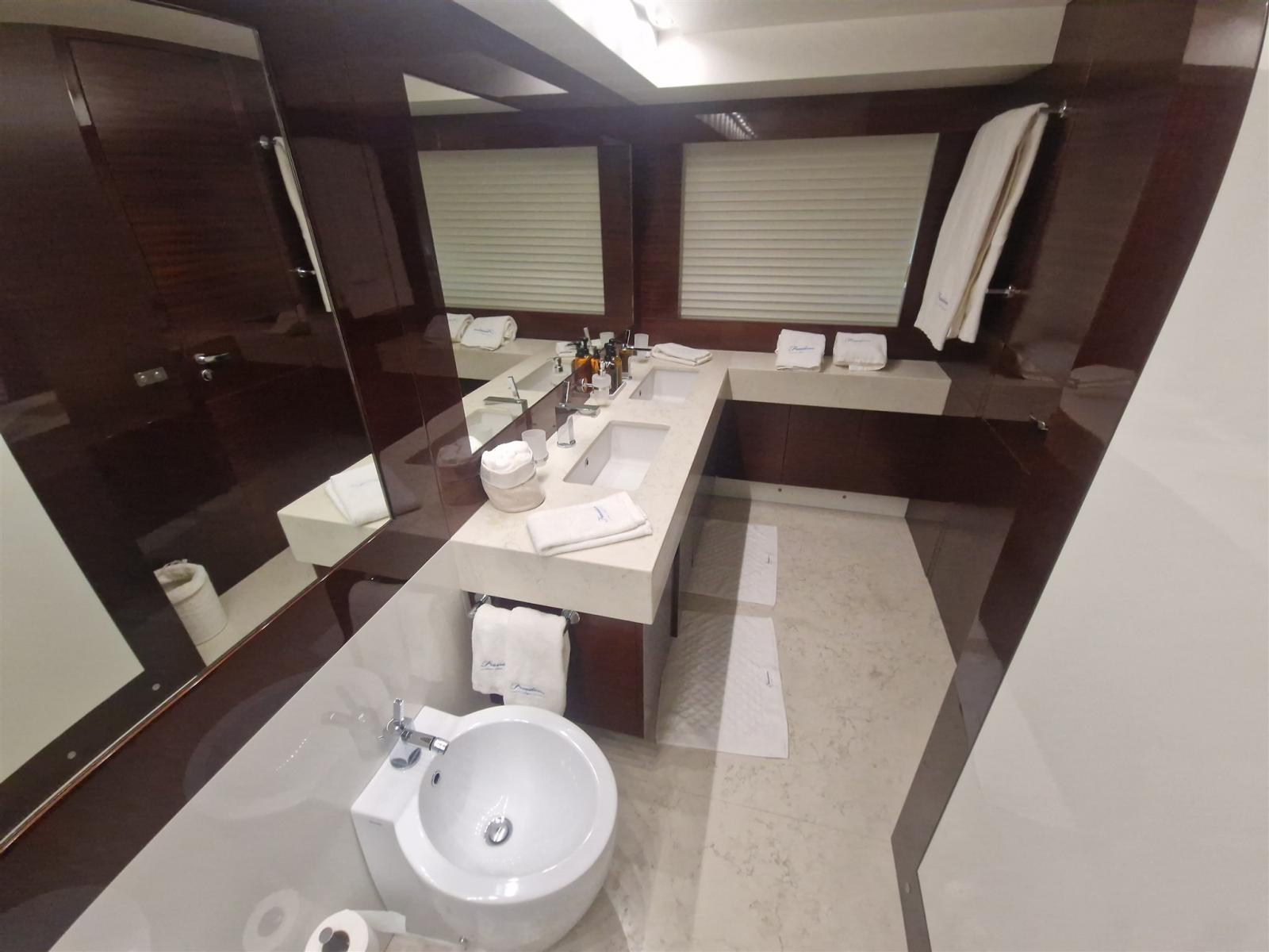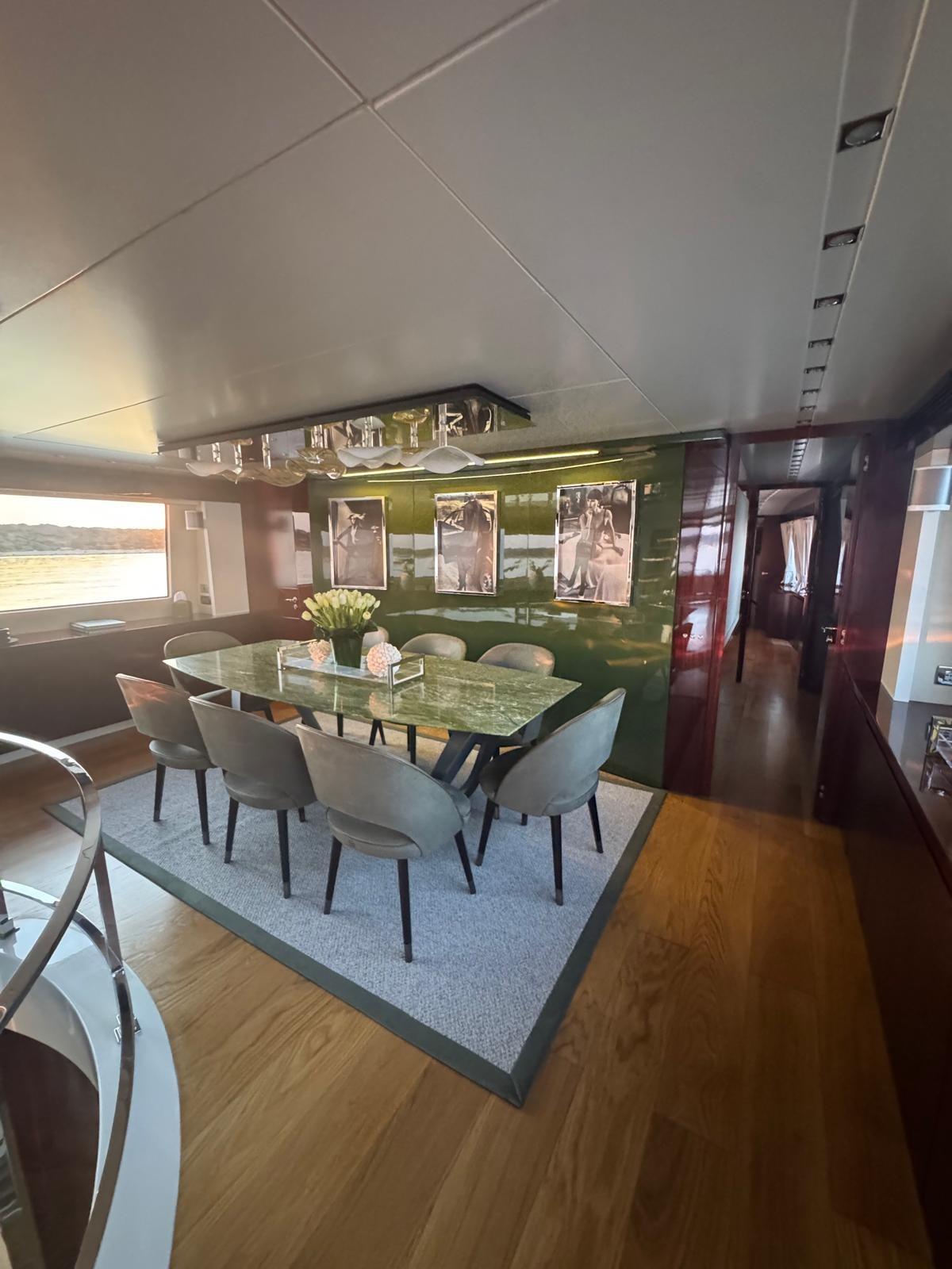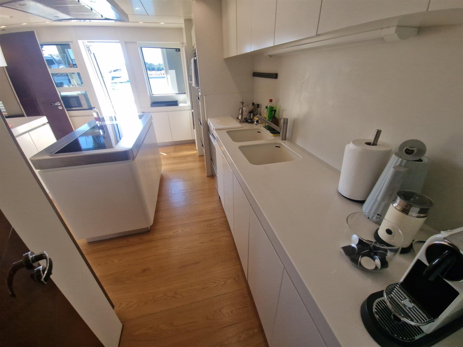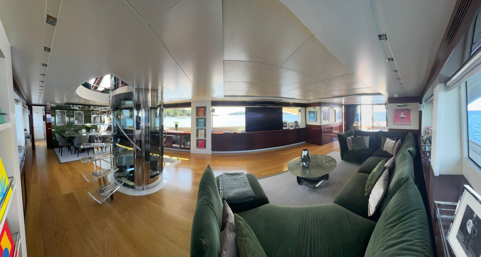 Refit en 2019. : -Installation de 2 x nouveaux générateurs Kohler -Installation de 4 x stabilisateurs Humphree -Installation de 2 x Watermakers Idromar -Cabines invités augmentées de 5 places supplémentaires (1 cabine - 3 x lits simples et 1 cabine - 2 x places en lit double, avec nouveaux WC dans chaque cabine) -Nouveau parquet dans chaque chambre -Installation de TV extérieure + nouveau système surround (8 x haut-parleurs + 4 x Subwoofers) -Installation de comptoir de bar extérieur sur le flybridge avec 2 x barbecues électriques Baratta, plaque électrique, réfrigérateur, machine à glaçons et évier -Nouvel aménagement du salon avec nouveau canapé 7 places, TV 70" et système surround Sonos (6 x haut-parleurs, barre de son et caisson de basses)