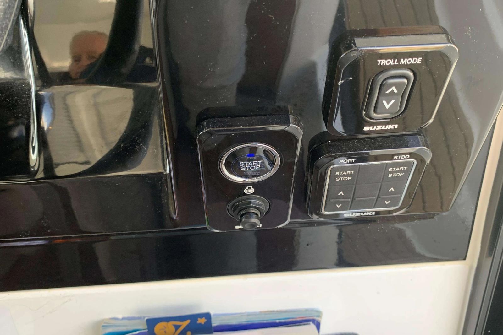 Walk?around polyvalent pêche/promenade avec 2 cabines, timonerie lumineuse à portes latérales, grands passavants et cockpit modulable. Motorisée en double Suzuki 175 ch blancs, packs Confort + Électronique Garmin, nombreux équipements. Bateau prêt à partir.