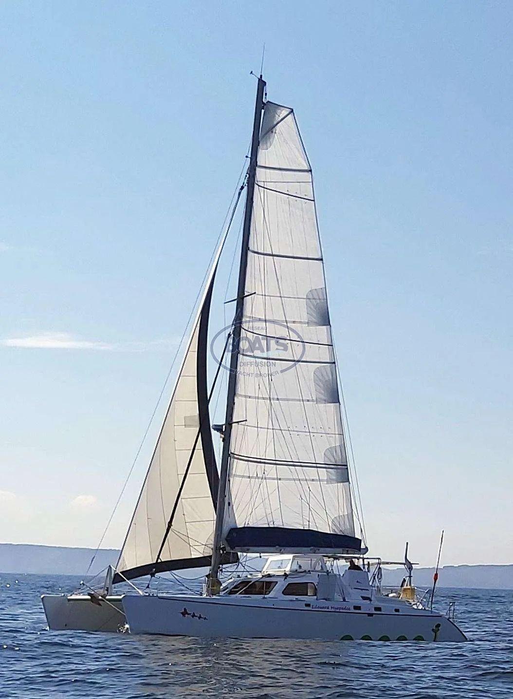 Ce catamaran de 48', dessiné par les célèbres architectes Marc Van Peteghem et Vincent Lauriot-Prévost, est prêt pour des navigations océaniques. Construit en bois époxy, il allie performance à la voile et confort. Modernisé depuis 2018, il dispose de moteurs Nanni Diesel, d’un jeu de voiles complet, de panneaux solaires 300W, DUOGEN et dessalinisateur Aquabase. Intérieur spacieux avec 2 cabines doubles, cuisine équipée, électronique moderne. Idéal pour la croisière au long cours, avec équipements de sécurité complets.