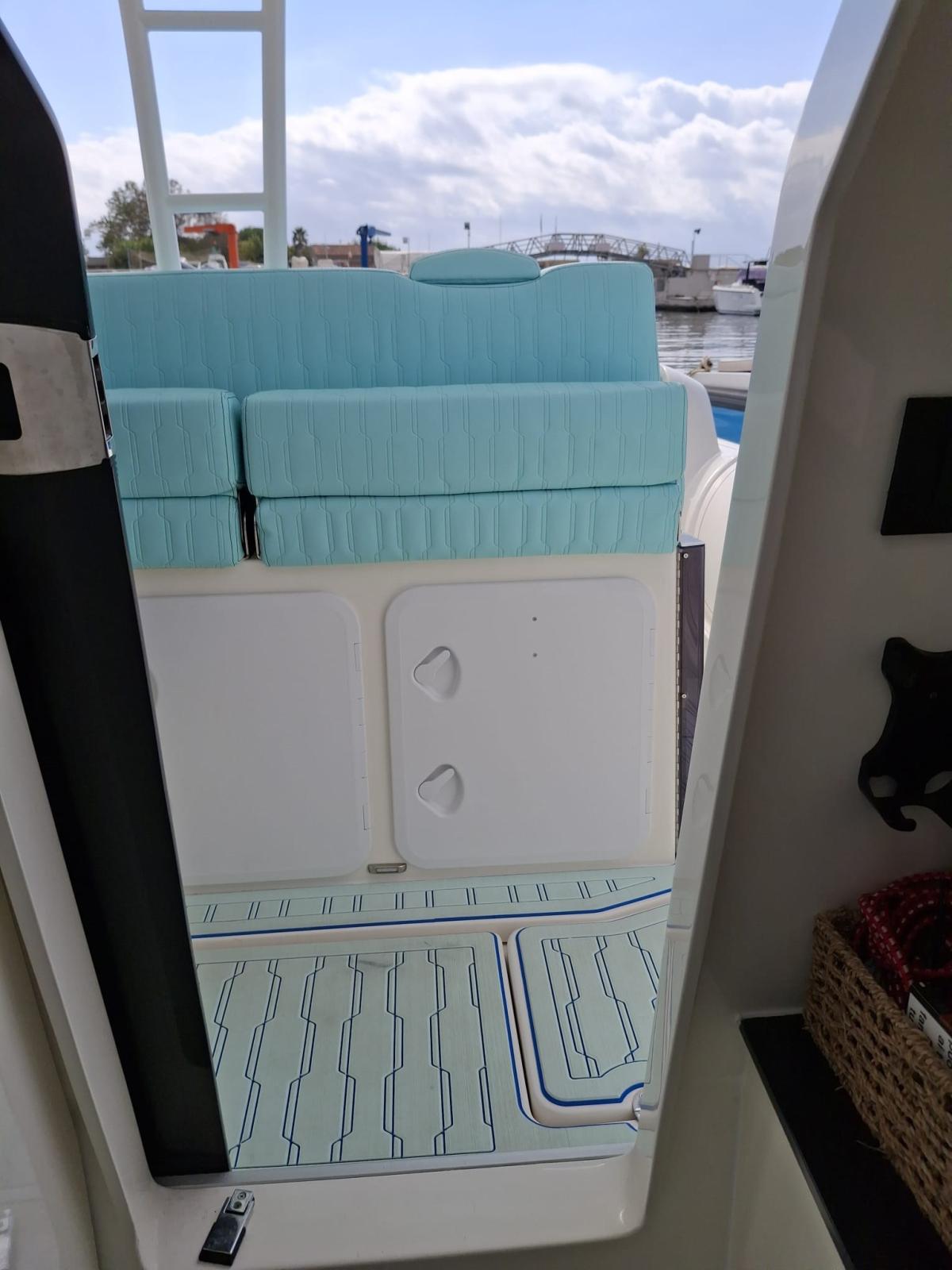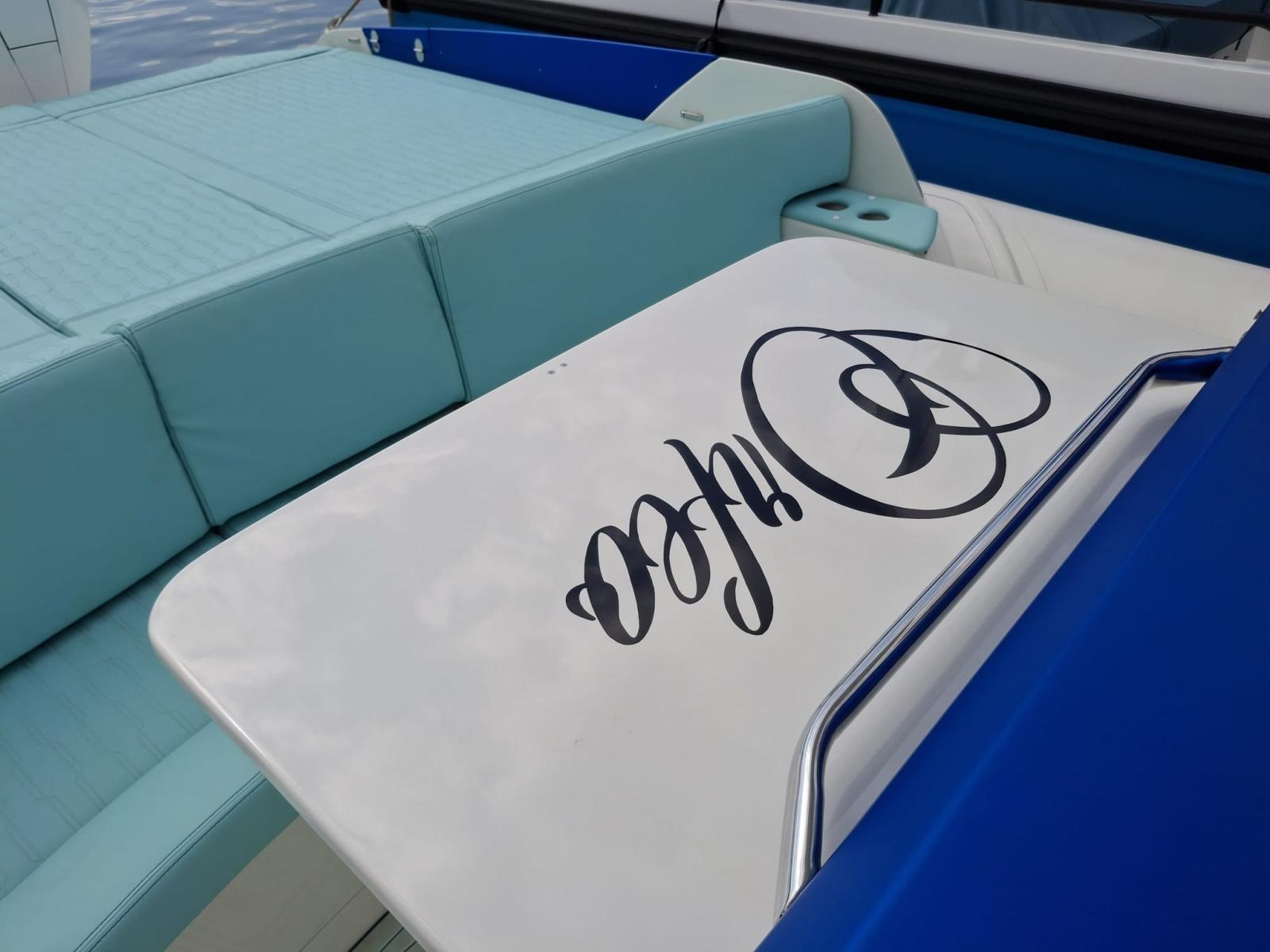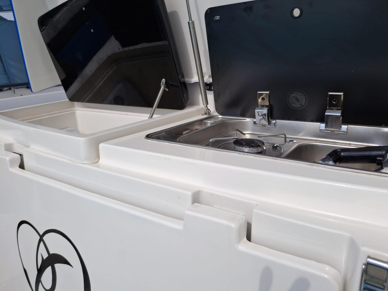 Alarme moteur, Eau sous pression, Douche de cockpit, 2 Pompe de cale électrique, Guindeau électrique, Echelle de bain, T-Top (Carbonio).