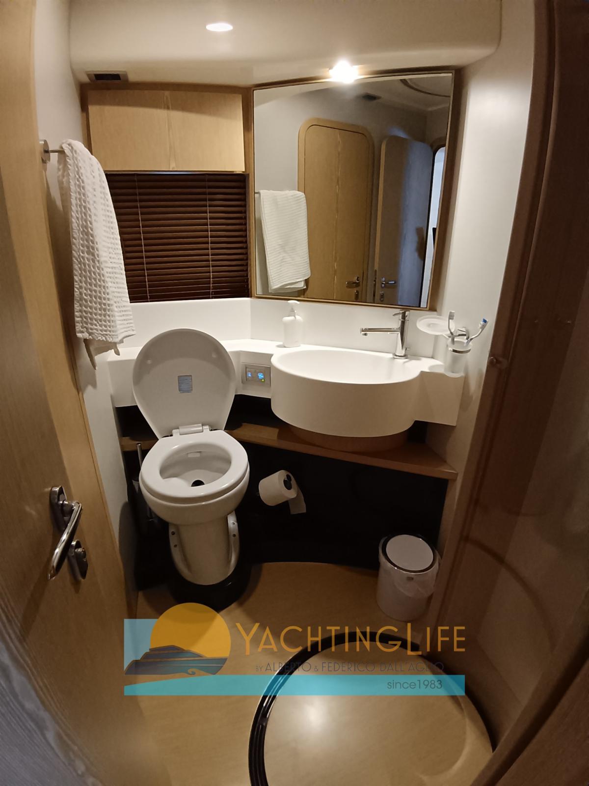 Alarme moteur, Alarme de pompe de cale, Alternateur, Eau sous pression, Douche de cockpit, Double barre à roue, Flaps hydrauliques, Extincteur(s) fixe(s), Indicateurs de flaps, Lavage de chaine, Éclairage de courtoisie, Spots sous-marins, Passerelle (idraulica), Plateforme arrière, Pompe de cale automatique, Porte latérale, Cockpit en teck, Prise de quai, Guindeau électrique, Echelle de bain, Selles pour Annexe, table de cockpit (in vetro e acciaio), Corne, 2 Winch électrique arrière.