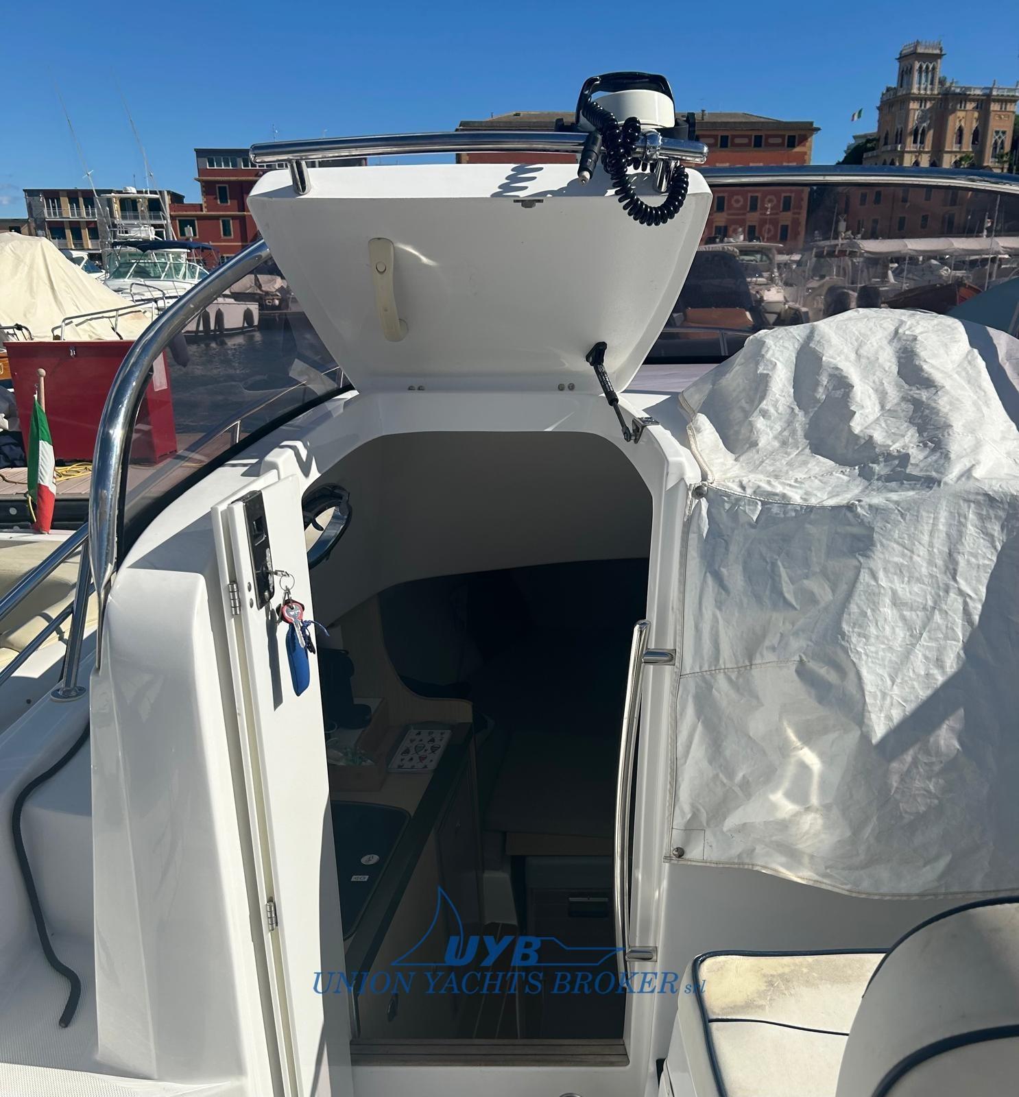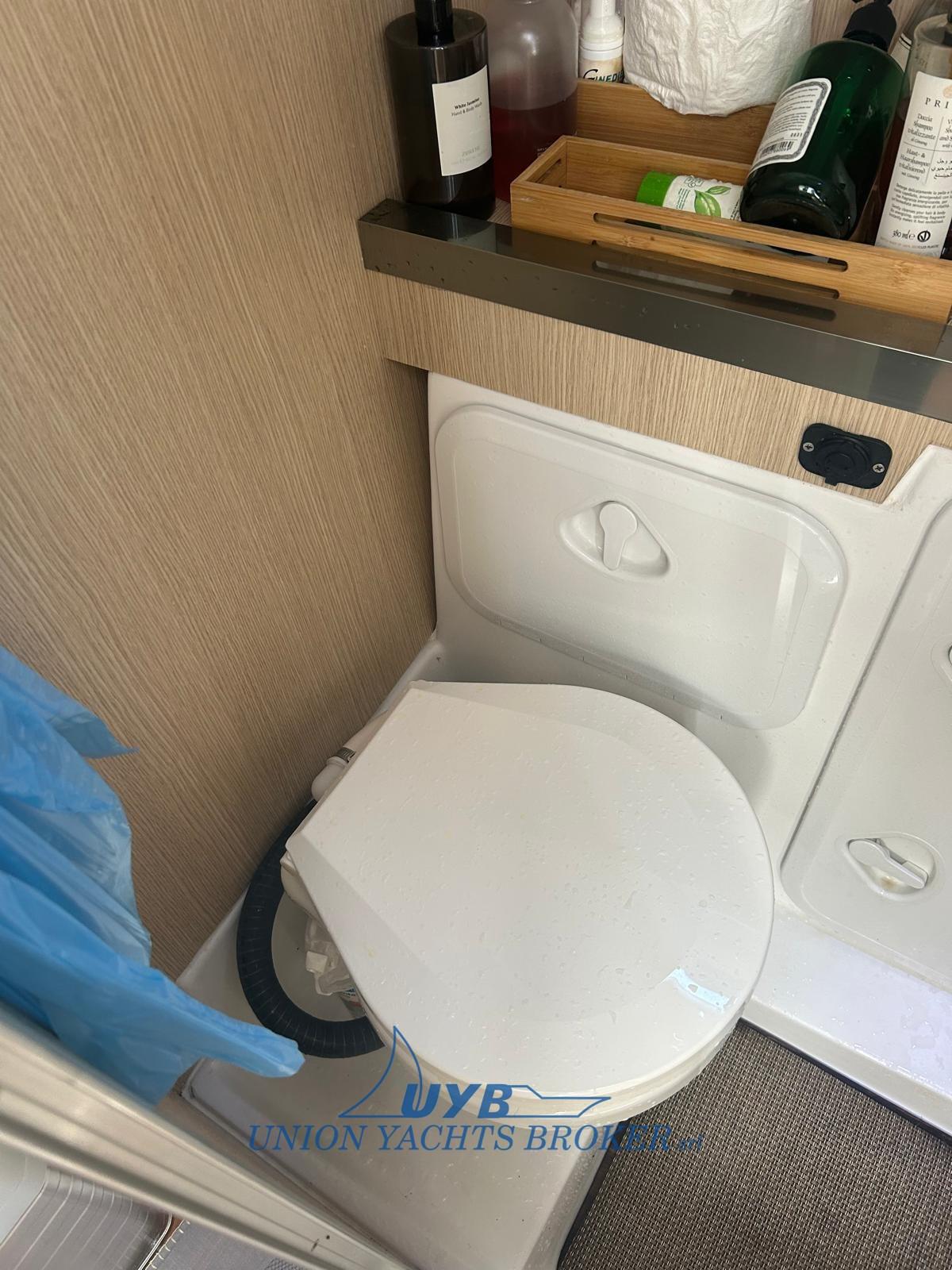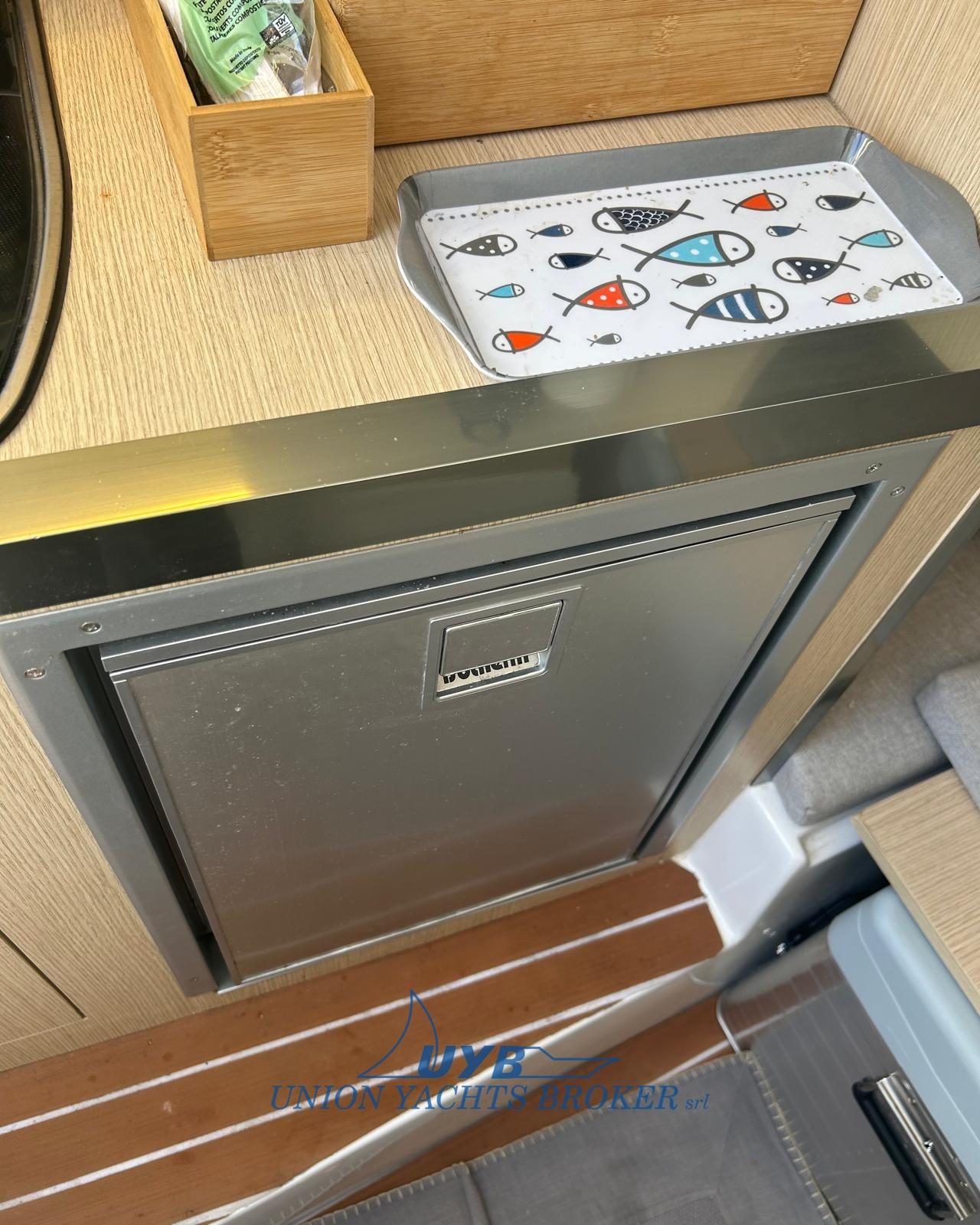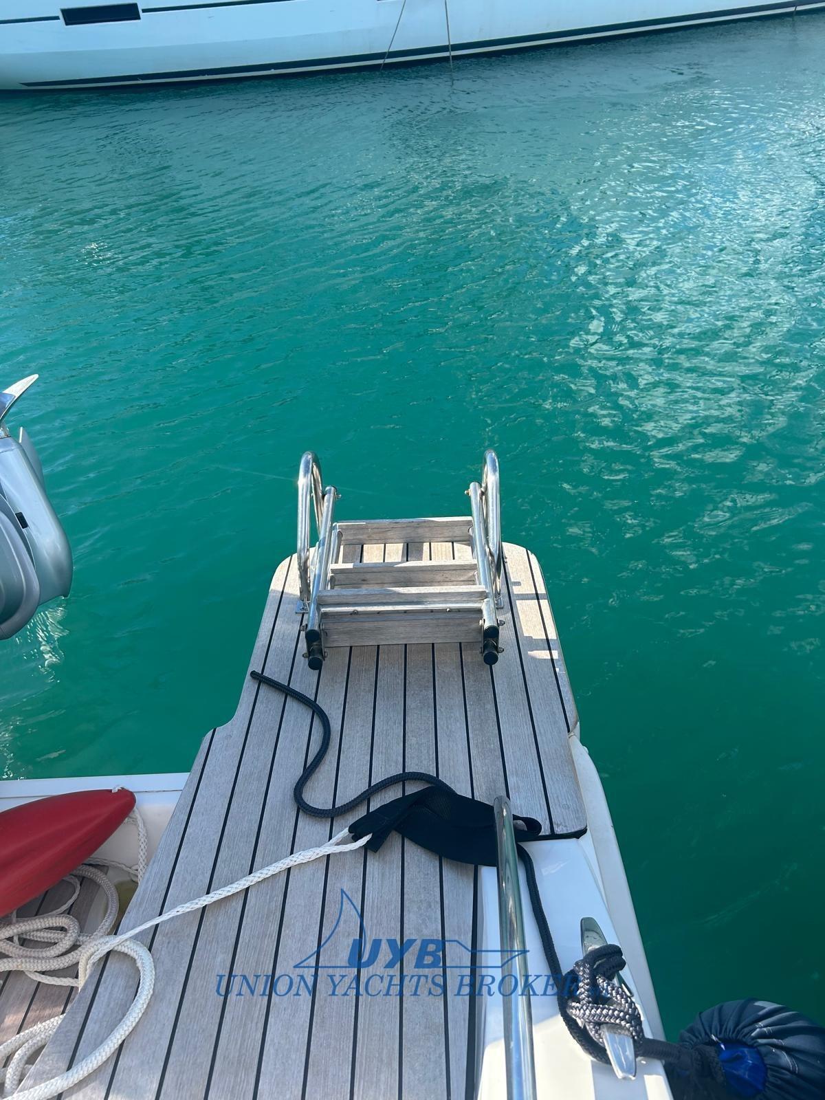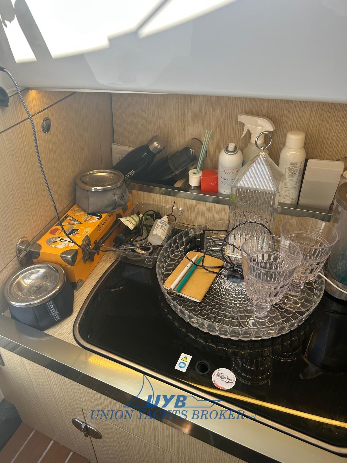 Alarme moteur, Alarme de pompe de cale, Eau sous pression, Câble d’alimentation à quai, Couleur spéciale, Filères, Pompe de cale manuelle, Porte latérale, Guindeau électrique (con telecomando), Echelle de bain, table de cockpit, Corne.