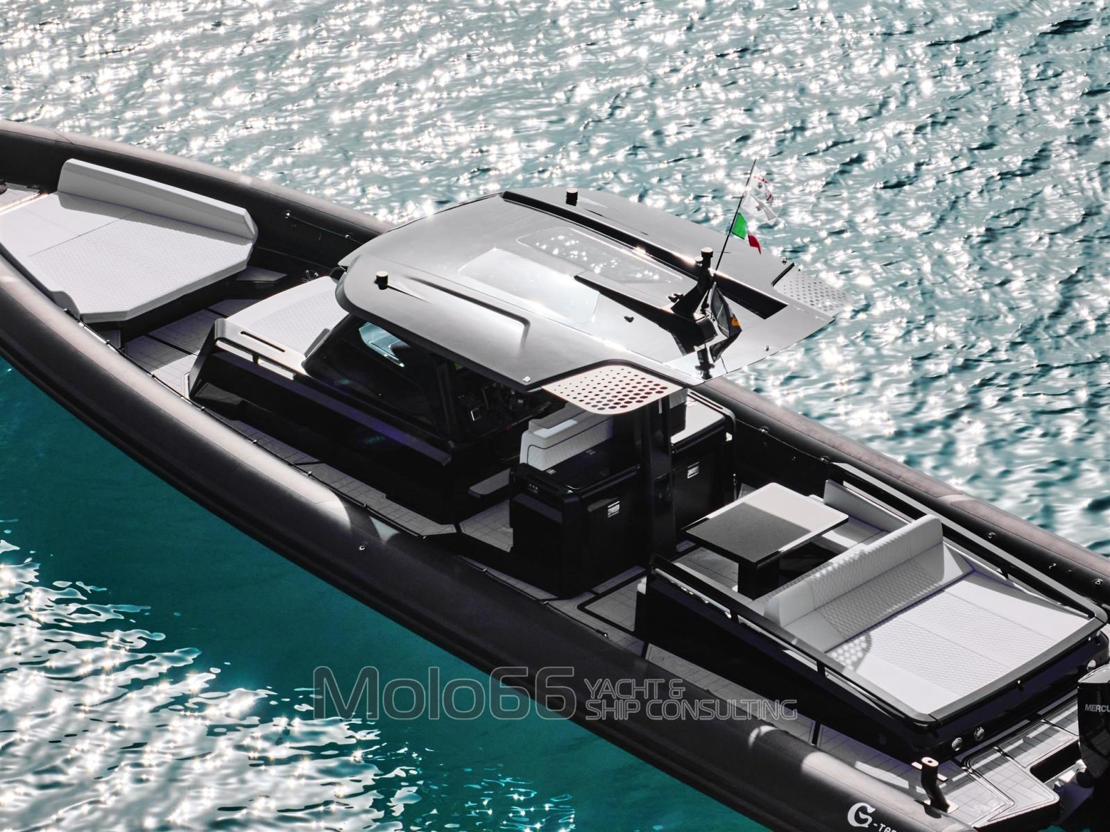 Alarme moteur, Alarme de pompe de cale, Eau sous pression, Douche de cockpit, Éclairage de courtoisie, Cockpit en teck, Prise de quai, Guindeau électrique, Echelle de bain, table de cockpit, Corne.
