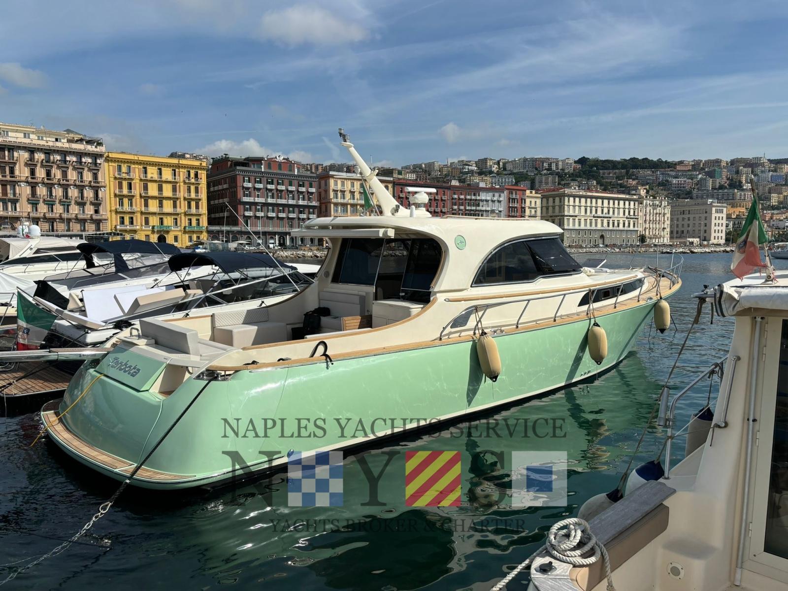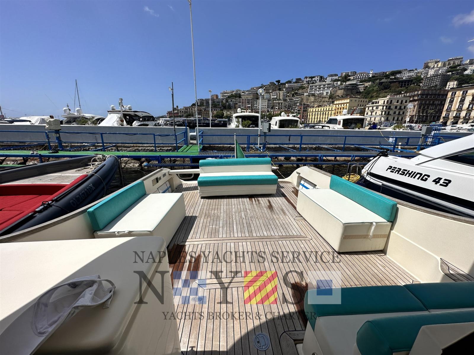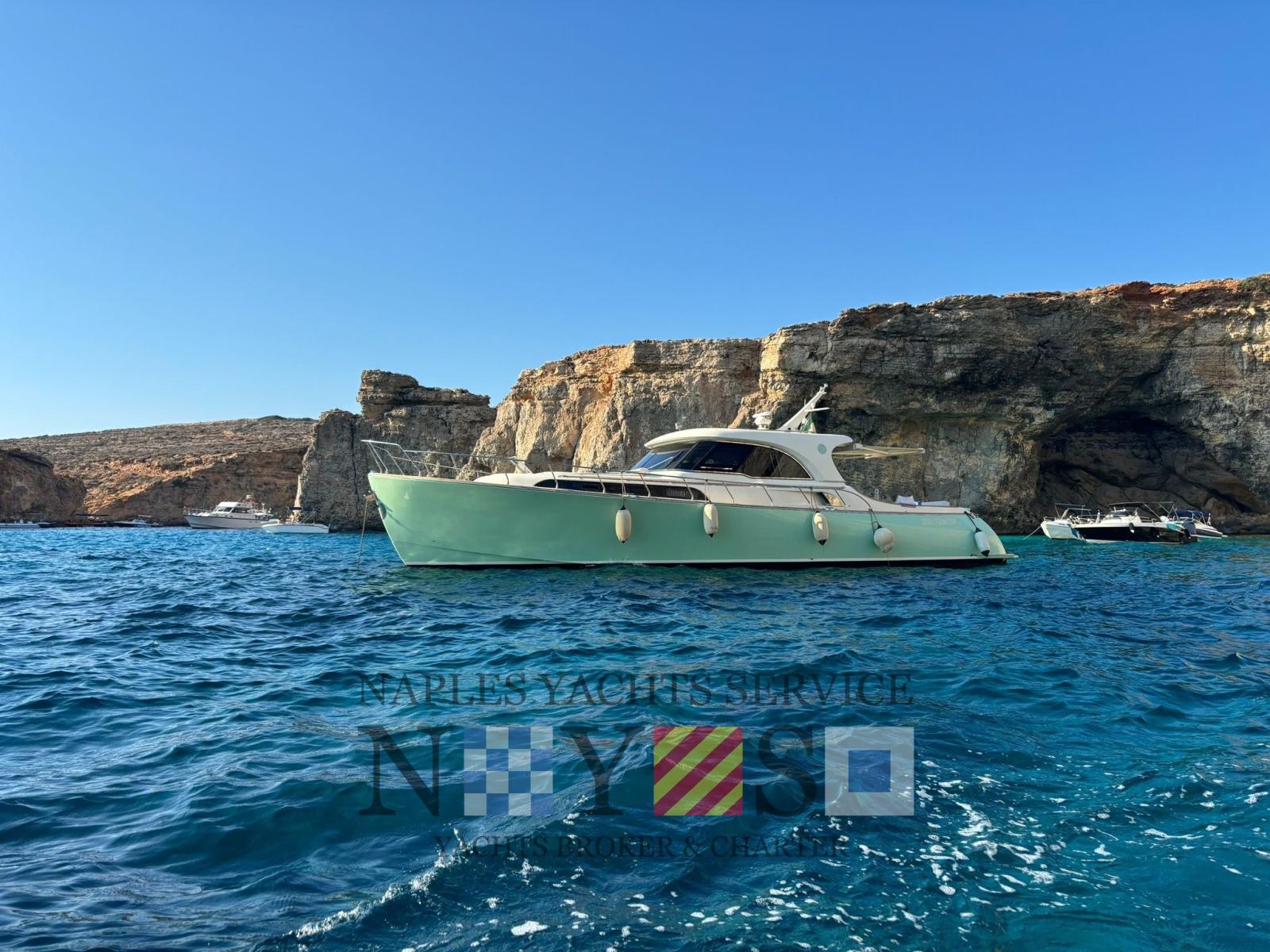 Alarme moteur, Alarme de pompe de cale, Eau sous pression, Douche de cockpit, Double barre à roue, Flaps hydrauliques (N°2), Passerelle (Besenzoni (a scomparsa)), Plateforme arrière, Pompe de cale automatique, Onduleur, Guindeau électrique, Echelle de bain, table de cockpit.