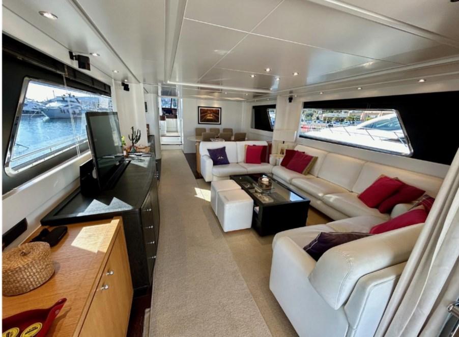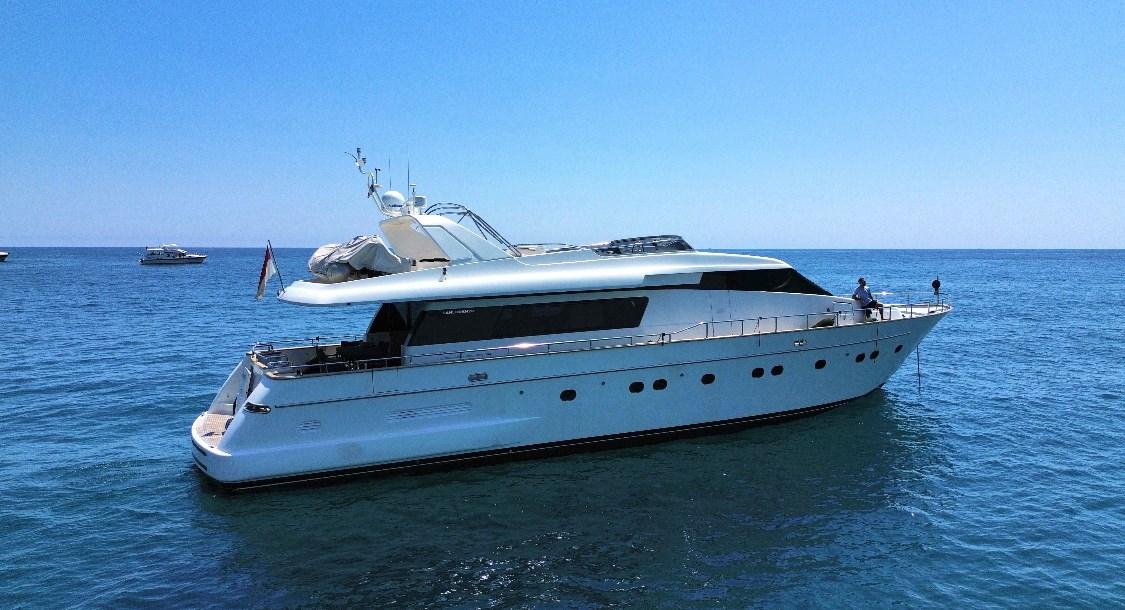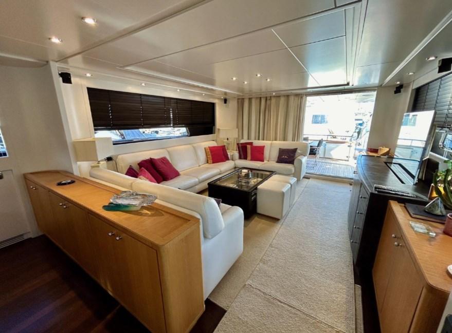 Alarme moteur, Alarme de pompe de cale, Eau sous pression, Passavant en teck, Flaps hydrauliques, Grue de flybridge, Extincteur(s) fixe(s), Compresseur de plongée, Éclairage de courtoisie, Spots sous-marins, Passerelle, Pont en teck, Porte latérale, Cockpit en teck, Guindeau Hydraulique, Annexe, Winch hydraulique.