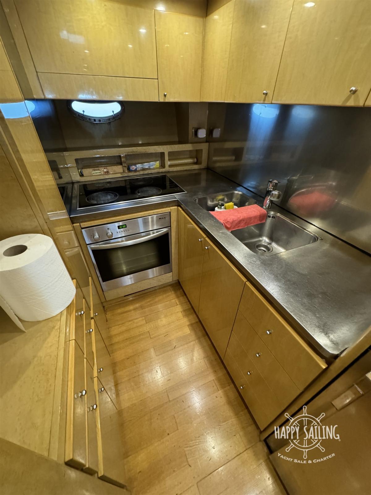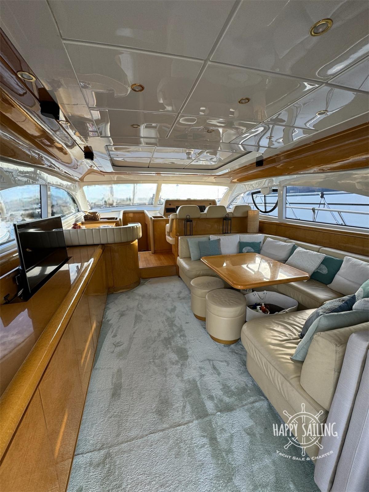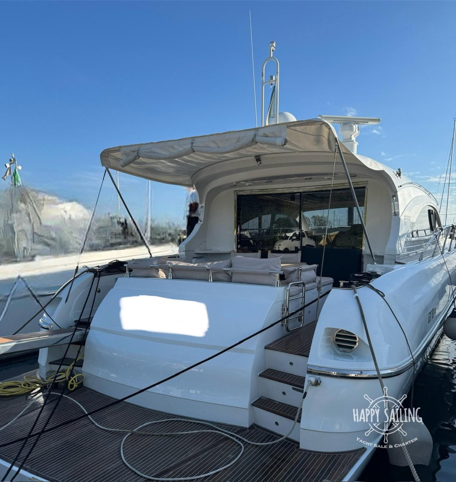 Alarme moteur, Eau sous pression (elettrico), Douche de cockpit, Phare de poursuite, Flaps hydrauliques, Garage à annexe, Hard top, Extincteur(s) fixe(s), Compresseur de plongée, Éclairage de courtoisie, Spots sous-marins, Passerelle (IDRAULICA), Plateforme arrière, Pompe de cale automatique, Cockpit en teck, Prise de quai, Onduleur, Guindeau électrique, Echelle de bain.
