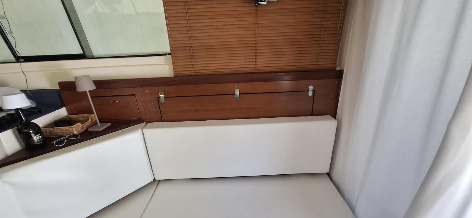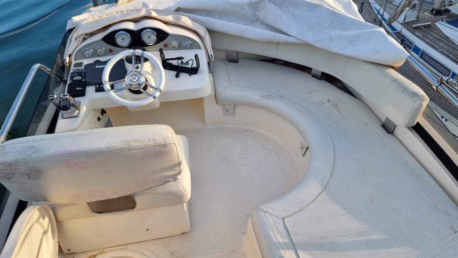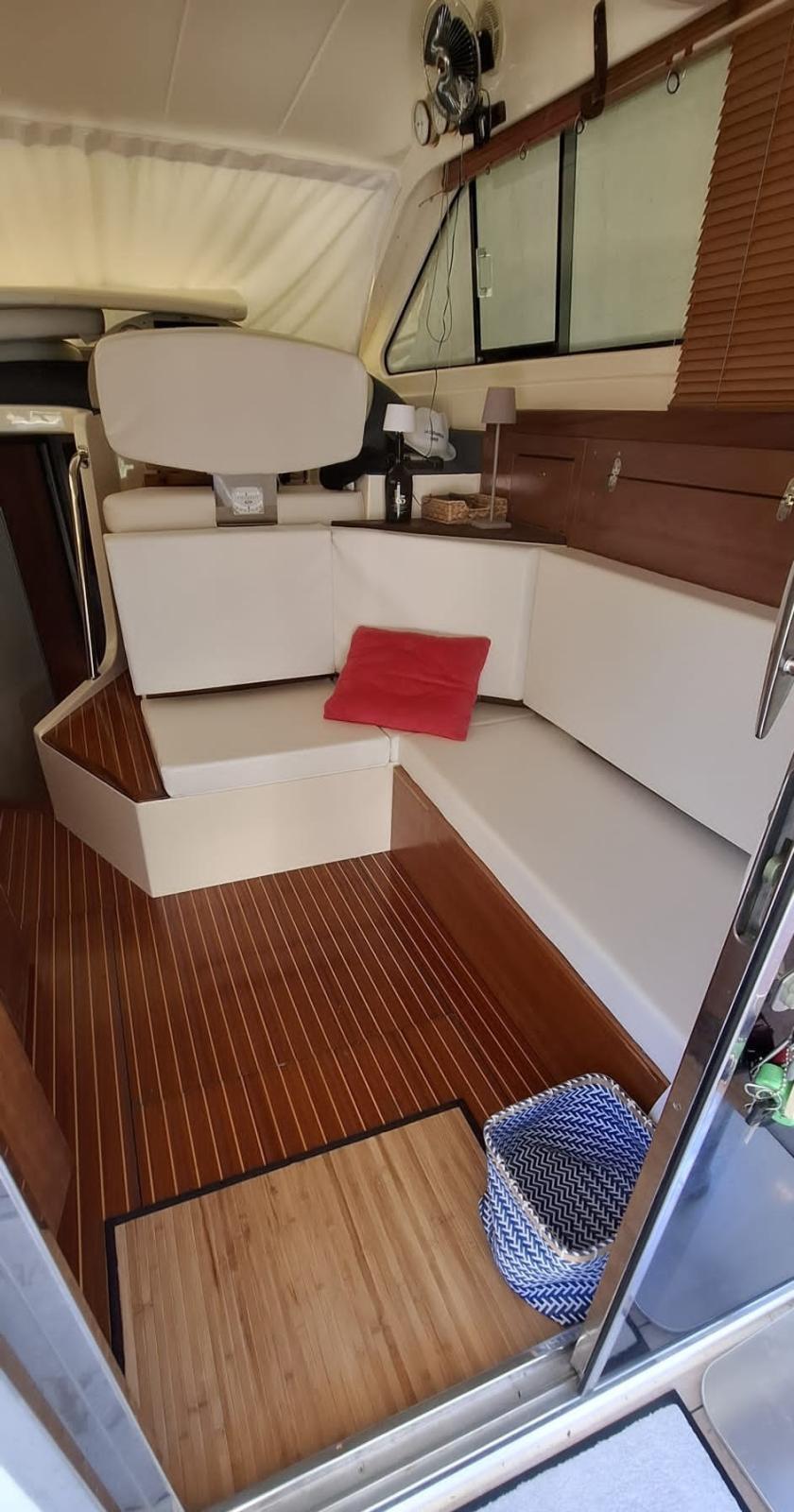 Bimini (inox 2022), Taud de cockpit, Coussins arrieres, Coussin avant (2023), Sellerie de fly, sellerie de cockpit, Rideaux occultants, Tauds de pare-brise (2023), Taud de fly, Moustiquaires.