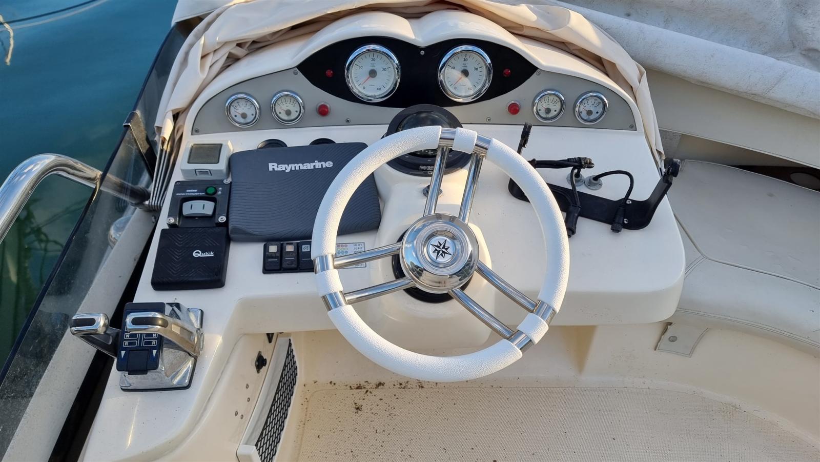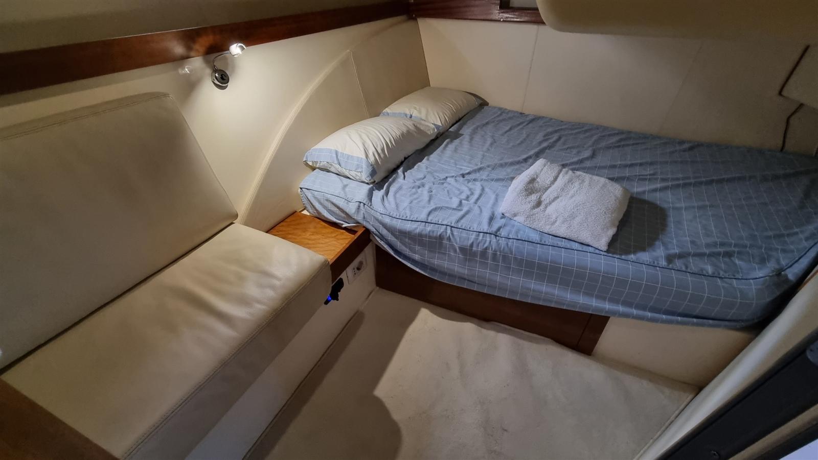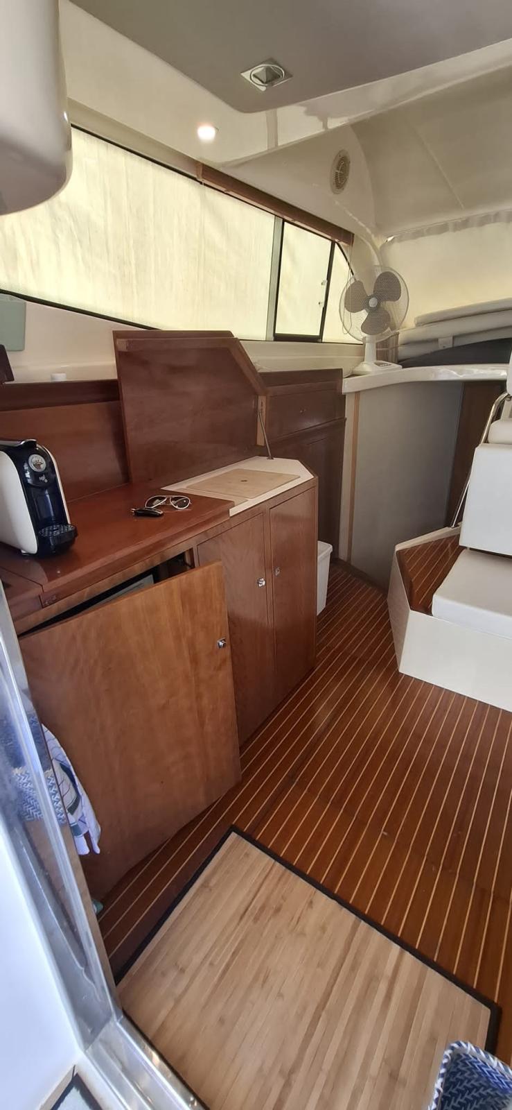Bimini (inox 2022), Taud de cockpit, Coussins arrieres, Coussin avant (2023), Sellerie de fly, sellerie de cockpit, Rideaux occultants, Tauds de pare-brise (2023), Taud de fly, Moustiquaires.