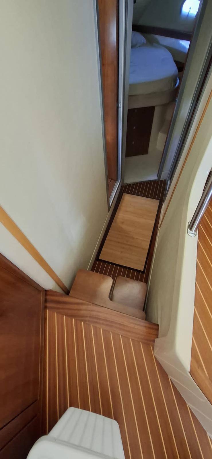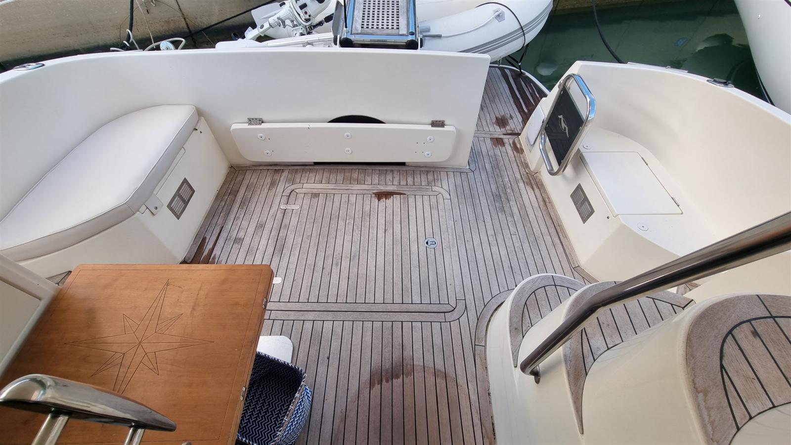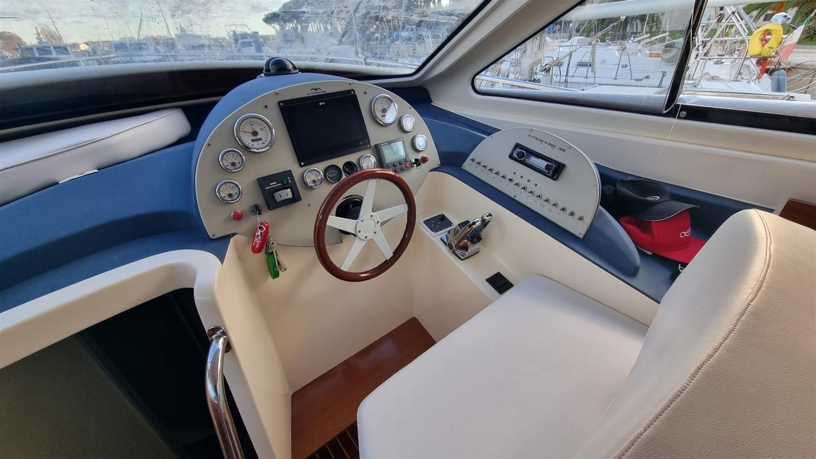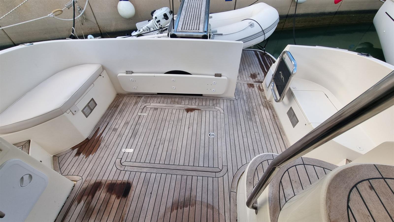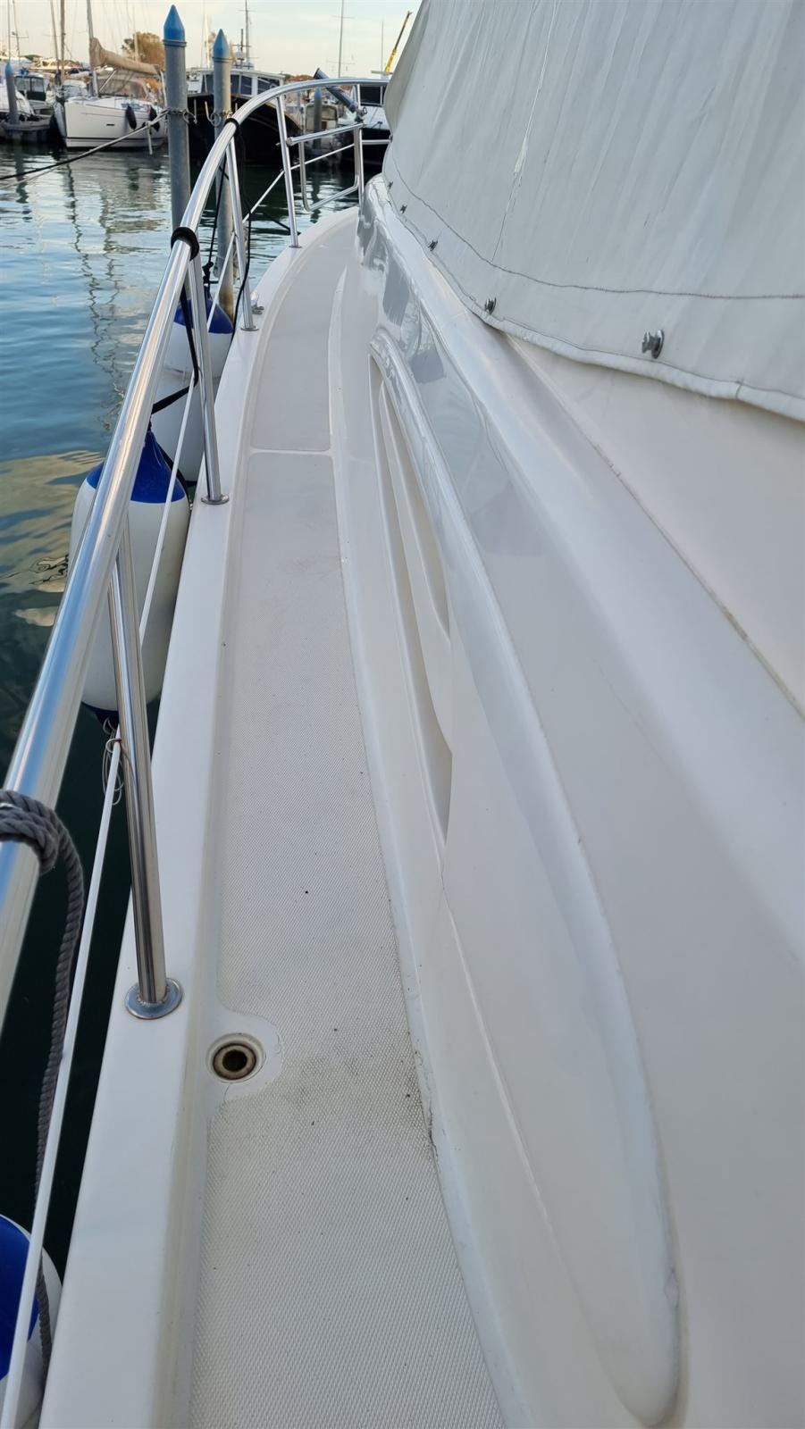 Alarme moteur, Alarme de pompe de cale, Eau sous pression, 3 Batteries (2021), Douche de cockpit, Phare de poursuite, Flaps hydrauliques, Extincteur(s) fixe(s), Éclairage de courtoisie, Spots sous-marins, Passerelle (Idraulica telescopica Besenzoni), Plateforme arrière, Pompe de cale automatique, Pompe de cale manuelle, Porte latérale, Cockpit en teck, Prise de quai, Connexion eau sous pression à quai, Onduleur, Guindeau électrique, Echelle de bain, Selles pour Annexe, Filières avec sortie latèrale, Corne.